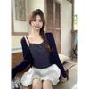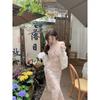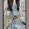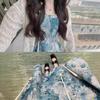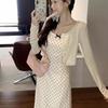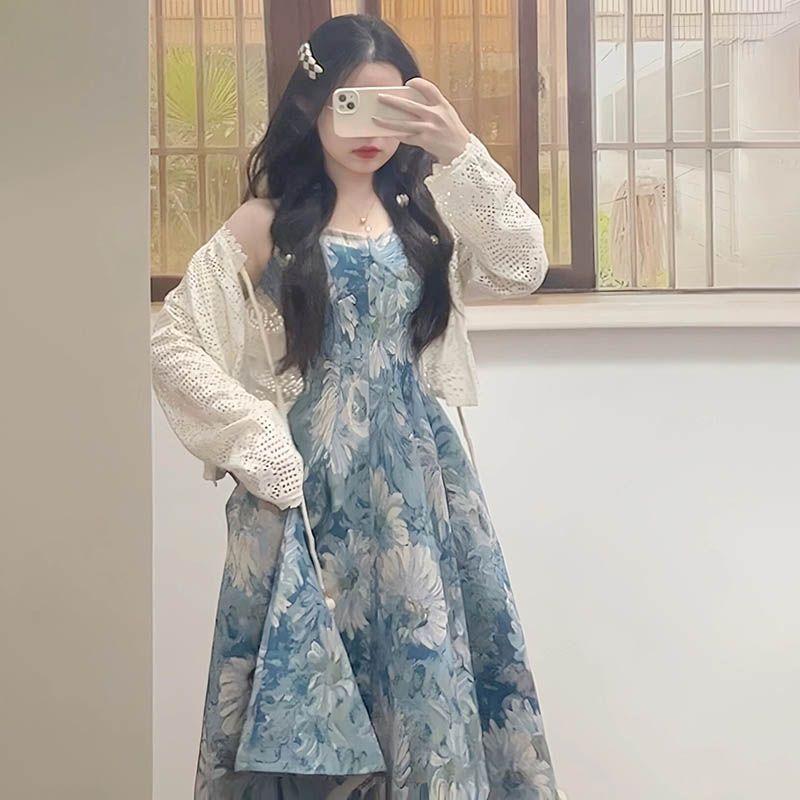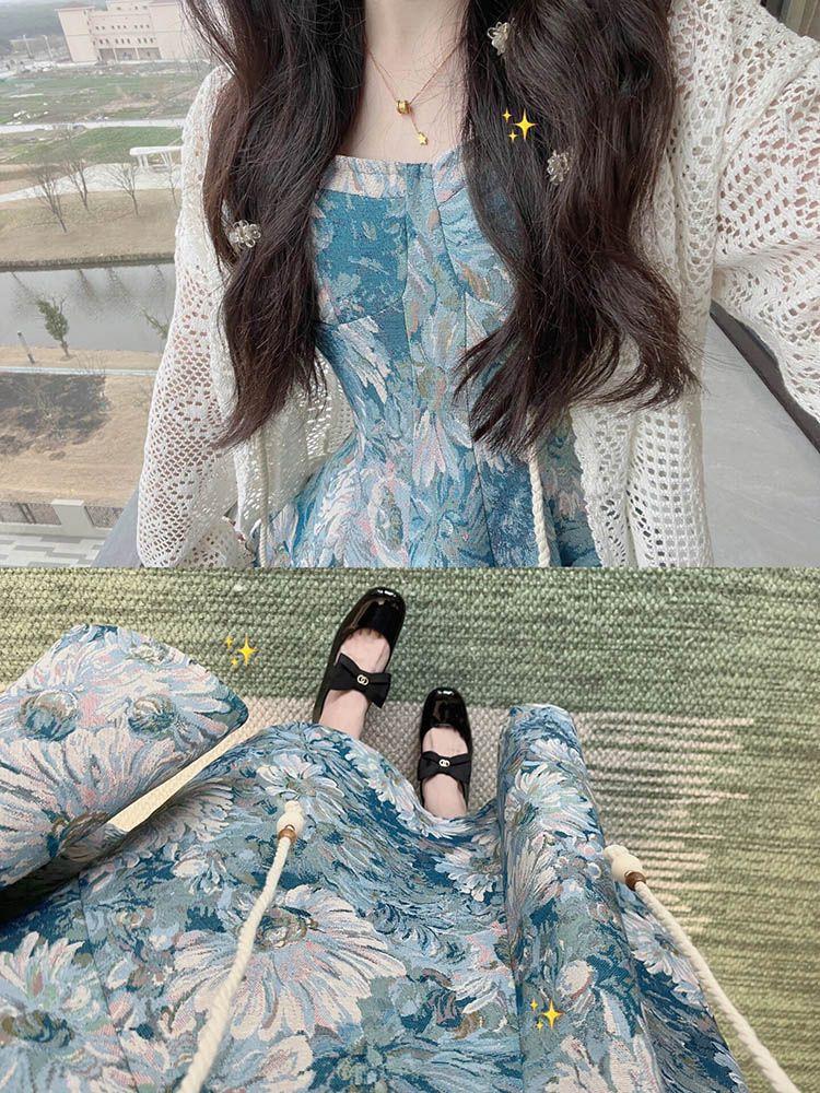Temperamento francés industria pesada pintura al óleo vestido floral de tirantes para mujer verano delgado tejido camisa protectora solar dos_traje