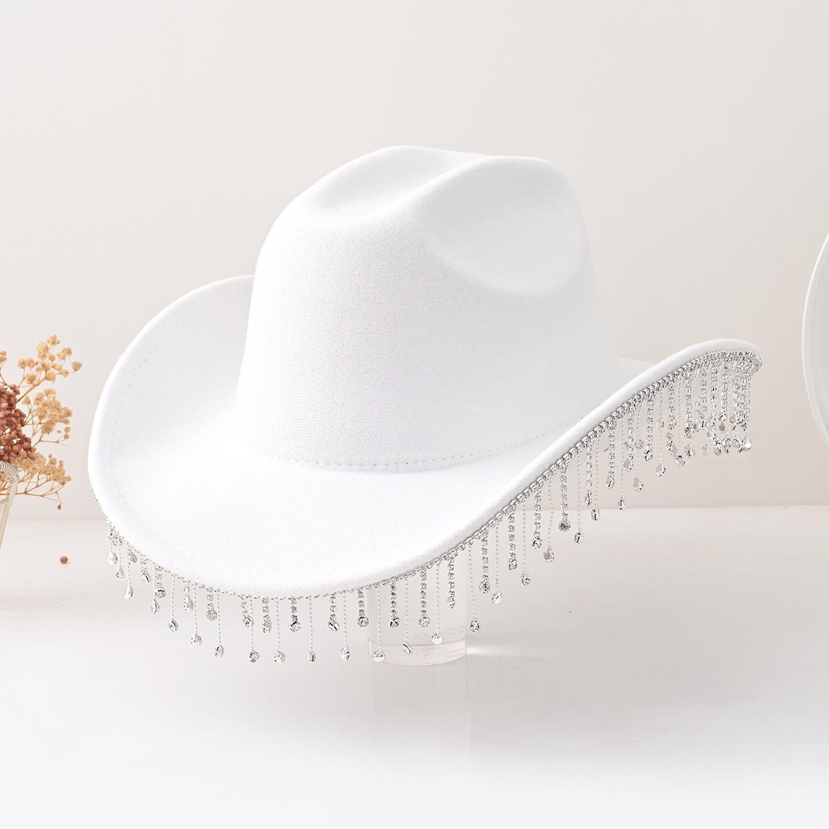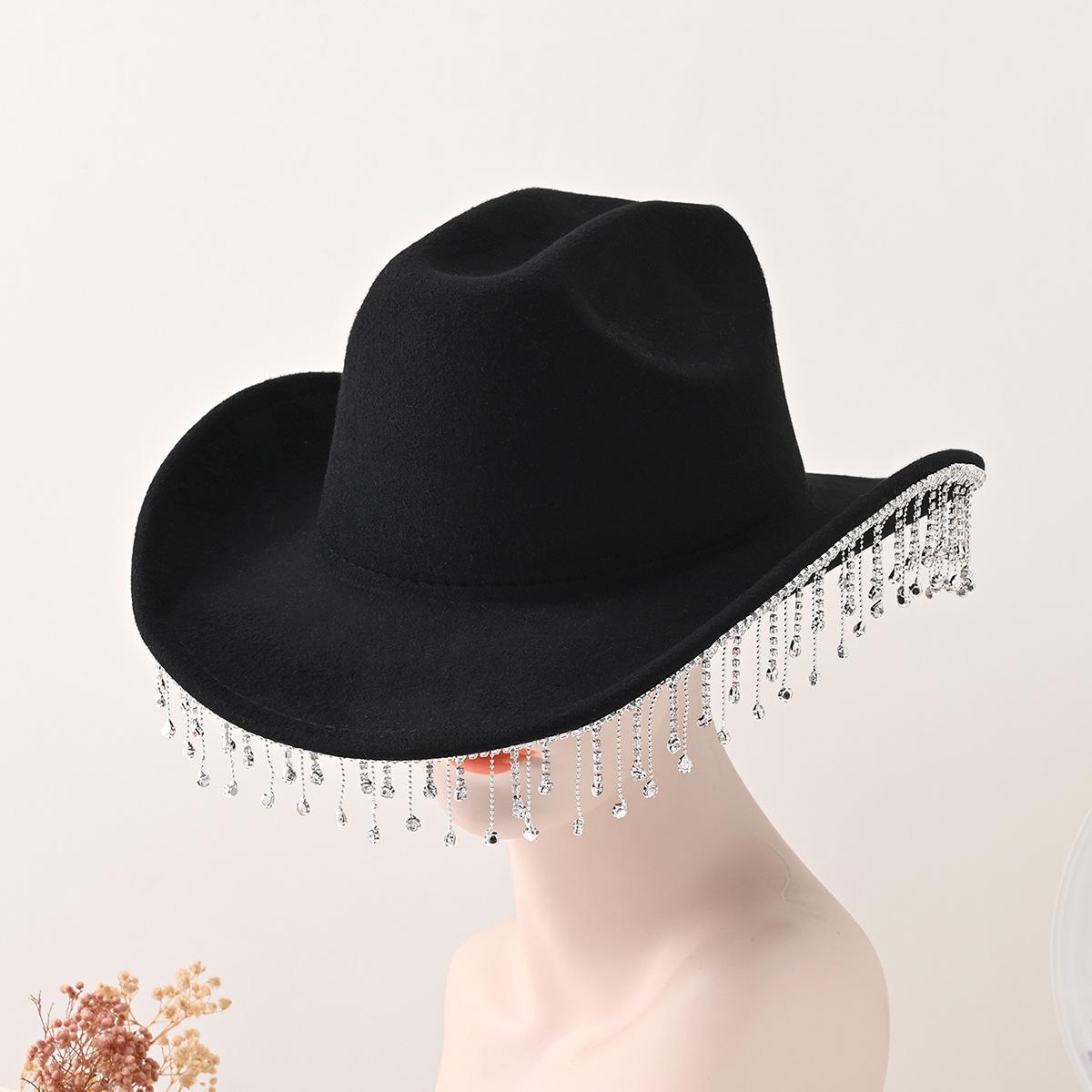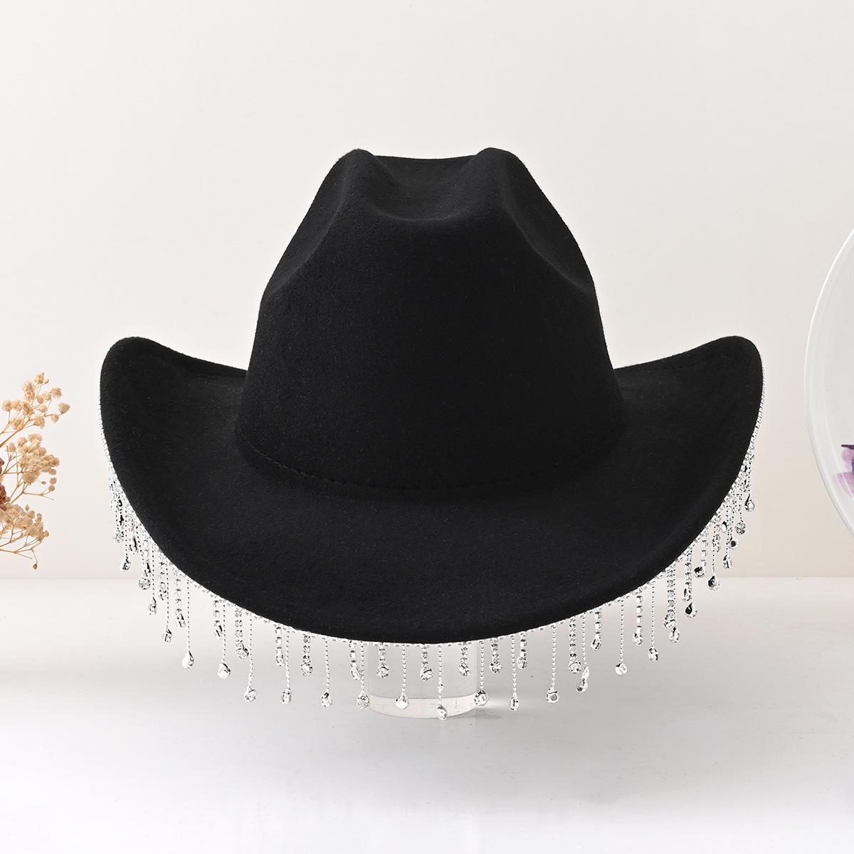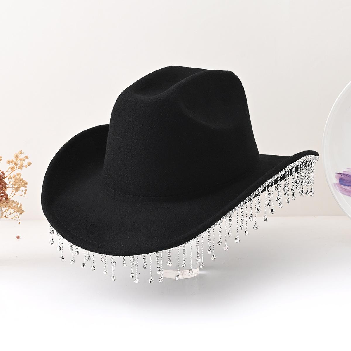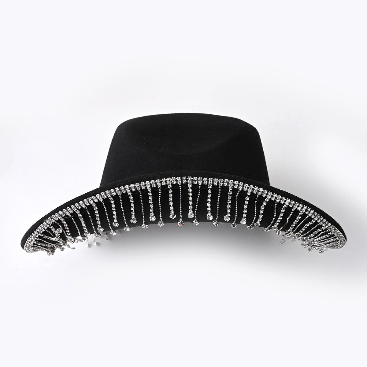 Explosiones Transfronterizas Sombrero de Copa Sombrero de Vaquero Elegante Ala Grande Borla de Lujo Ligero Brillante para Fiesta Concierto de Piano