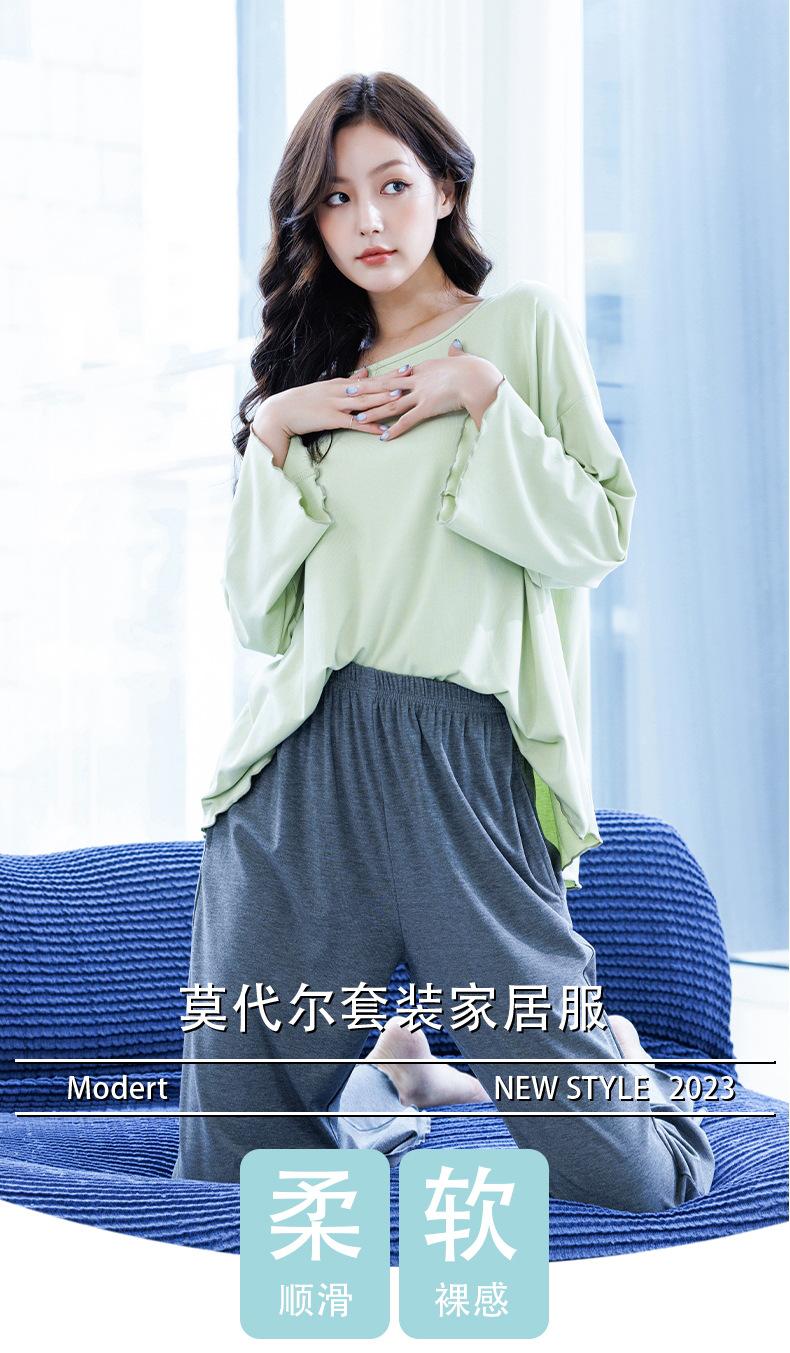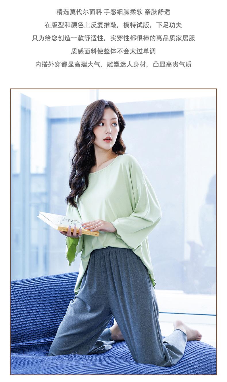 Pijama antibacteriano de primavera y otoño 5A, pantalón de manga larga modal para mujer, ropa de hogar, ropa de confinamiento de otoño e invierno que se puede usar al aire libre.