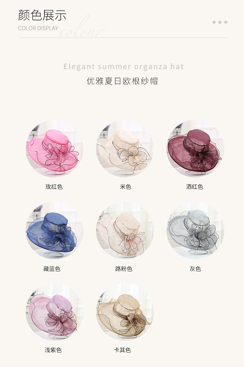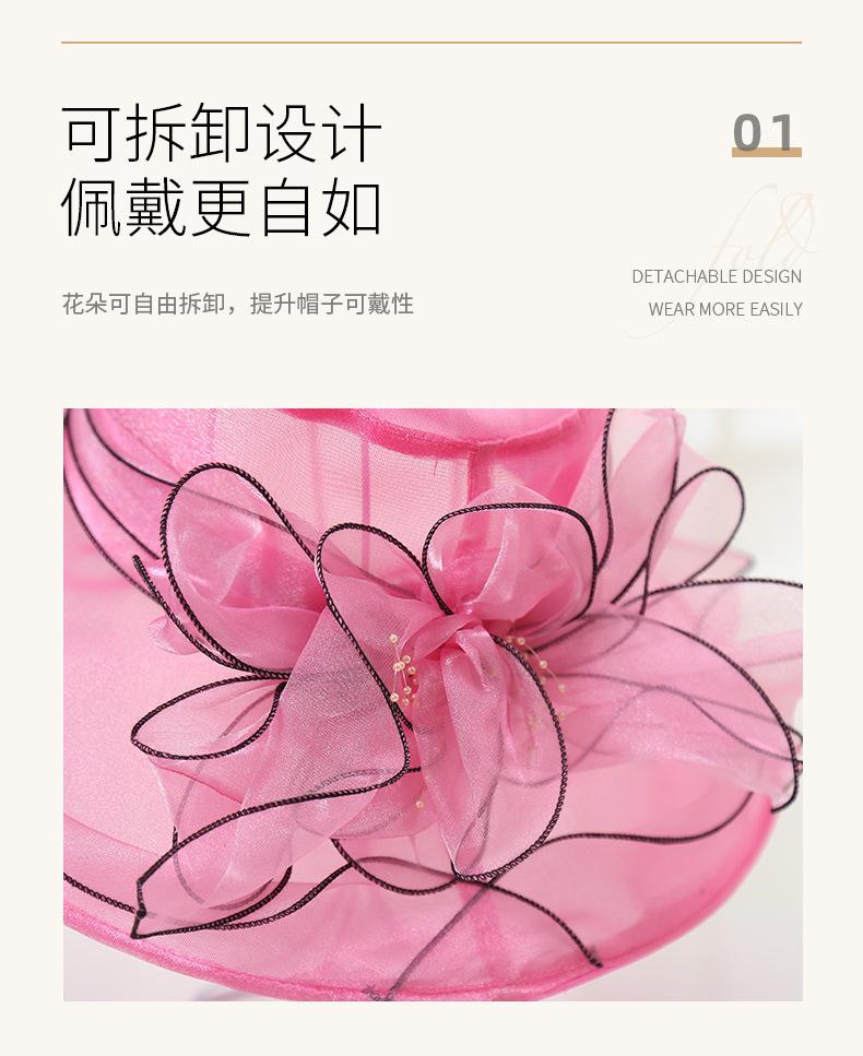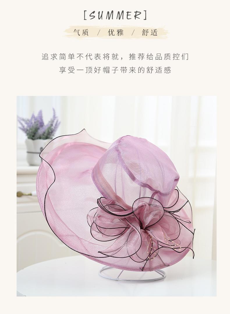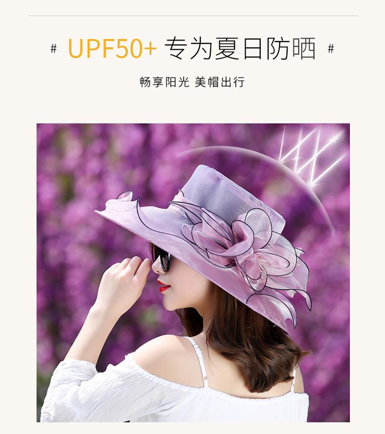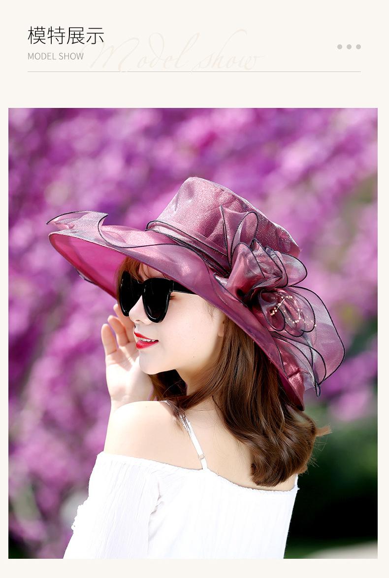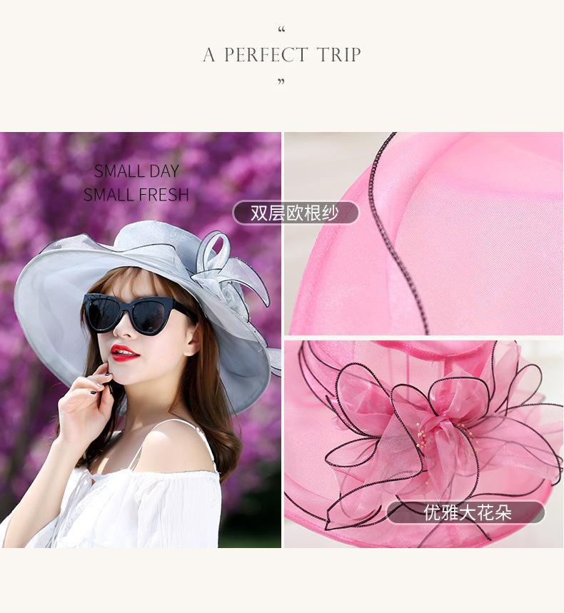 Sombrero de Playa de Verano Nuevo 2024 para Mujer Estilo Coreano Flor Organza Sombrero de Sol Sombrero de Sol de Ala Ancha