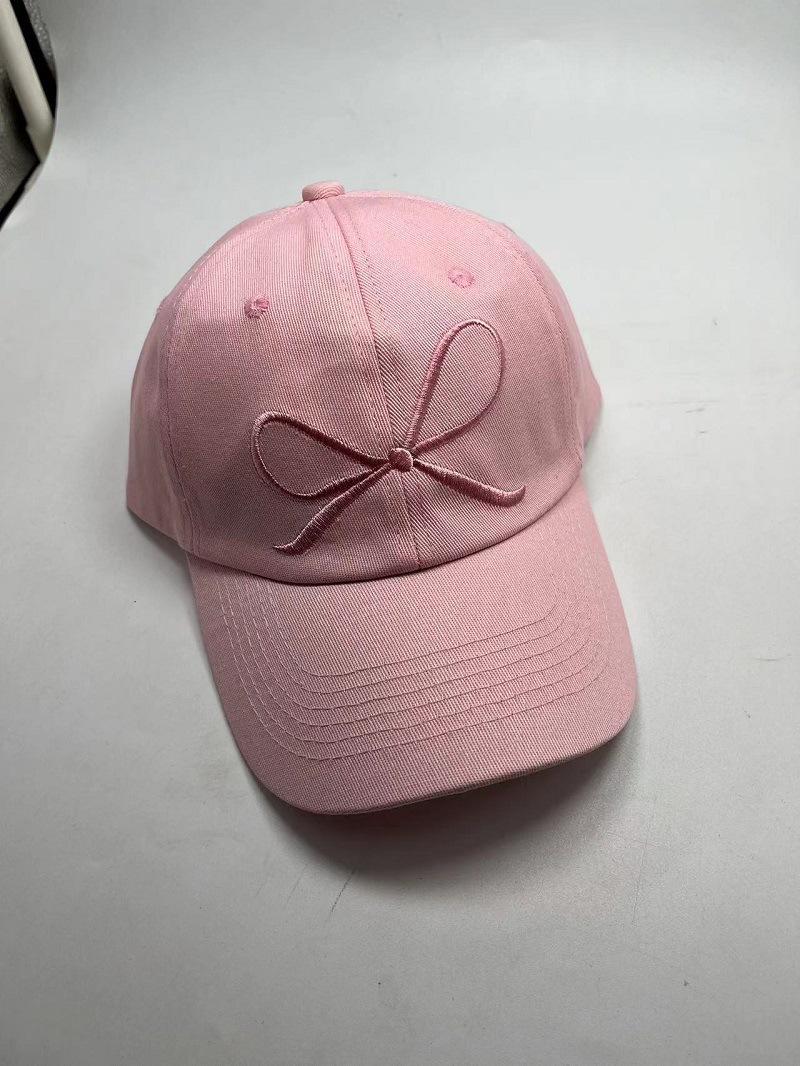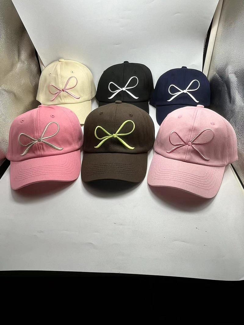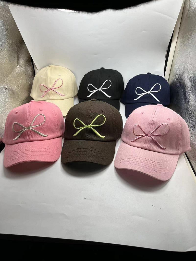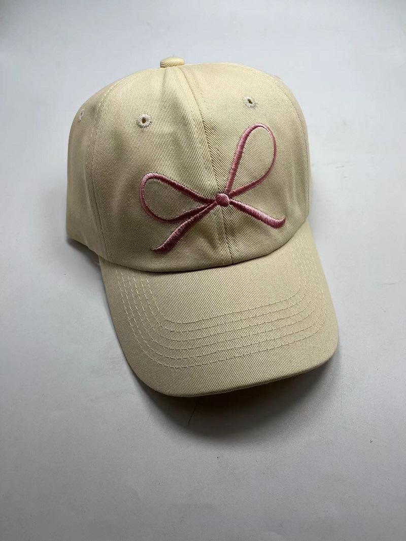 Embroidered Bow Baseball Cap-Beige, Embroidered Bow Baseball Cap-Black, Embroidered bow baseball cap-rose pink...