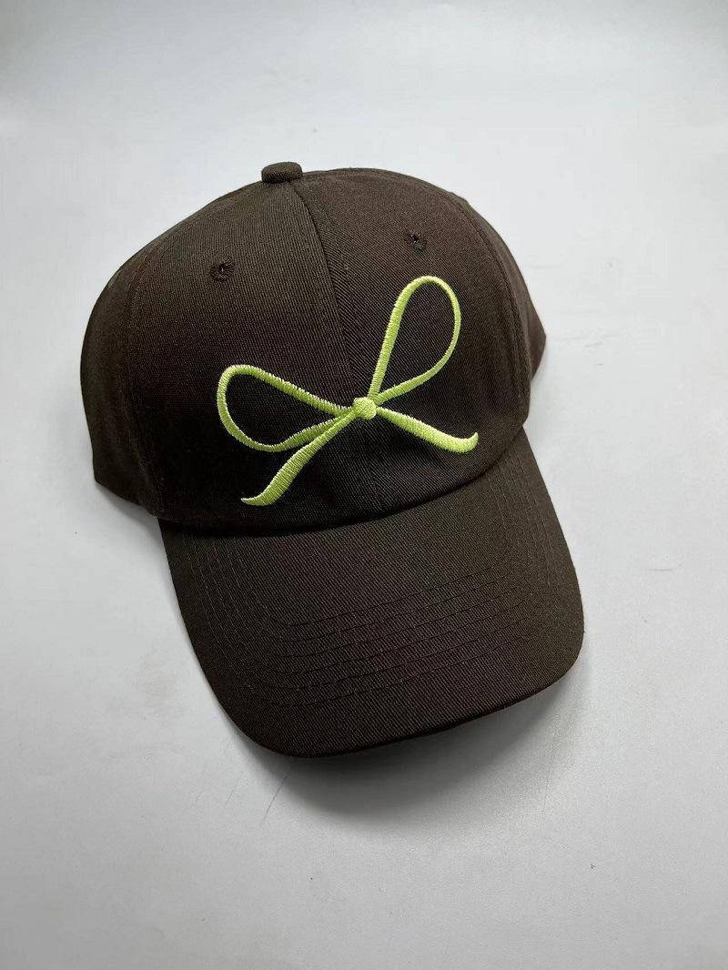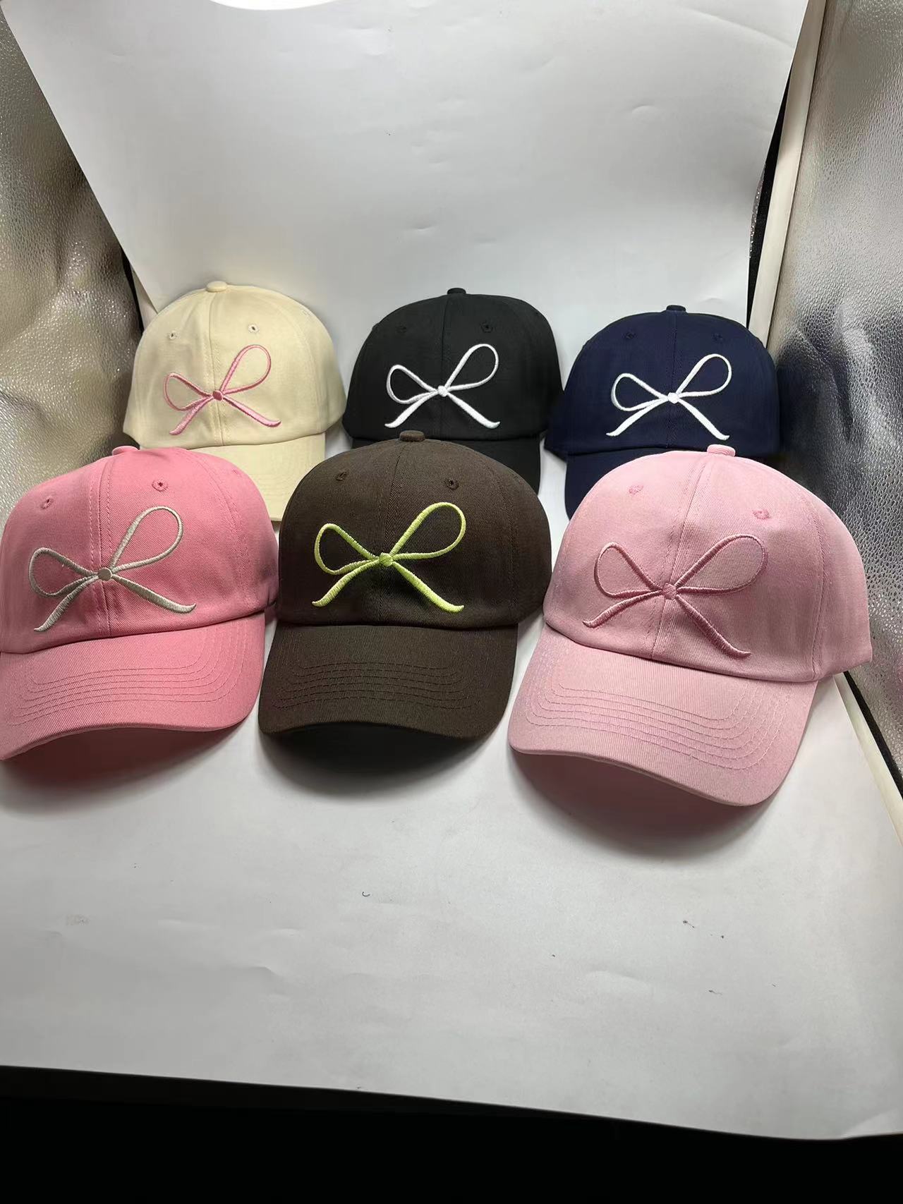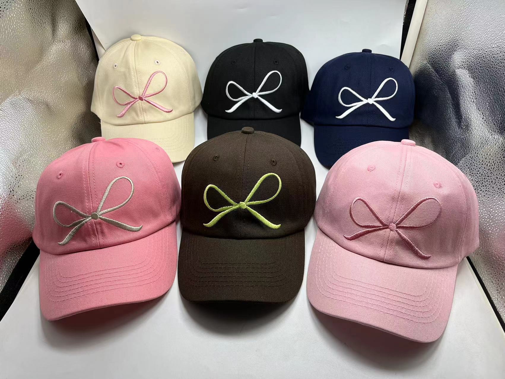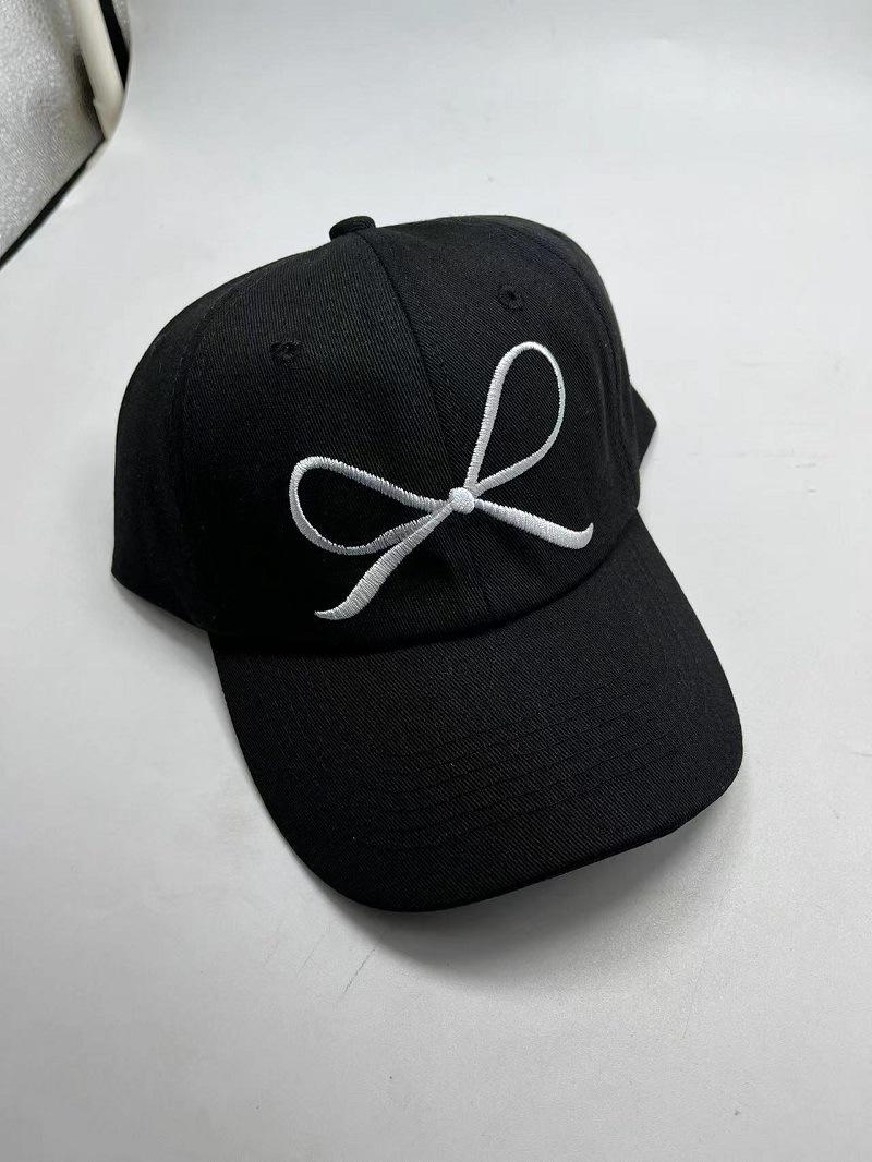Embroidered Bow Baseball Cap-Beige, Embroidered Bow Baseball Cap-Black, Embroidered bow baseball cap-rose pink...