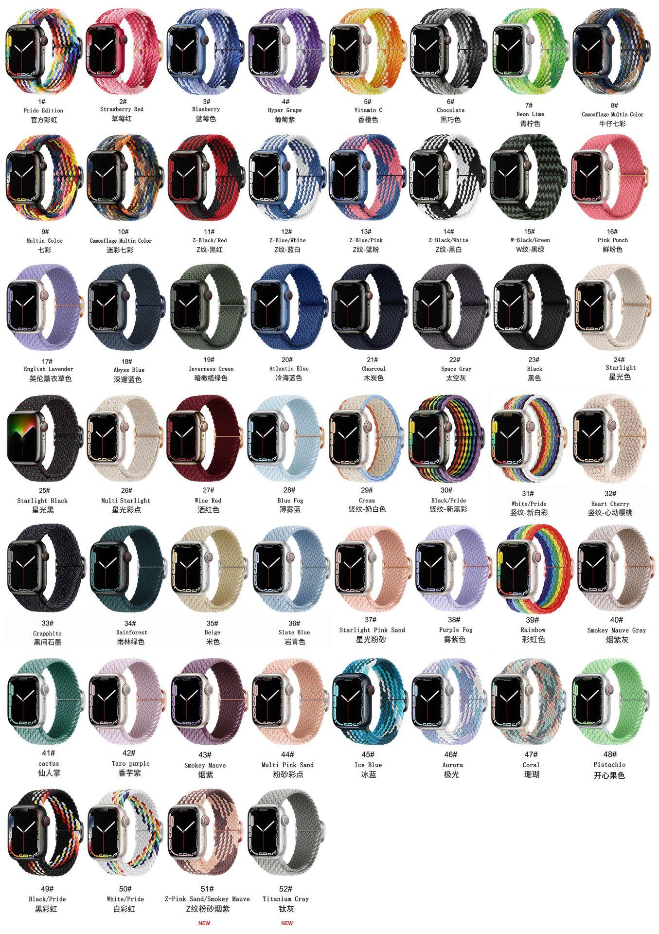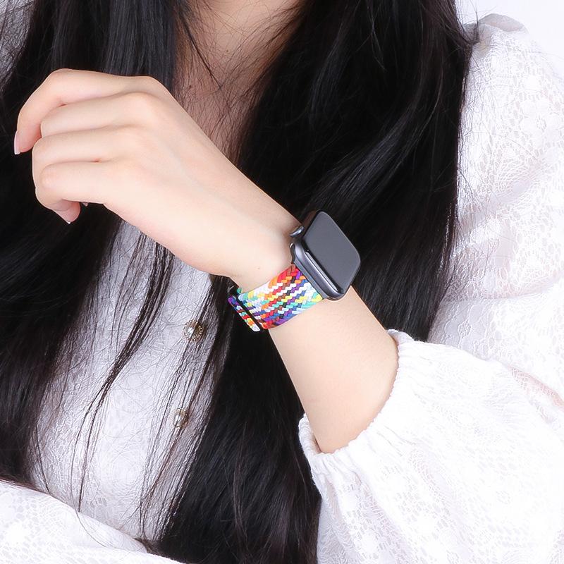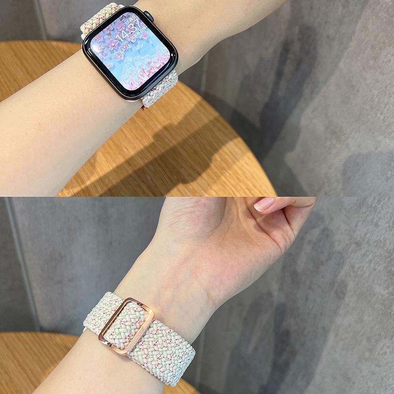 Nombre del producto: Aplicable a Apple iwatchS9 reloj correa tejida elástica Apple Watch9876SE pulsera de nailon ajustable