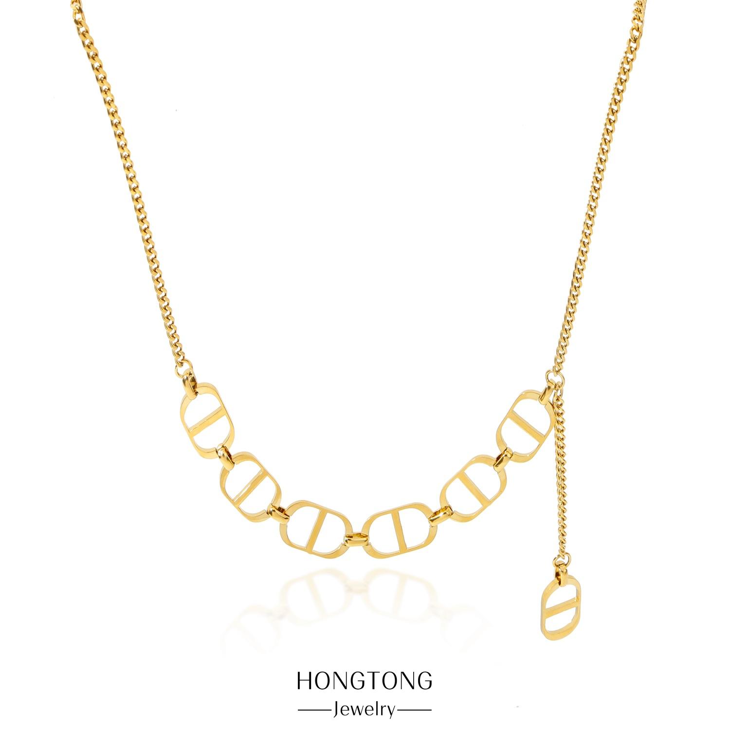 Moda Transfronteriza Collar Europeo y Americano de Acero Inoxidable Versátil Borla Nariz de Cerdo Collar de Acero al Titanio Joyería Personalizada Electrochapada