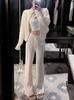 Pantalones anchos de punto blancos para mujer, de otoño e invierno, de cintura alta, adelgazantes, con tiras, holgados, rectos, informales, largos.