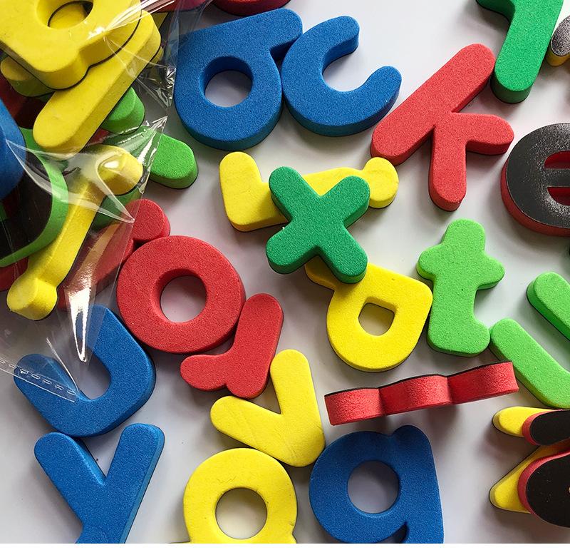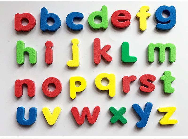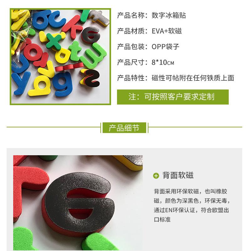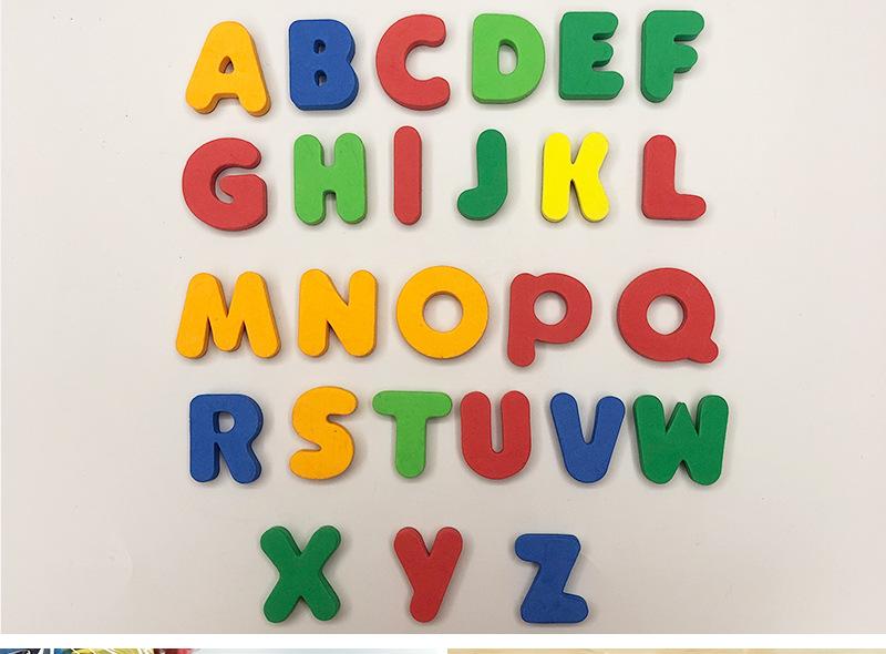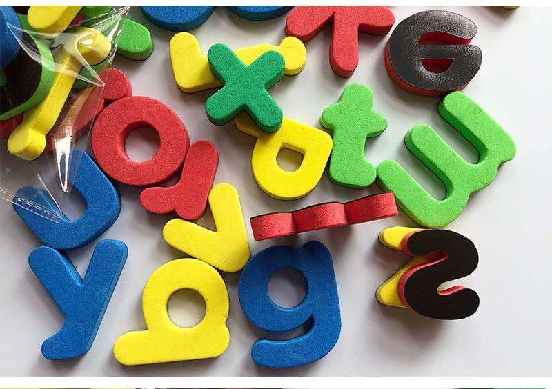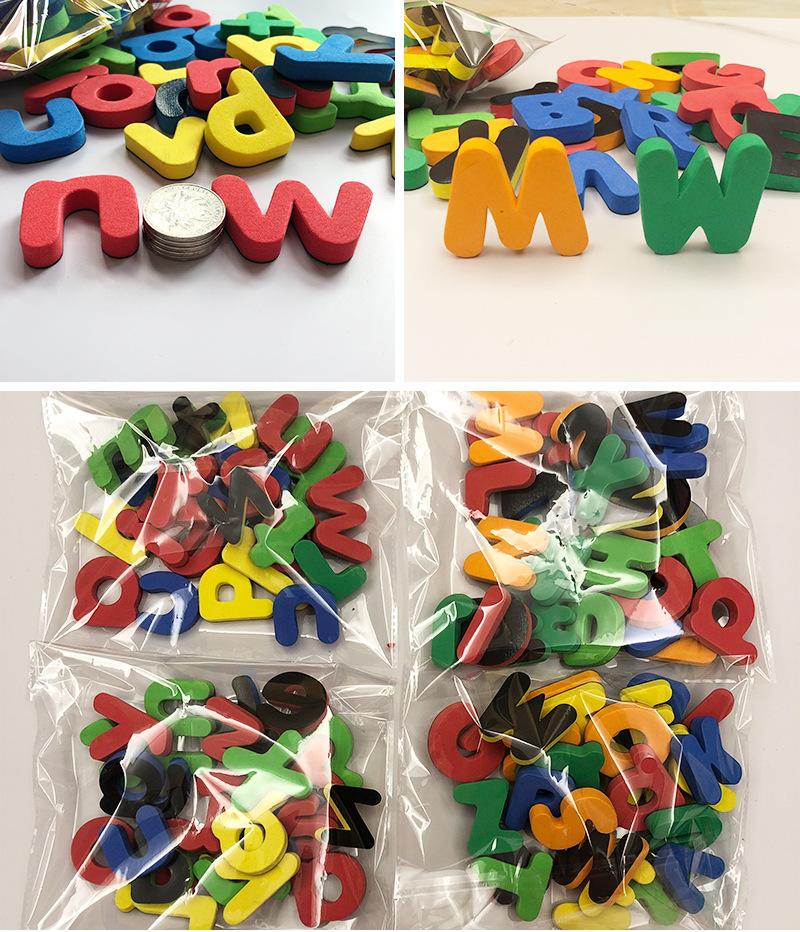 Suministro de fábrica de pegatinas magnéticas de EVA para refrigerador, juguetes digitales en inglés con letras de colores EVA para niños.