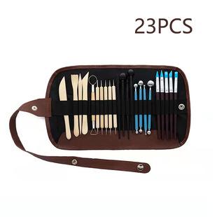 Juego de 23 herramientas de cerámica transfronterizas, bolsa de almacenamiento para esculturas de arcilla, palo de tallado, cuchillo de tallado, bolígrafo de taladro de silicona