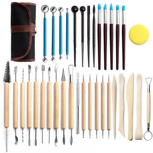 Juego de 36 herramientas de cerámica transfronterizas, escultura de arcilla, cuchillo para tallar, bola, palo, punta de silicona, taladro, bolígrafo, detalle, siete agujas