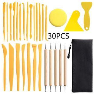 Herramientas de cerámica transfronterizas, 30 piezas, juego de arcilla, escultura de arcilla, cuchillo para tallar, punta, taladro, bolígrafo, raspador auxiliar, bolsa de almacenamiento en stock