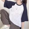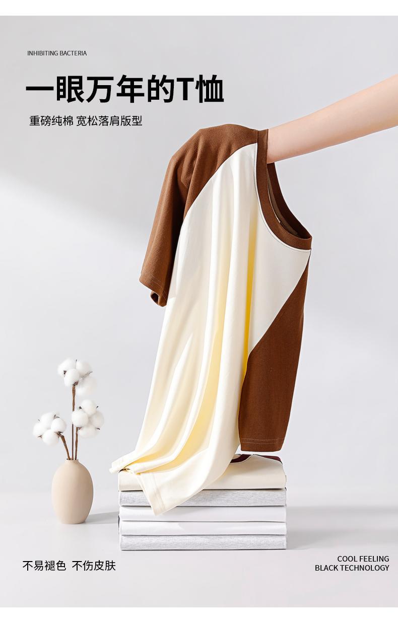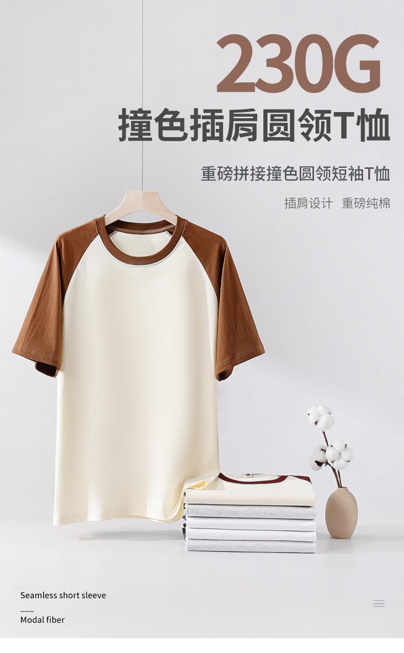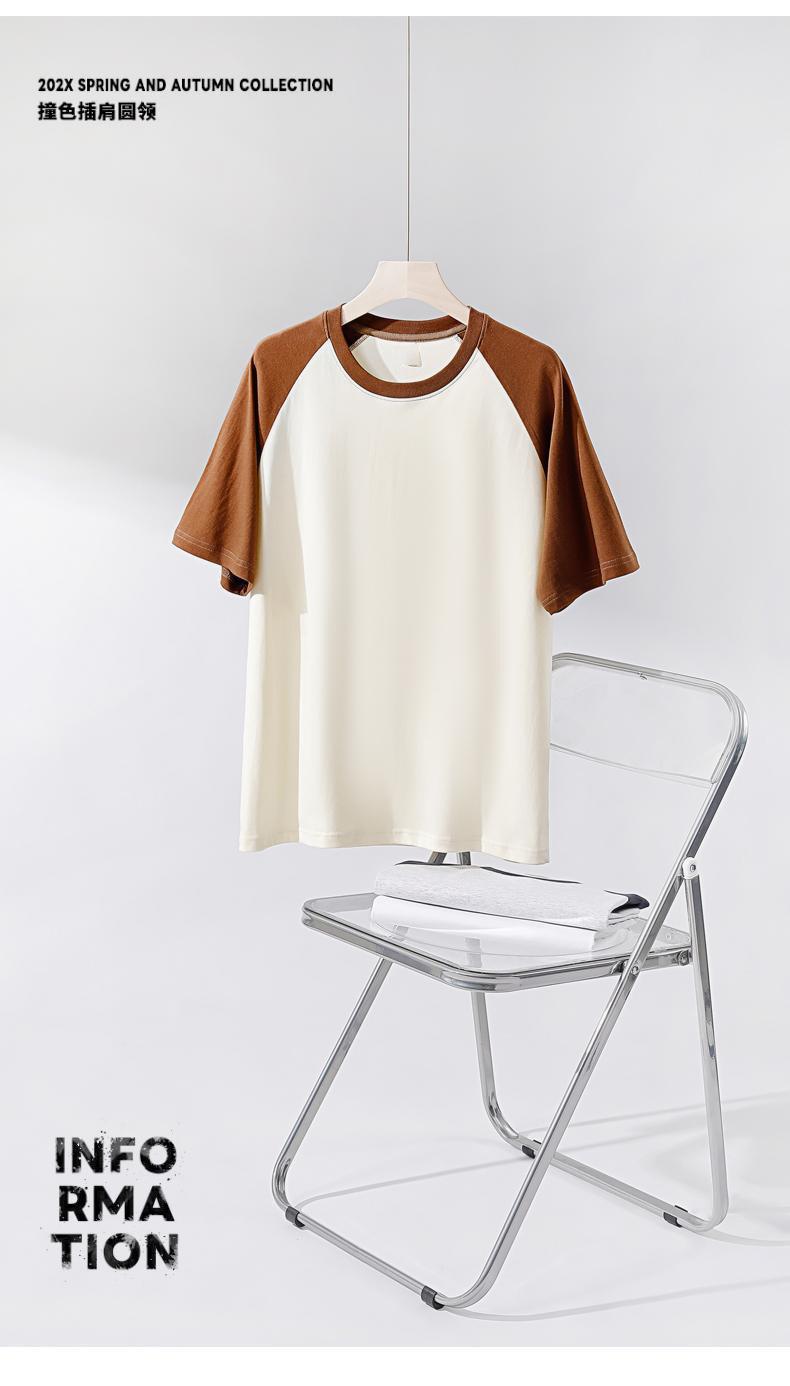 Camiseta de manga corta raglán de 230 g de American High Street, de marca de moda de verano para mujer, popular top de algodón puro para pareja