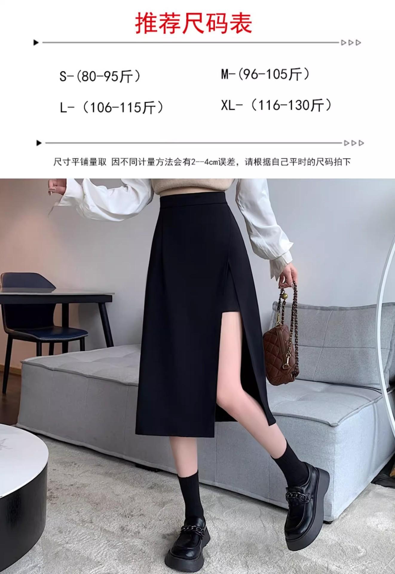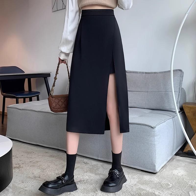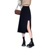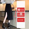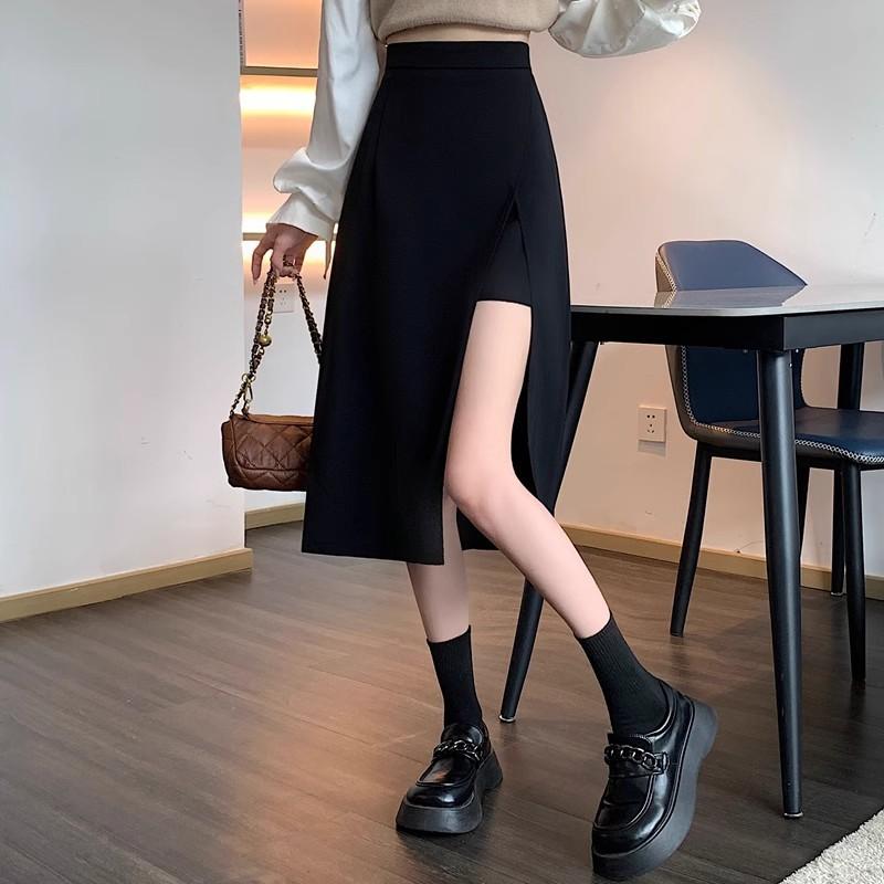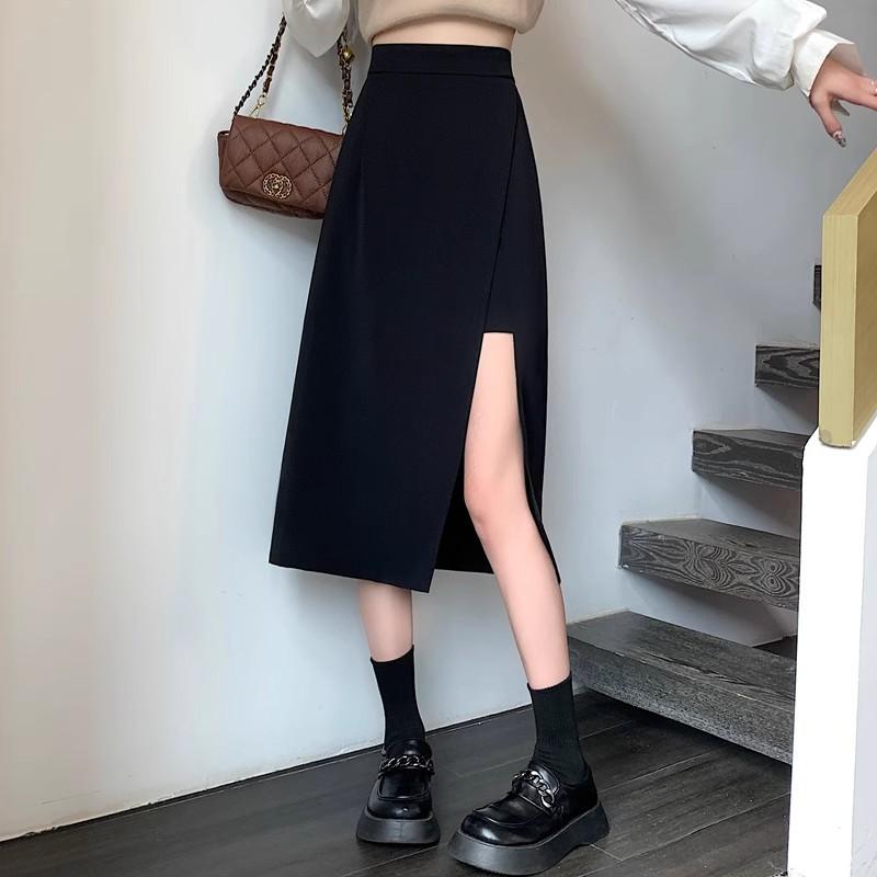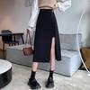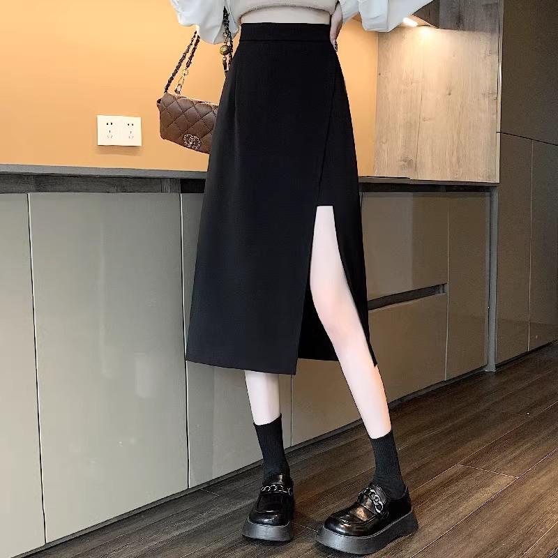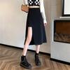 Falda negra con abertura irregular para mujer, falda de verano de longitud media, línea A, nueva falda de cintura alta a la cadera 2024