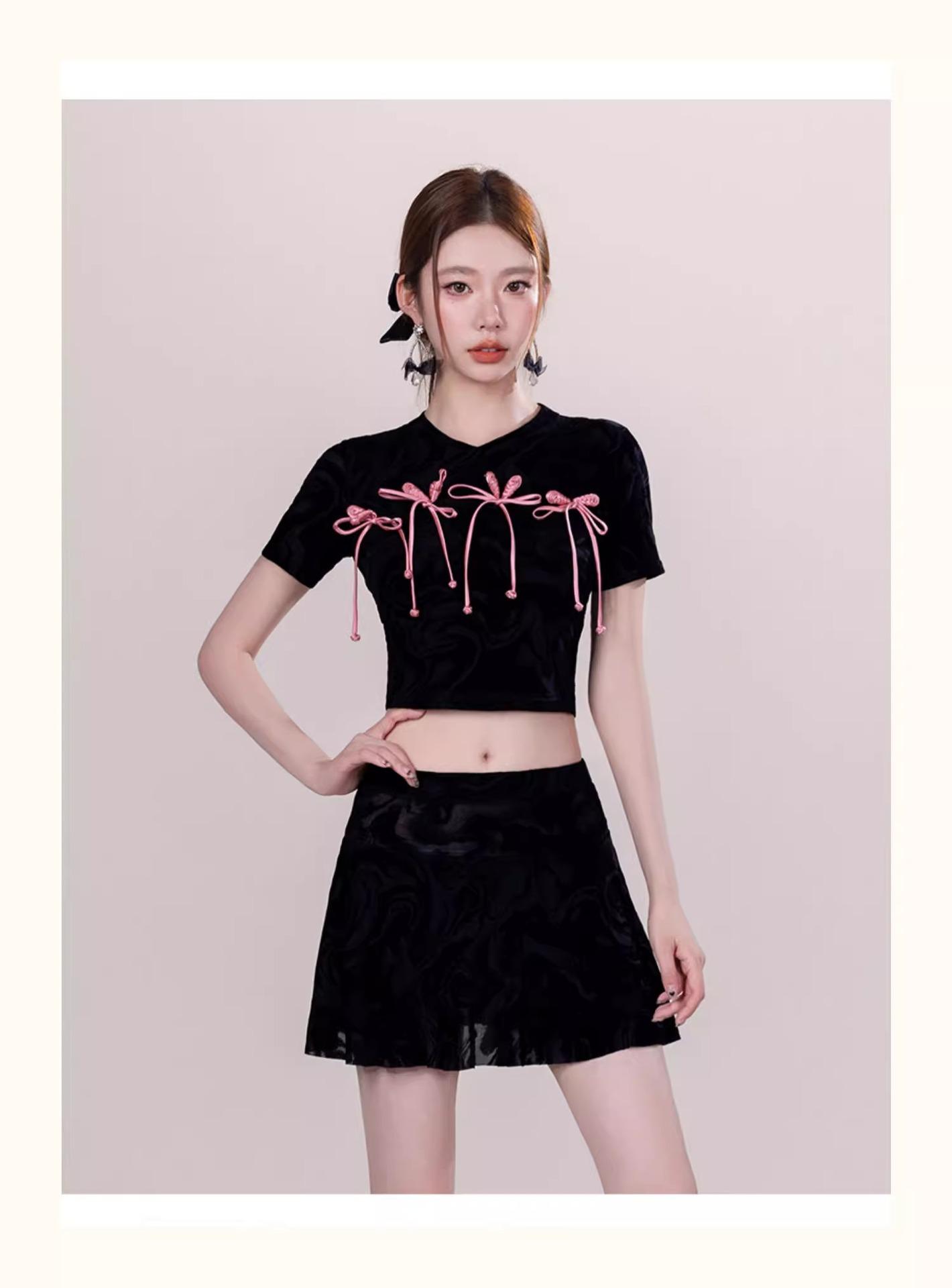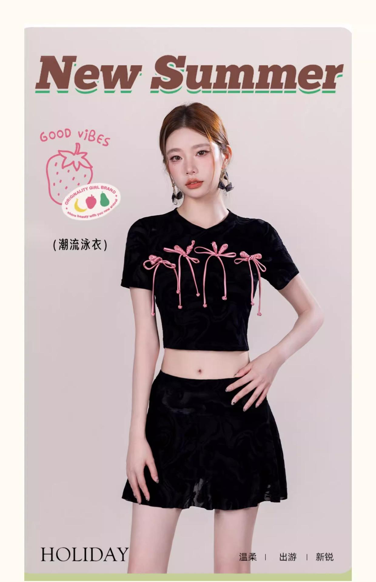 Traje de baño negro con lazo dividido para mujer Traje de baño de alta gama para mujer Traje de baño con falda 2024 Nuevo Orse Bird