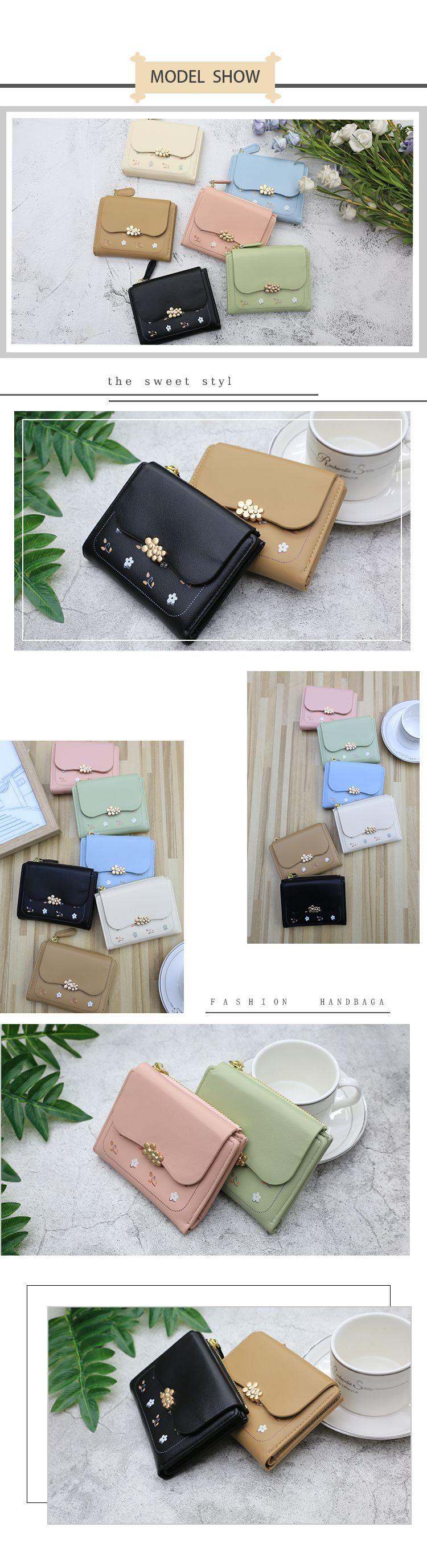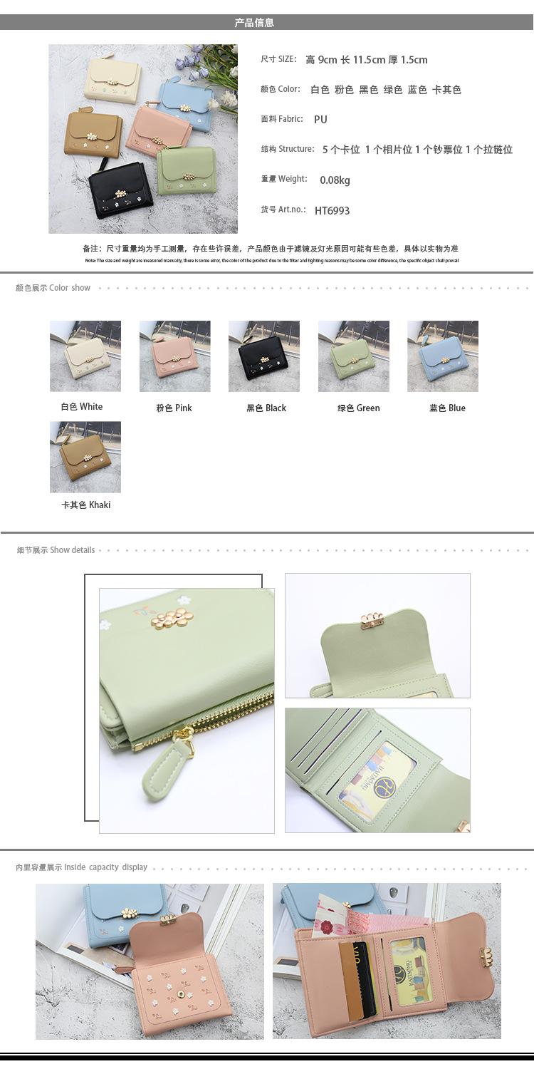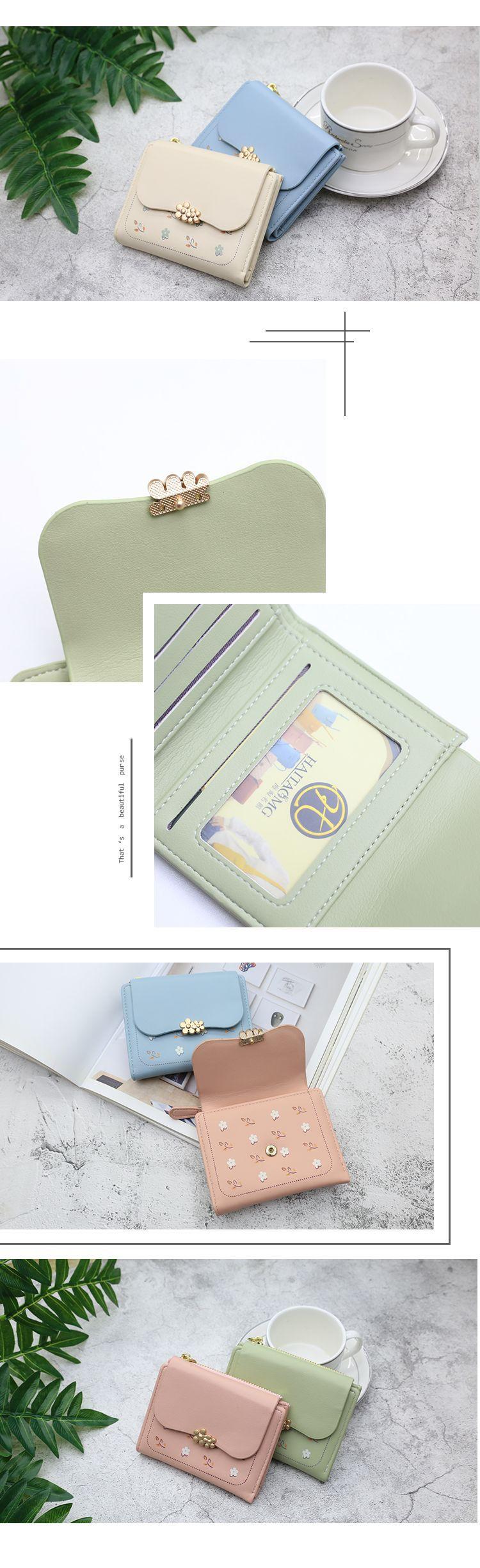 Cartera corta con estampado de color liso para mujer, estilo nuevo, monedero pequeño y práctico, gran capacidad, estilo versátil.