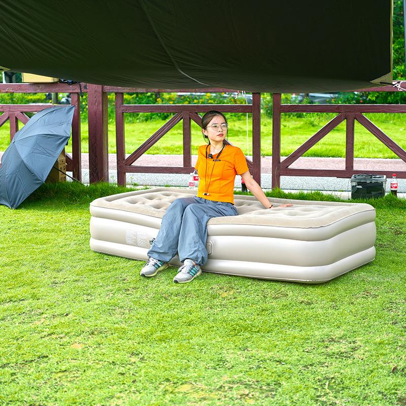 Nueva cama inflable de flocado engrosado, con llenado y bombeo automático con un solo clic, para el hogar, doble, portátil, para exteriores, colchón de aire, colchón perezoso
