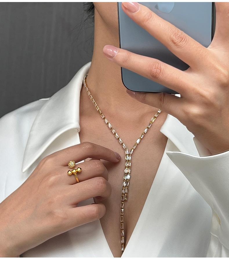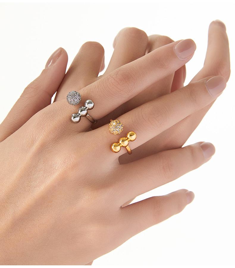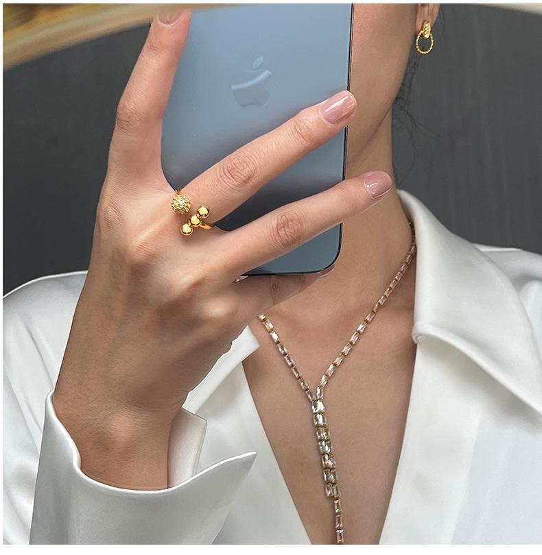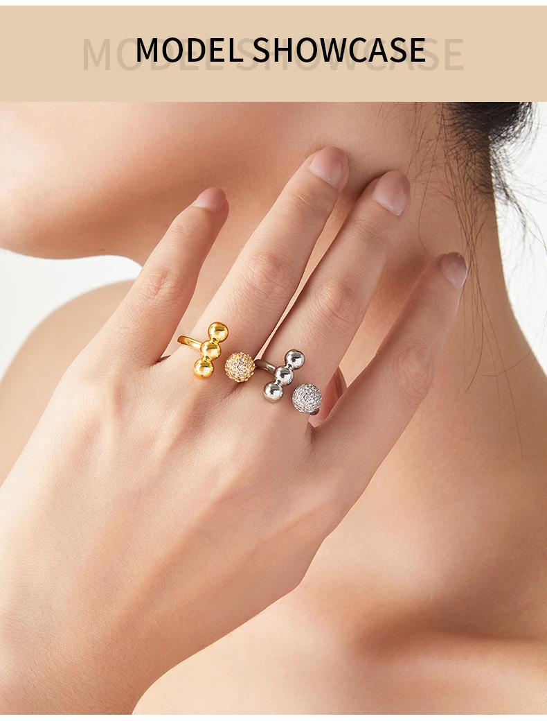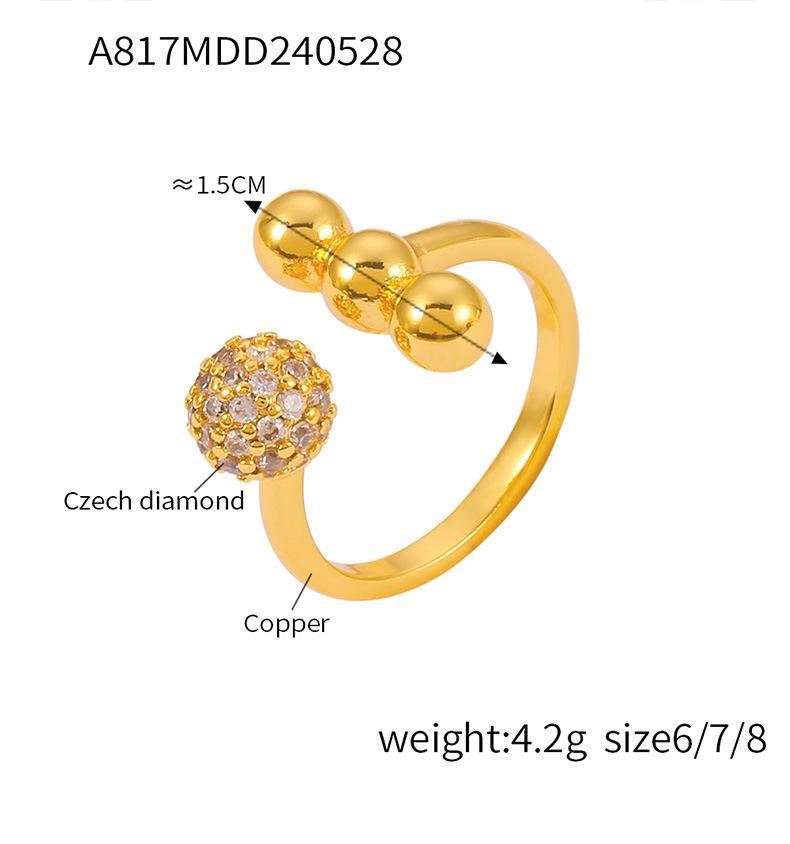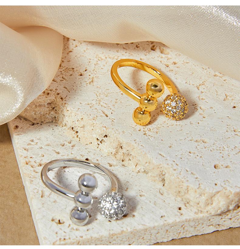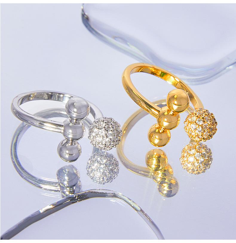 Anillo abierto de lujo con luz esférica de diamante, diseño de nicho de celebridades de Internet de moda, anillo de material de cobre, personalizado, venta directa.