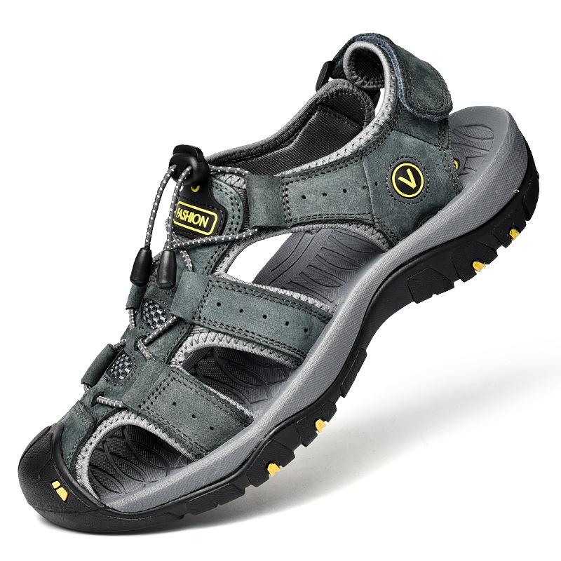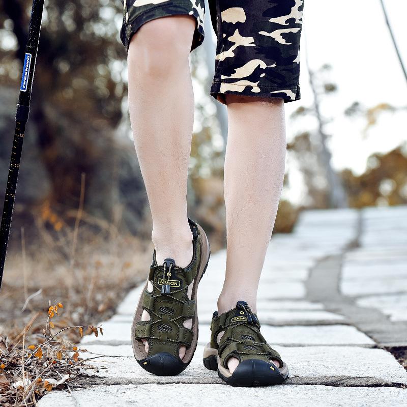 Sandalias de hombre de alta calidad comercio exterior capa grande muelle piel de vaca exterior cuero zapatos huecos suela gruesa casual sandalias de hombre