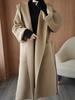 Abrigo largo de lana con capucha para otoño e invierno, nuevo, elegante, sencillo, con cordones y doble cara, por encima de la rodilla, para mujer.