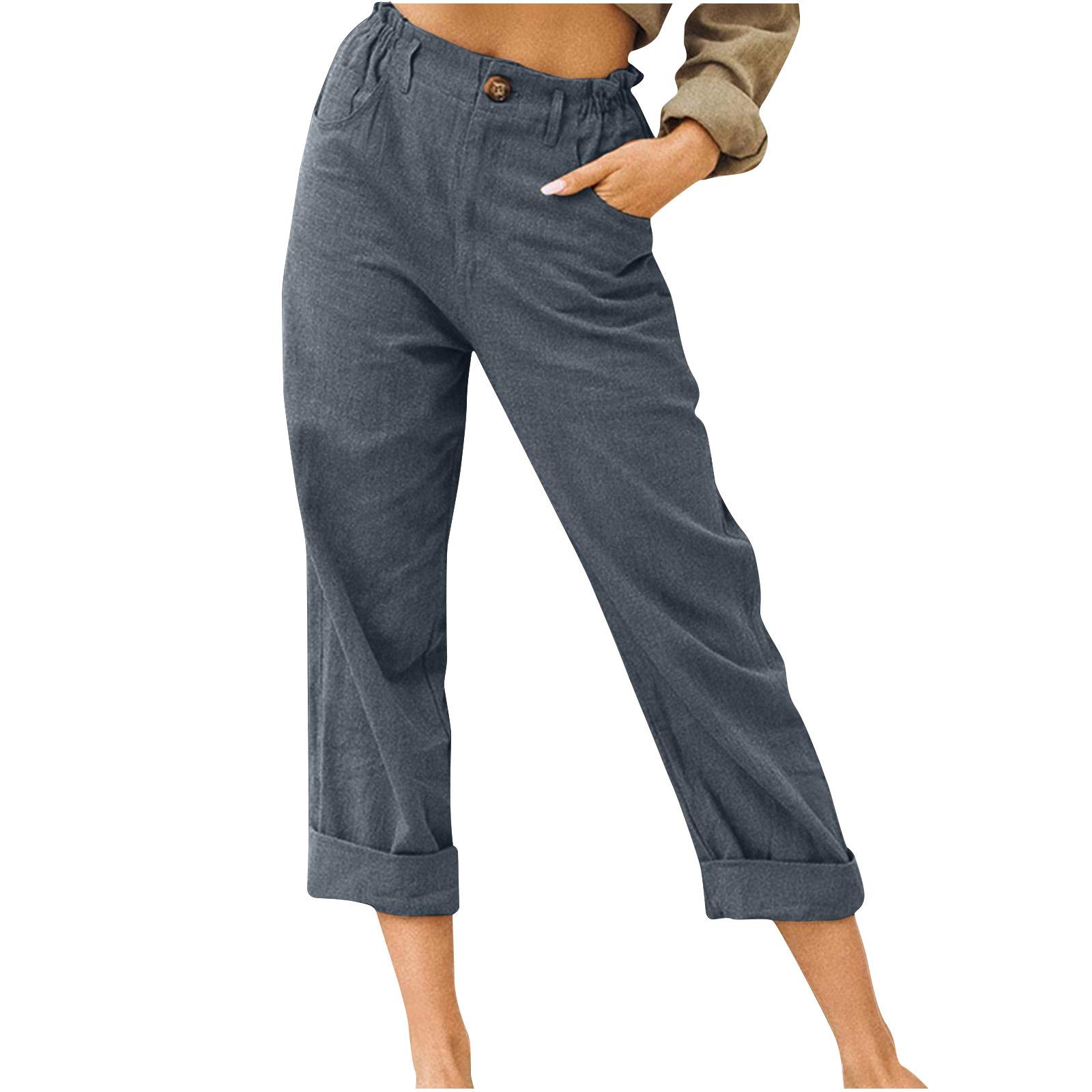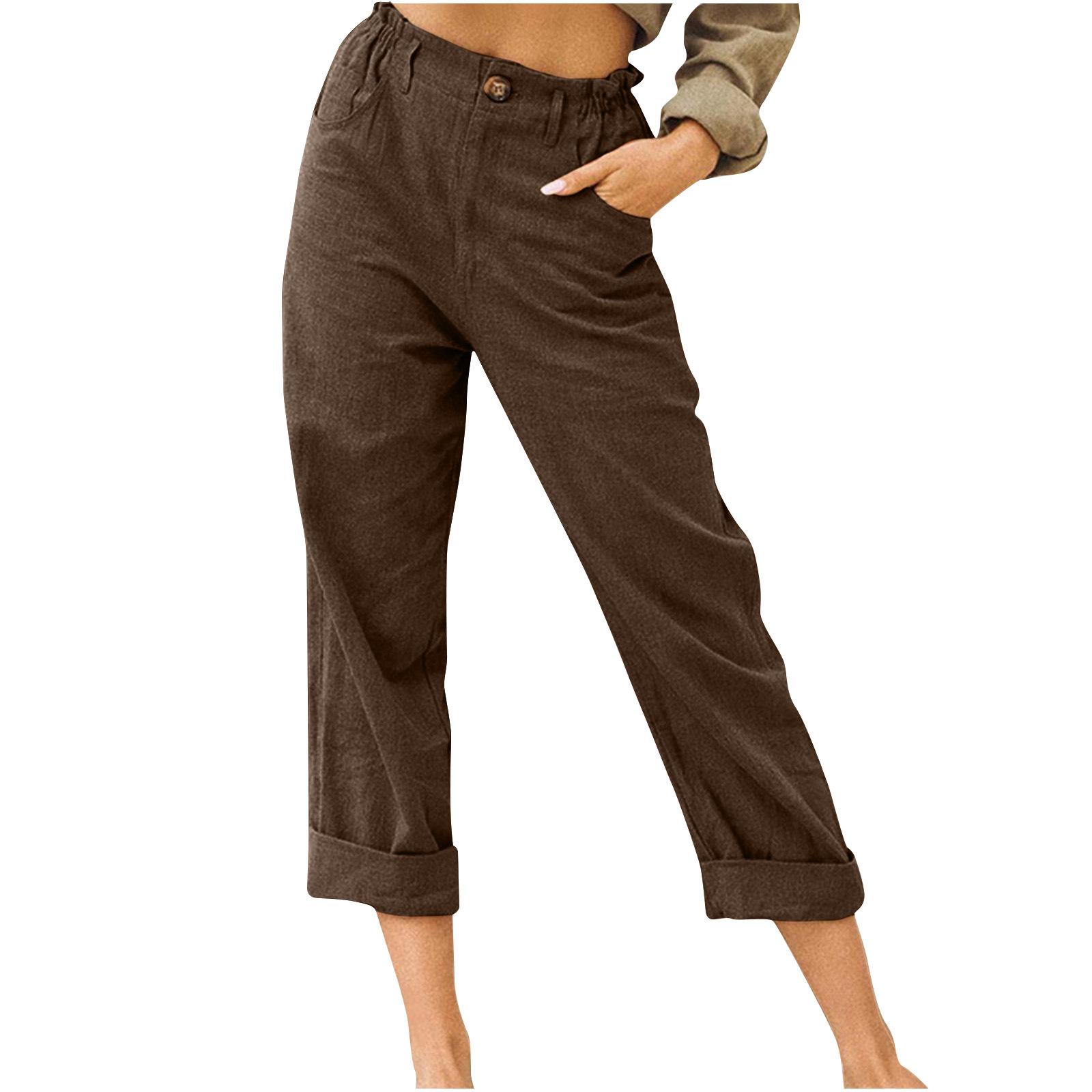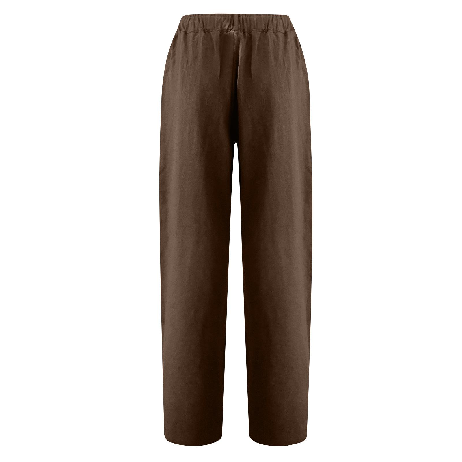 Ropa de mujer europea y americana Amazon 2023 Pantalones nuevos Comercio exterior Transfronterizo Color sólido Algodón y lino Moda Suelta Cintura alta Casual
