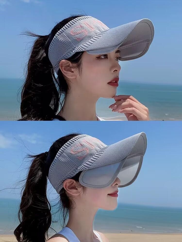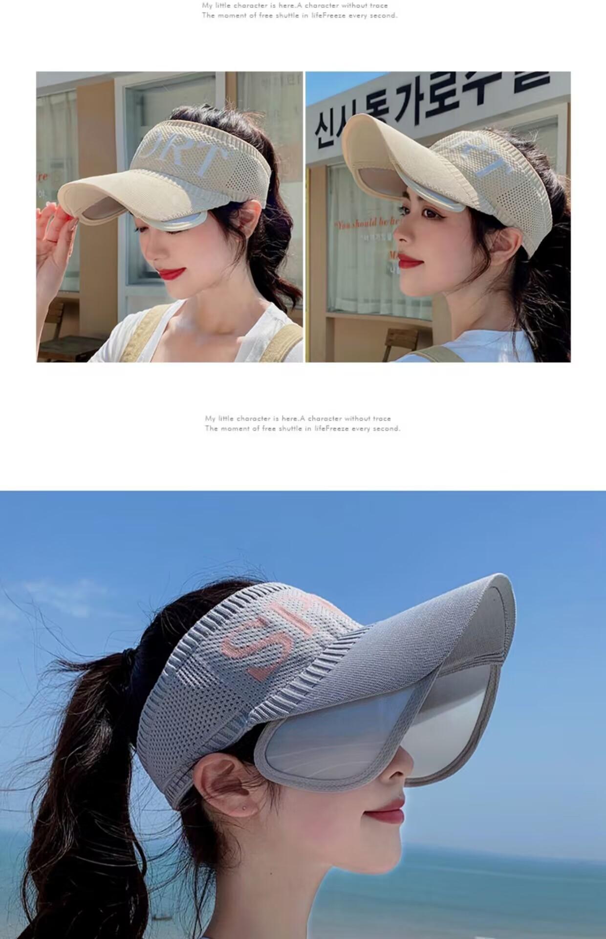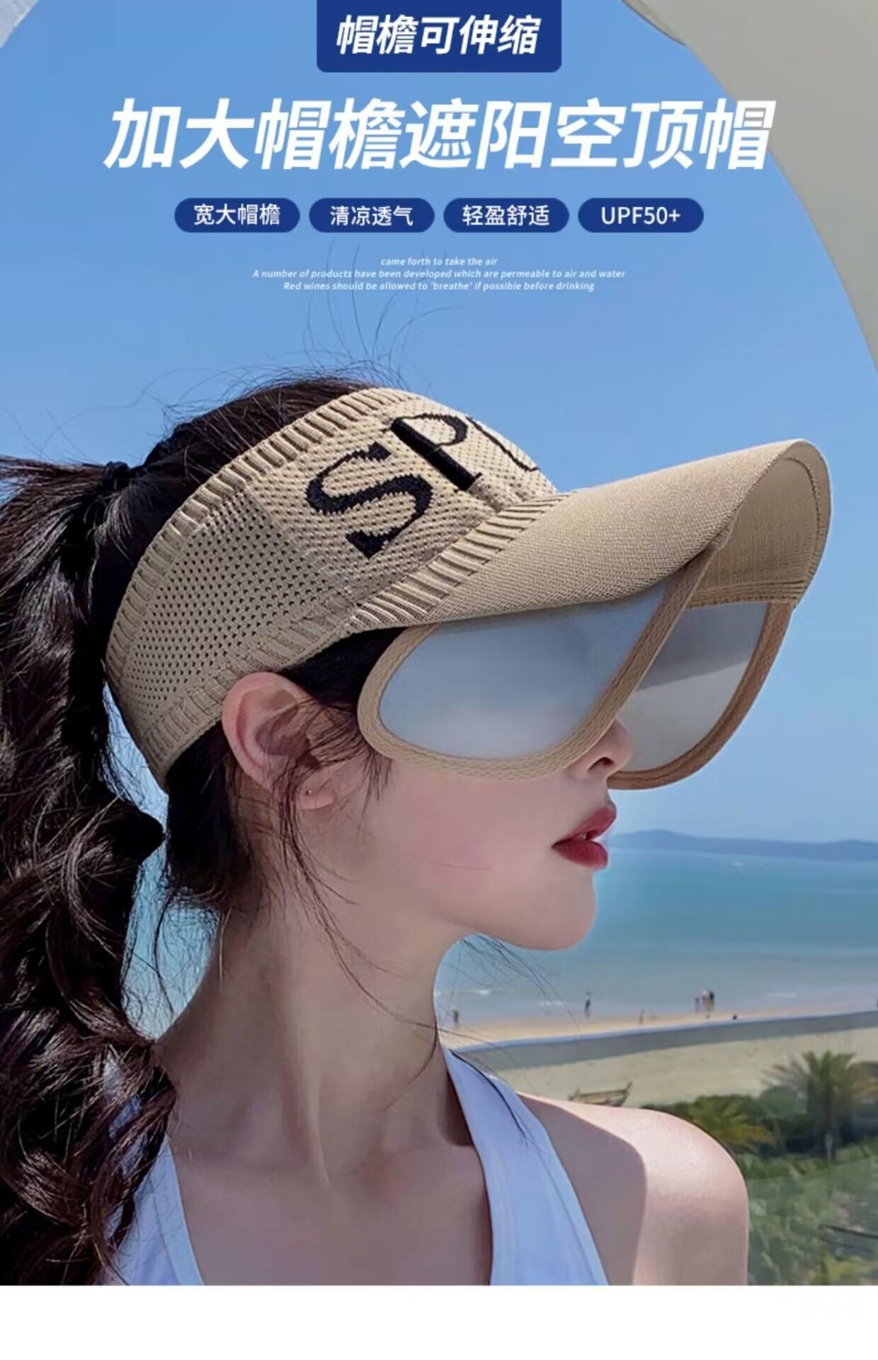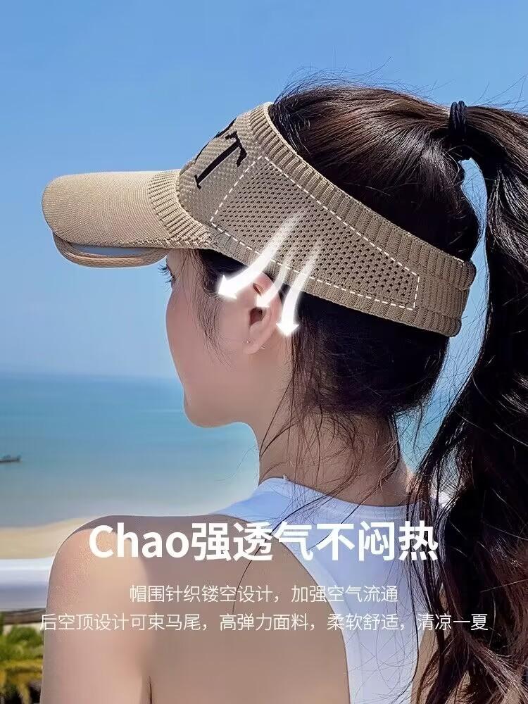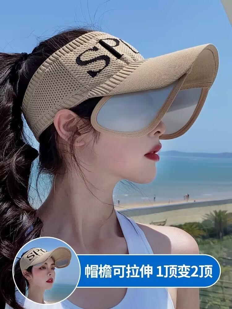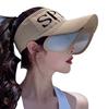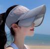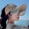 Sombrero de verano para mujer, estilo coreano, vacío, tejido volador, transpirable, retráctil, de ala grande, para el sol, para viajar