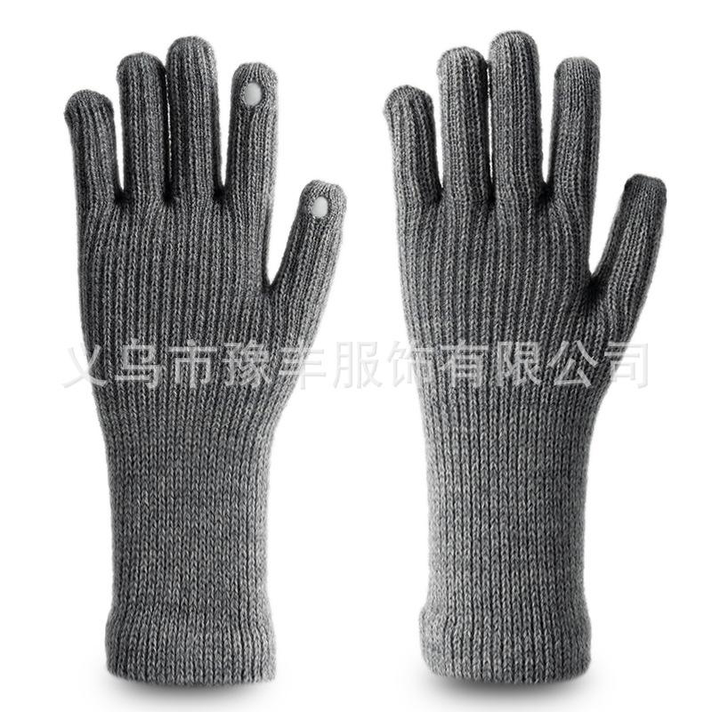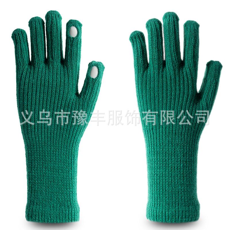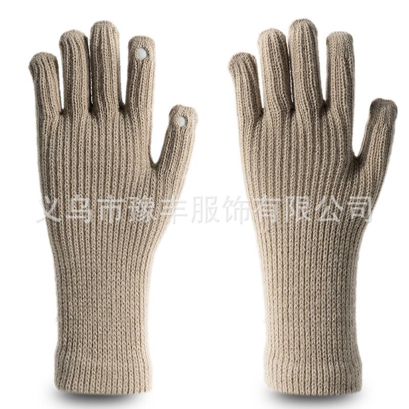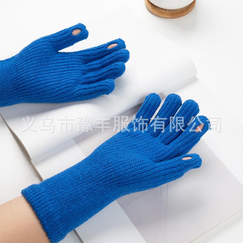 Guantes de Invierno Cálidos Largos Estilo Coreano Simples Color Sólido Gruesos Exponer Dedo Pantalla Táctil Guantes de Lana Tejida para Estudiantes Ciclismo