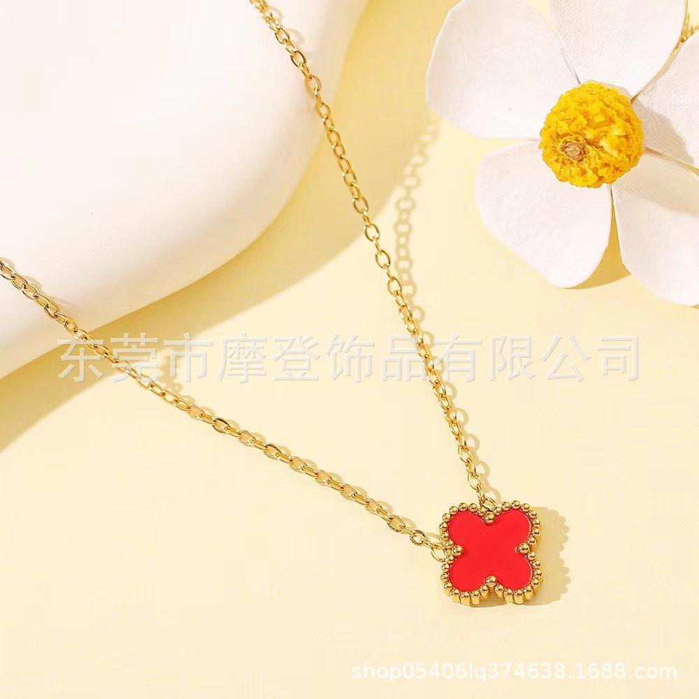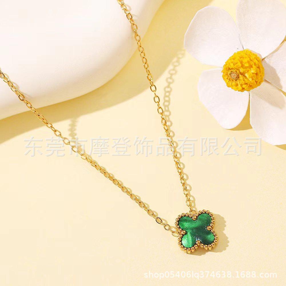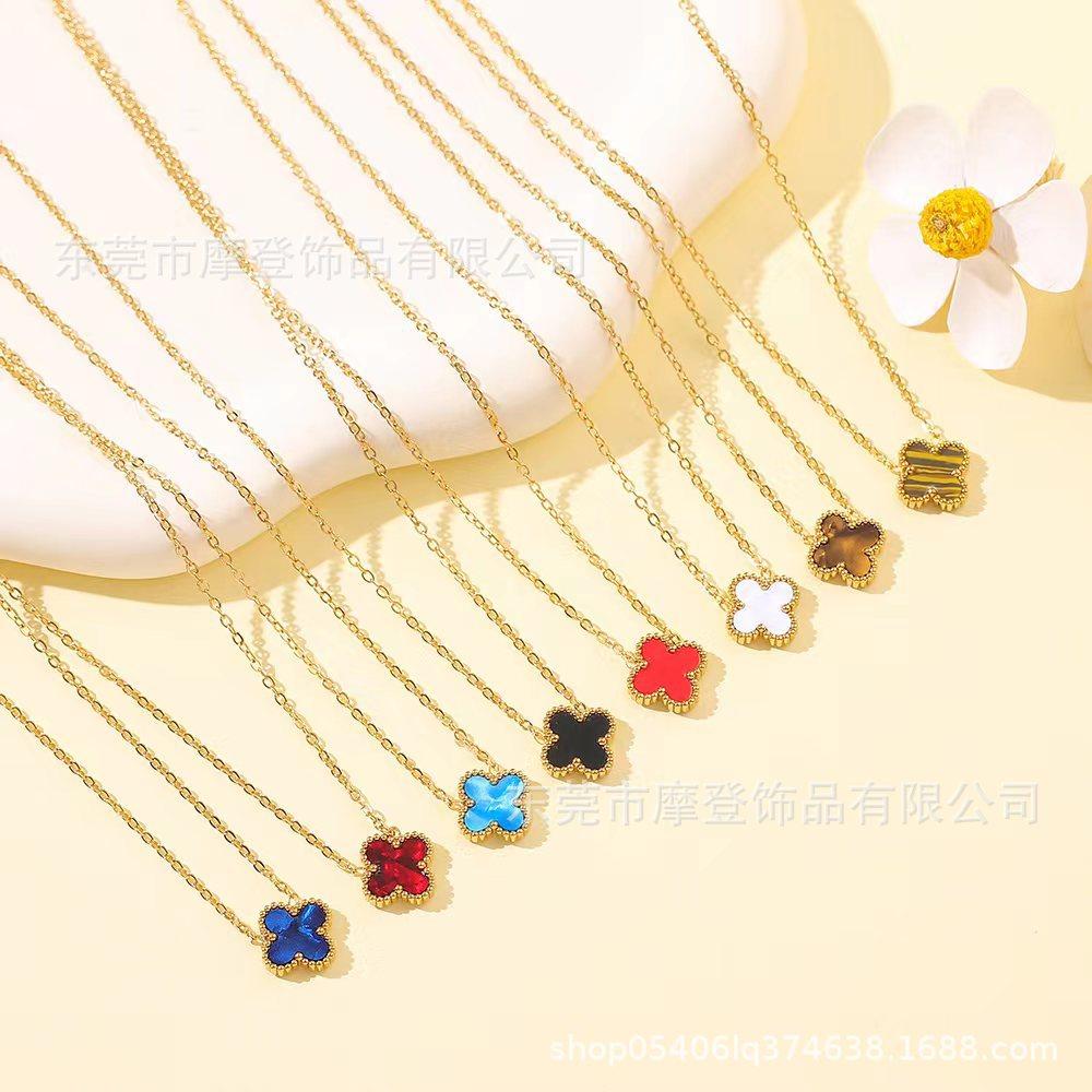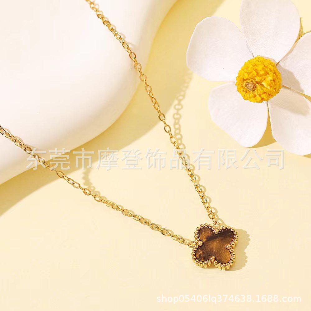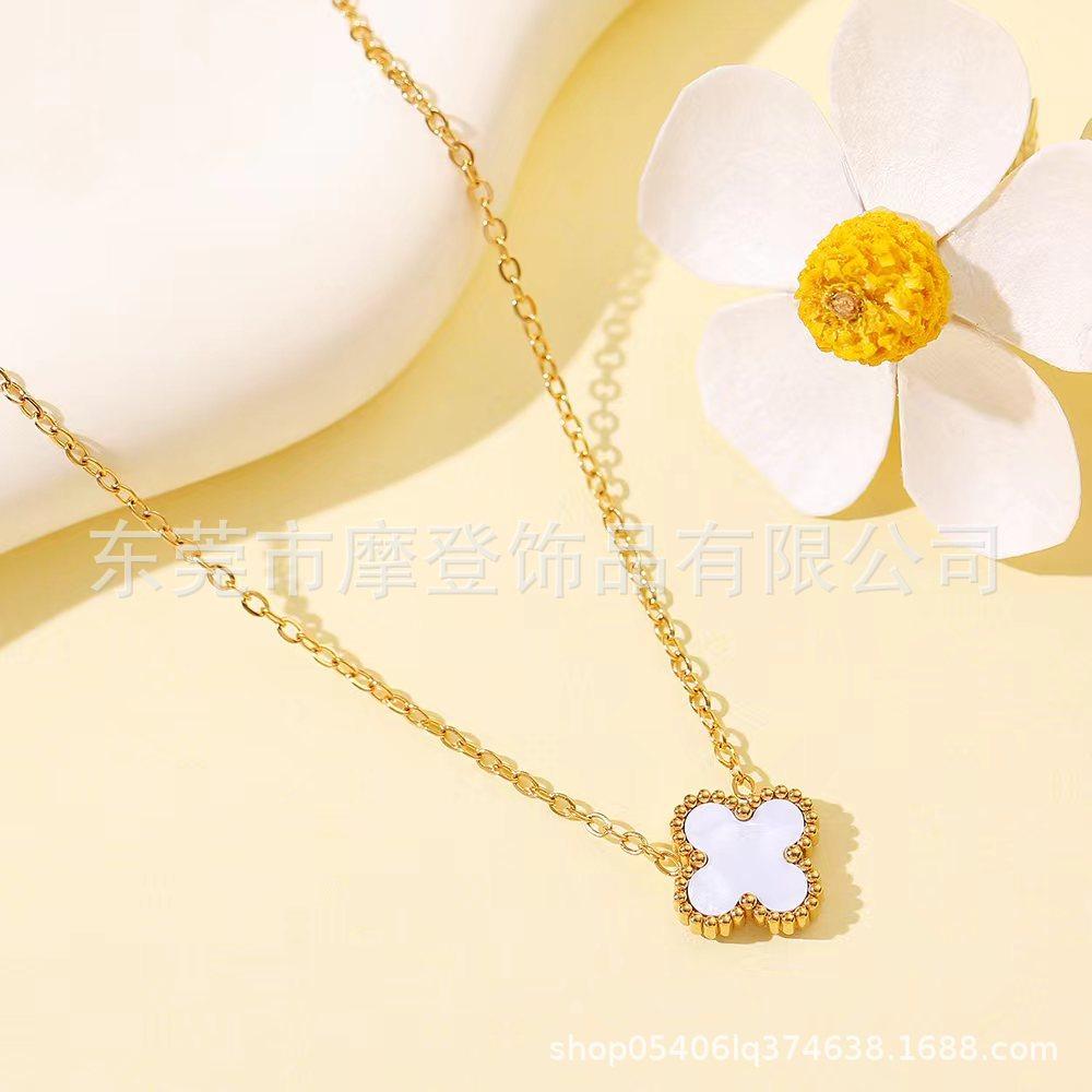 Collar de la suerte para niña con trébol de cuatro hojas, acero de titanio, oro de 18 quilates, colgante sencillo, cadena de clavícula de lujo de Tradoran Cyber Celebrity.