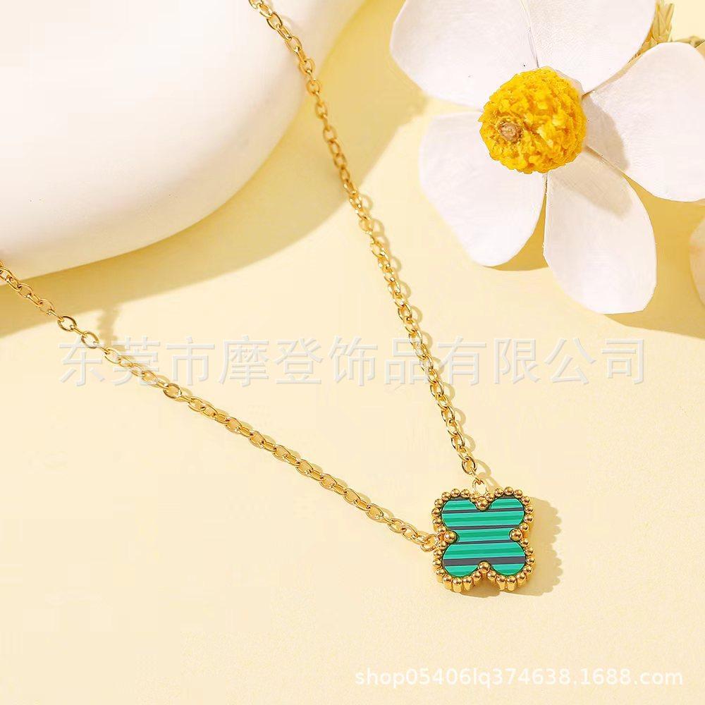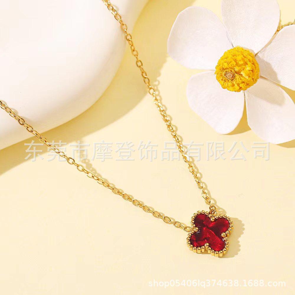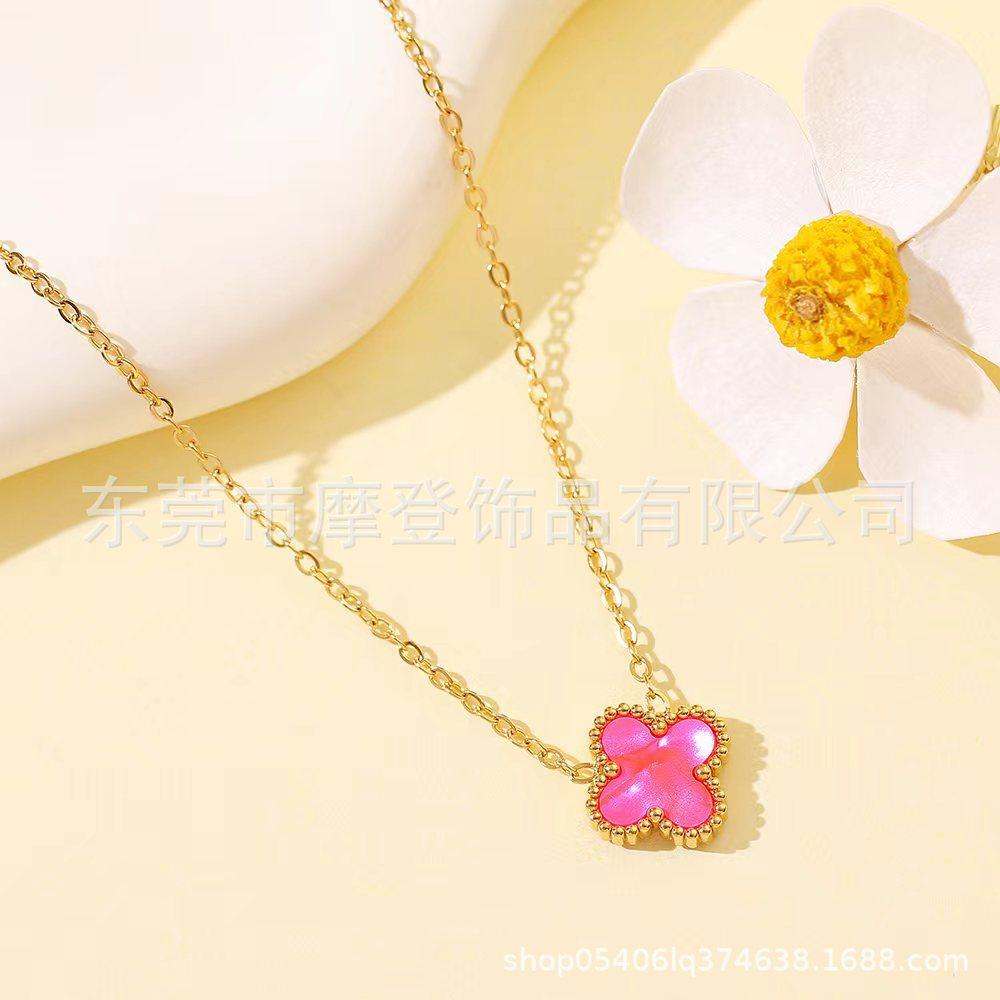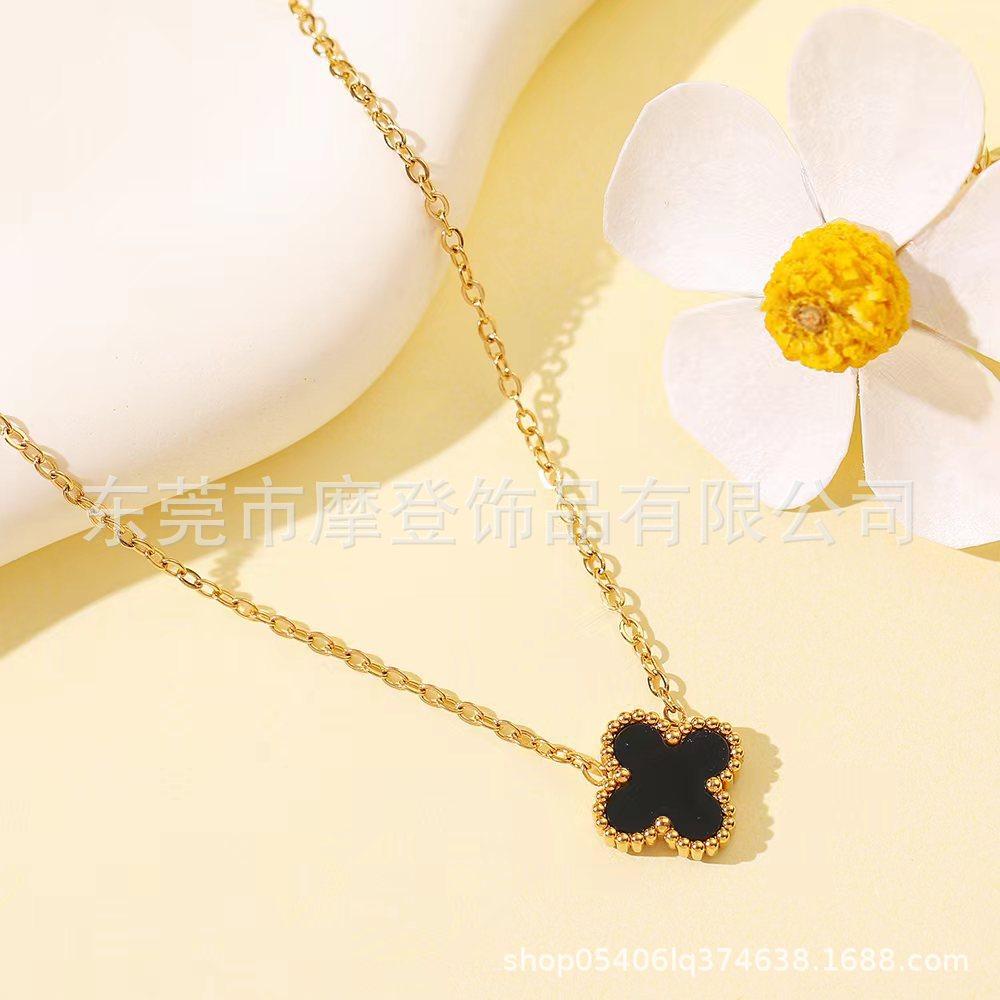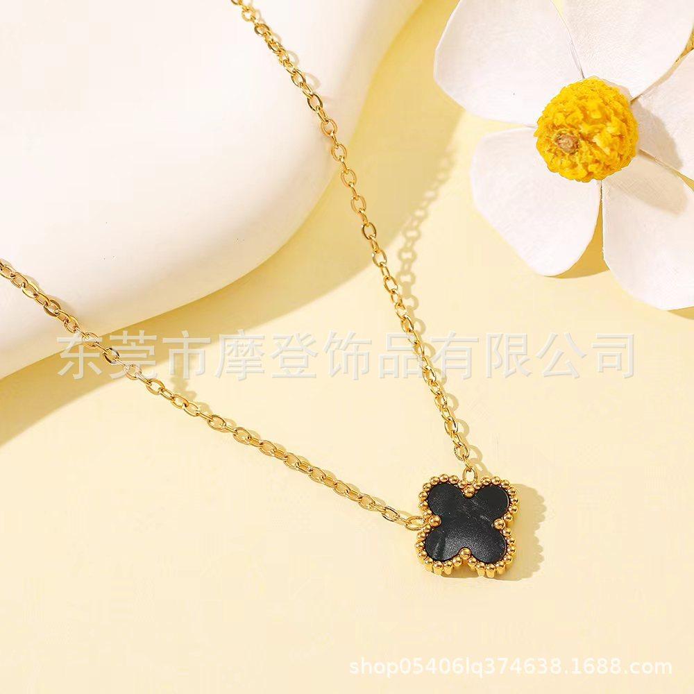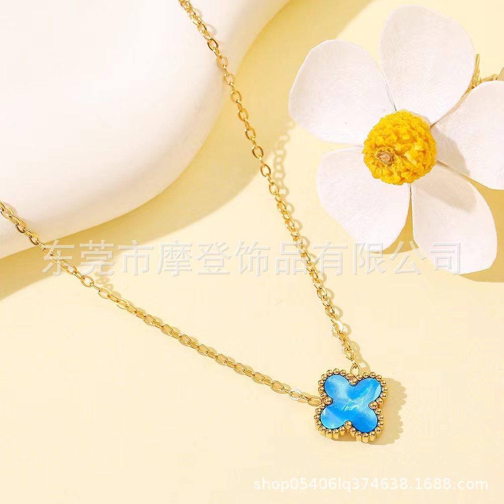 Collar de la suerte para niña con trébol de cuatro hojas, acero de titanio, oro de 18 quilates, colgante sencillo, cadena de clavícula de lujo de Tradoran Cyber Celebrity.