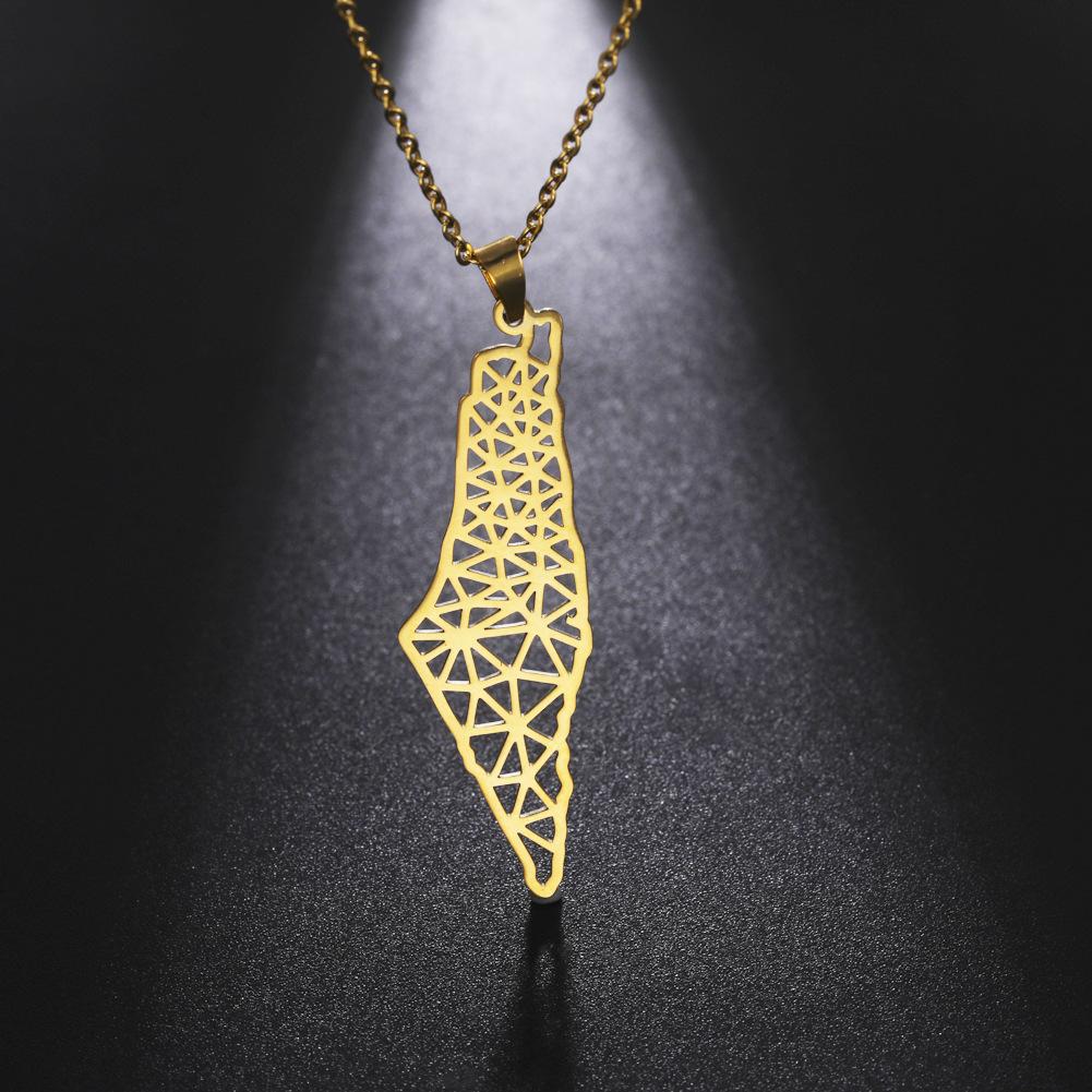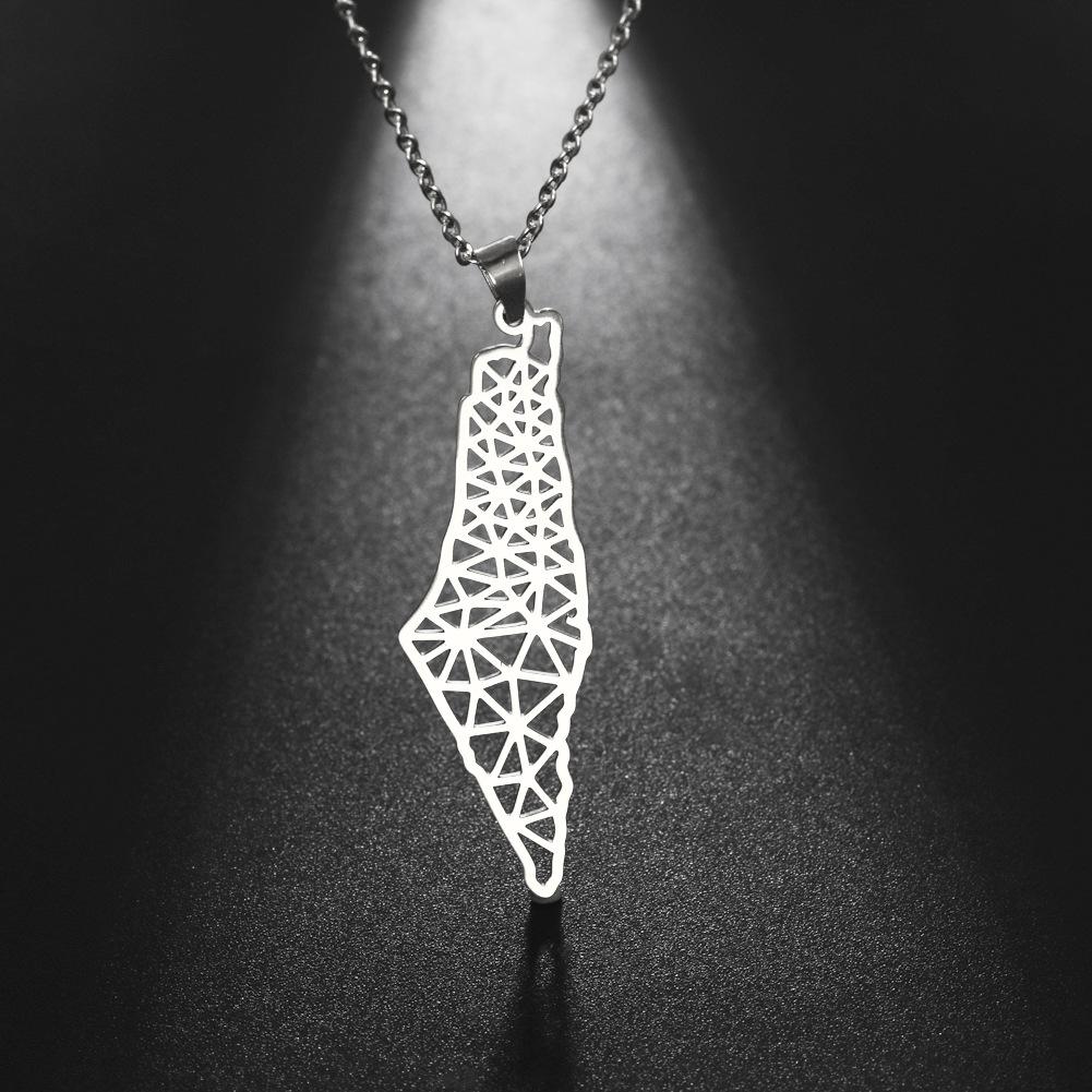 Collar y pendientes de gran venta en Europa y América, accesorios de joyería DIY con patrón de triángulo hueco, colgante con mapa de Israel