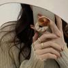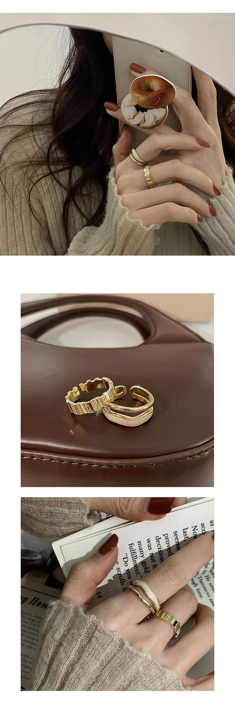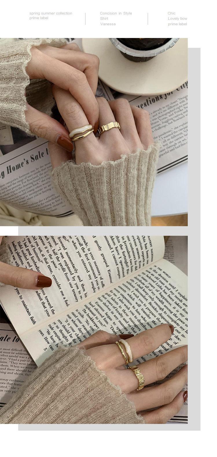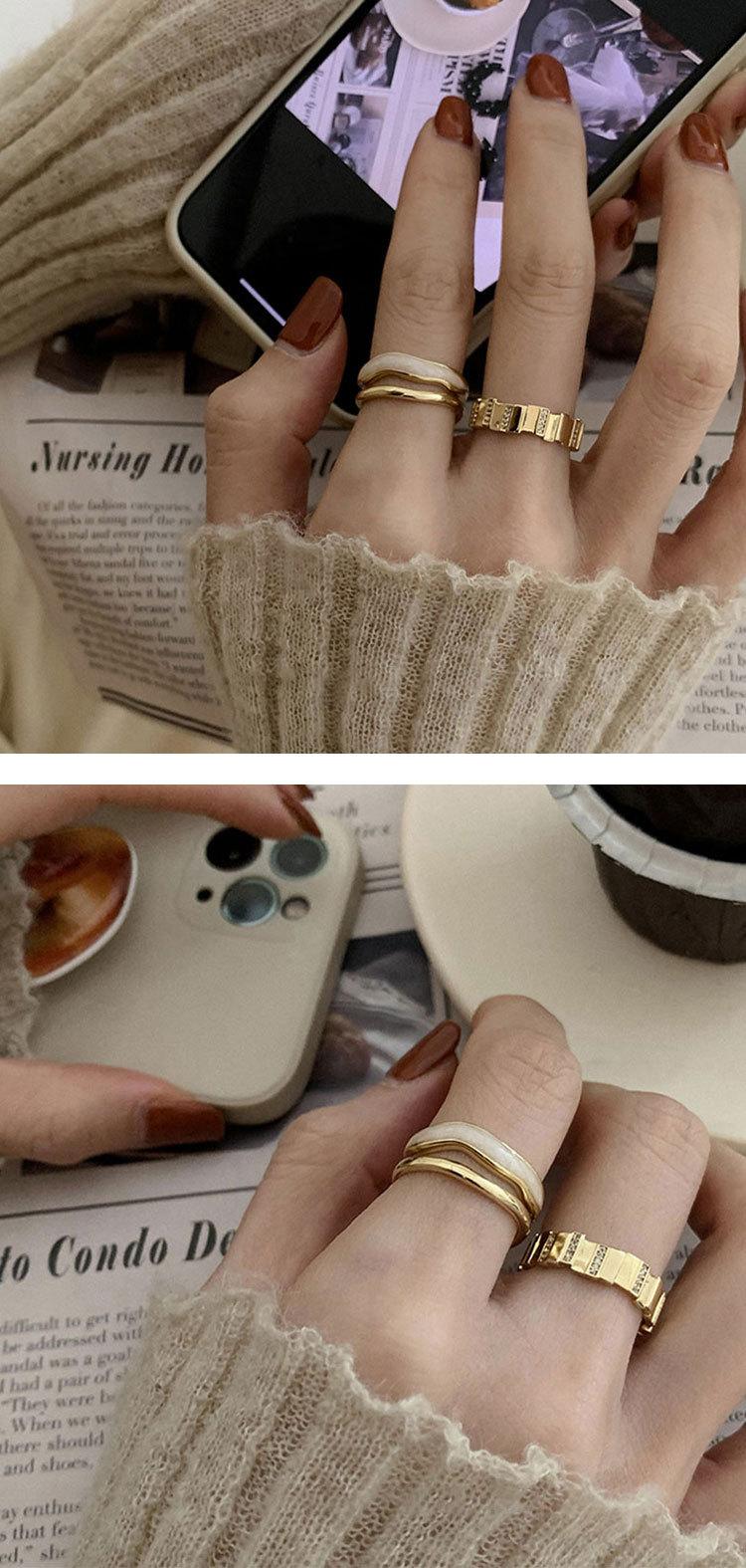 Anillo de Línea Multicapa Estilo Coreano para Mujer Retro Simple Geométrico Irregular Nácar Blanco Doble Capa Diseño Nicho