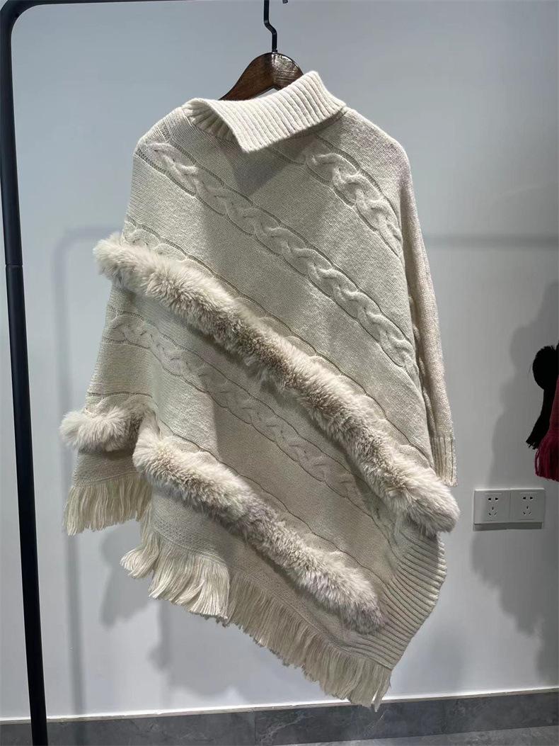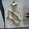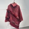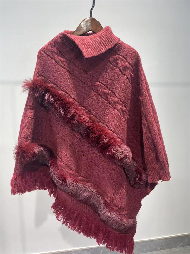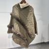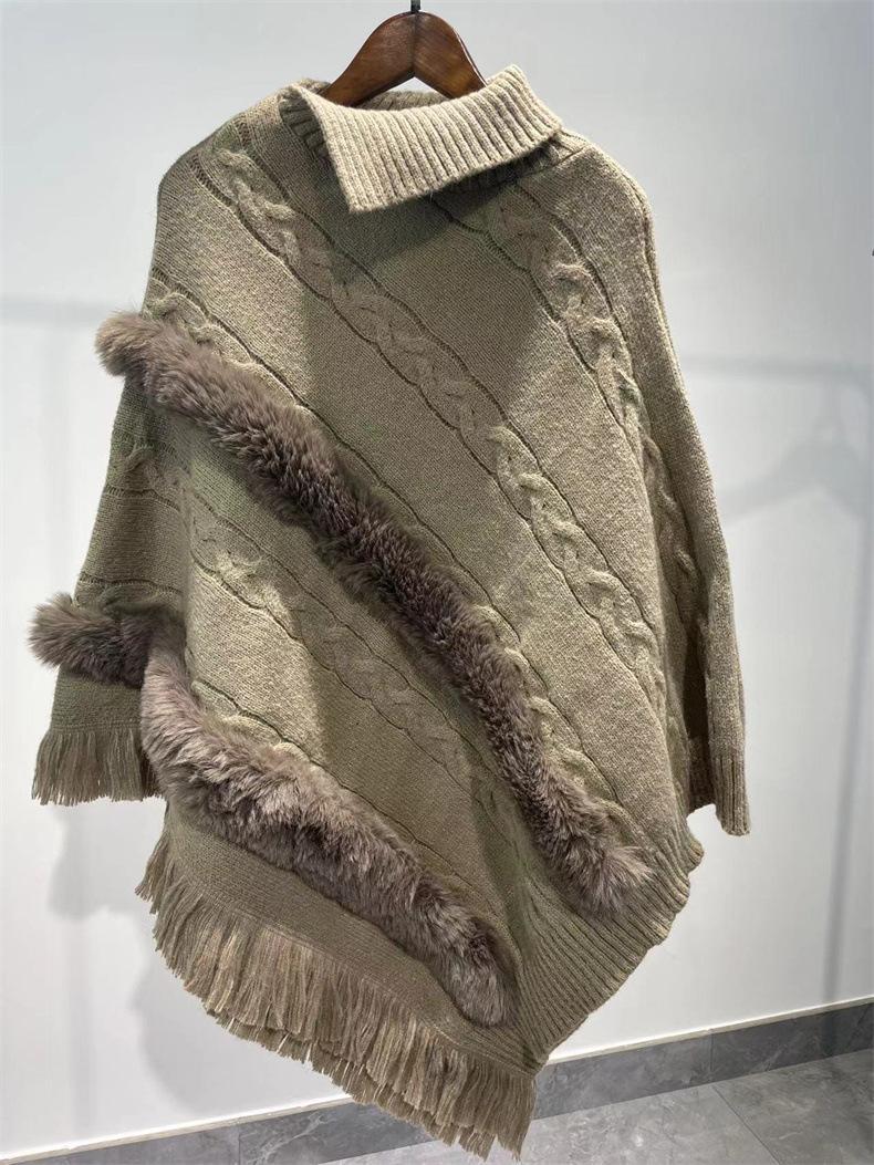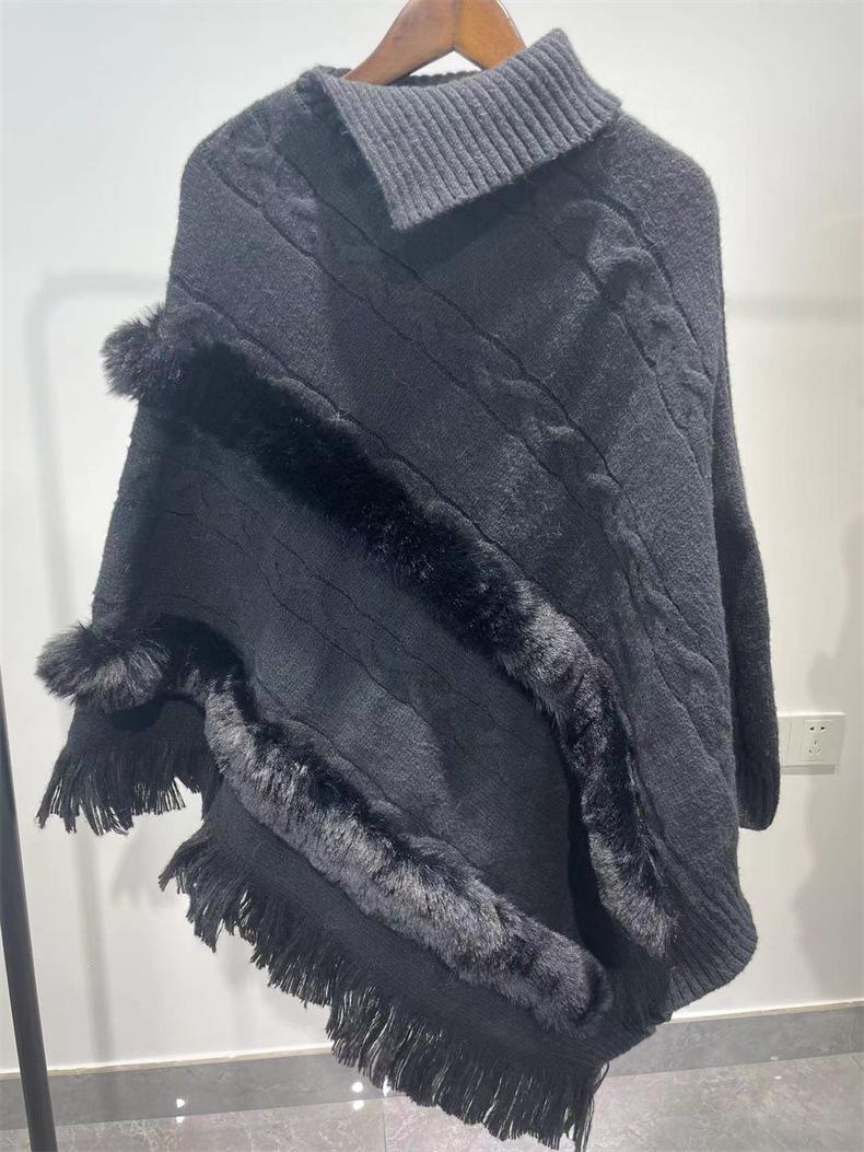 Chal transfronterizo europeo y americano para mujer, bufanda de otoño e invierno, capa, suéter, moda, doble capa, borde de piel, borla, chal, poncho