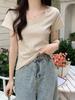 Camiseta de Verano 2025 con Cuello U para Mujer, Manga Corta, Corte Ajustado, Algodón Puro, Combinación Versátil, Casual, Interior, Top con Escote Clavicular