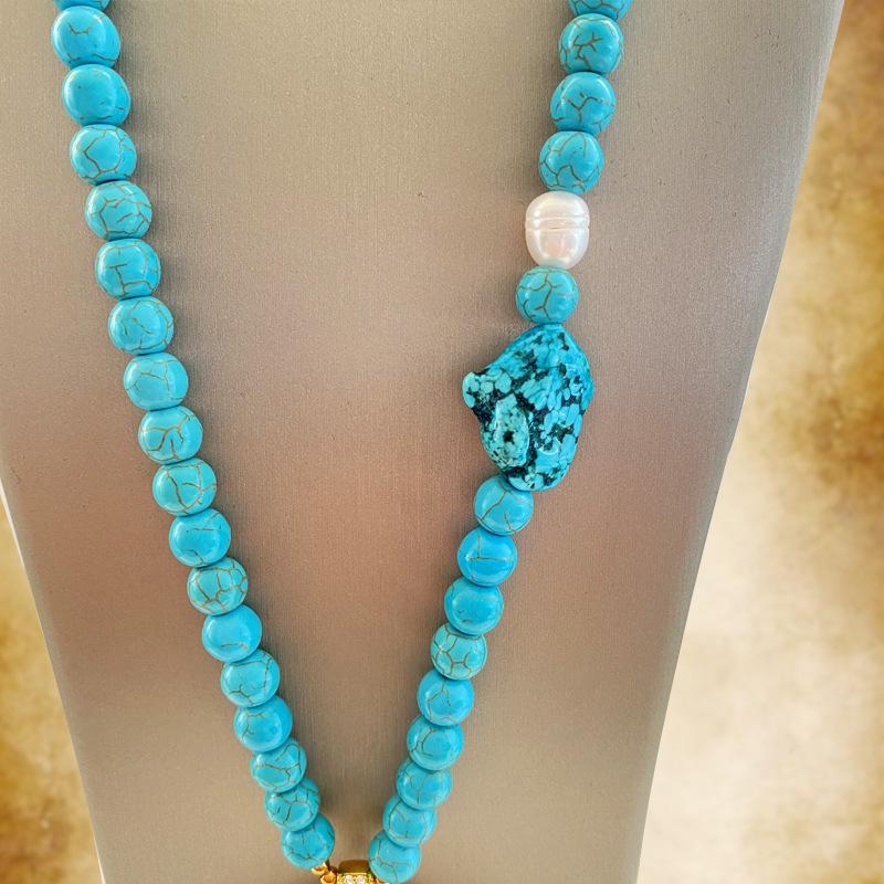 Collar de Cadena de Lana Turquesa Dabu Cadena de Perlas Moda Moderna para Mamá Explosiones de Tiktok
