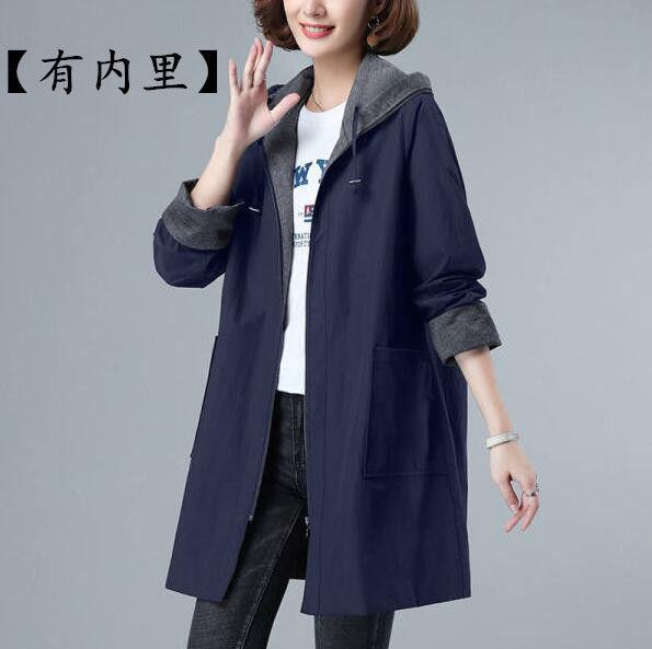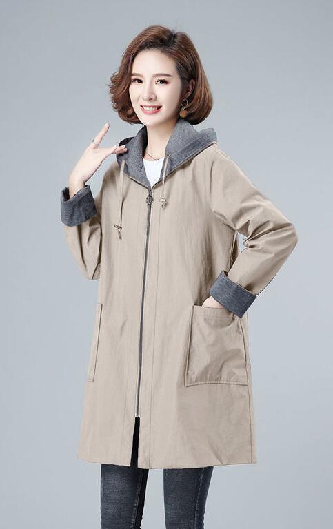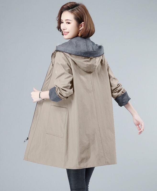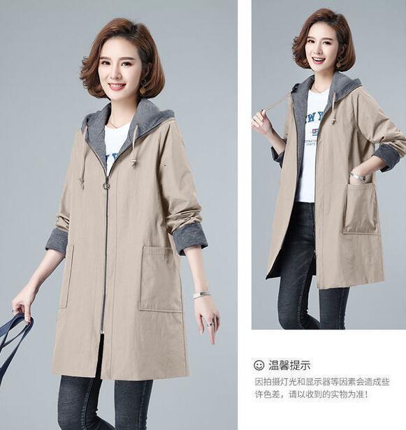 Gabardina de longitud media con capucha para mujer con forro, talla grande para mujer, holgada, casual, que combina con todo, abrigo de primavera y otoño