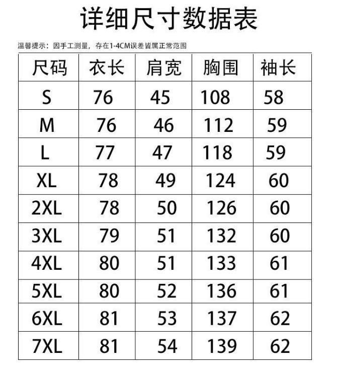 M, L, XL, 2XL, 3XL, 4XL, 5XL, 6XL, 7XL