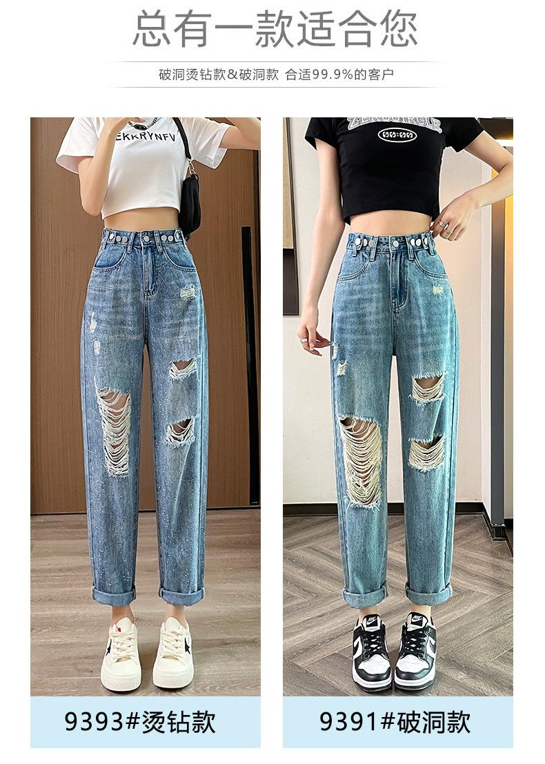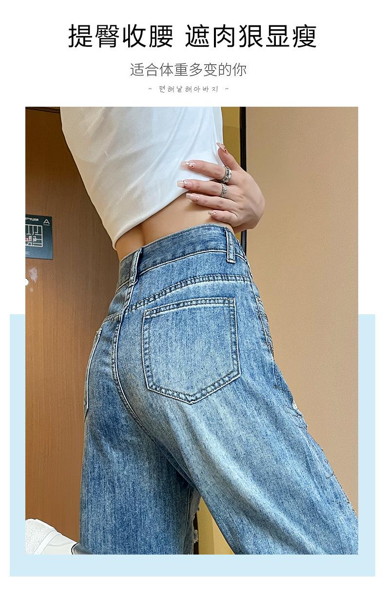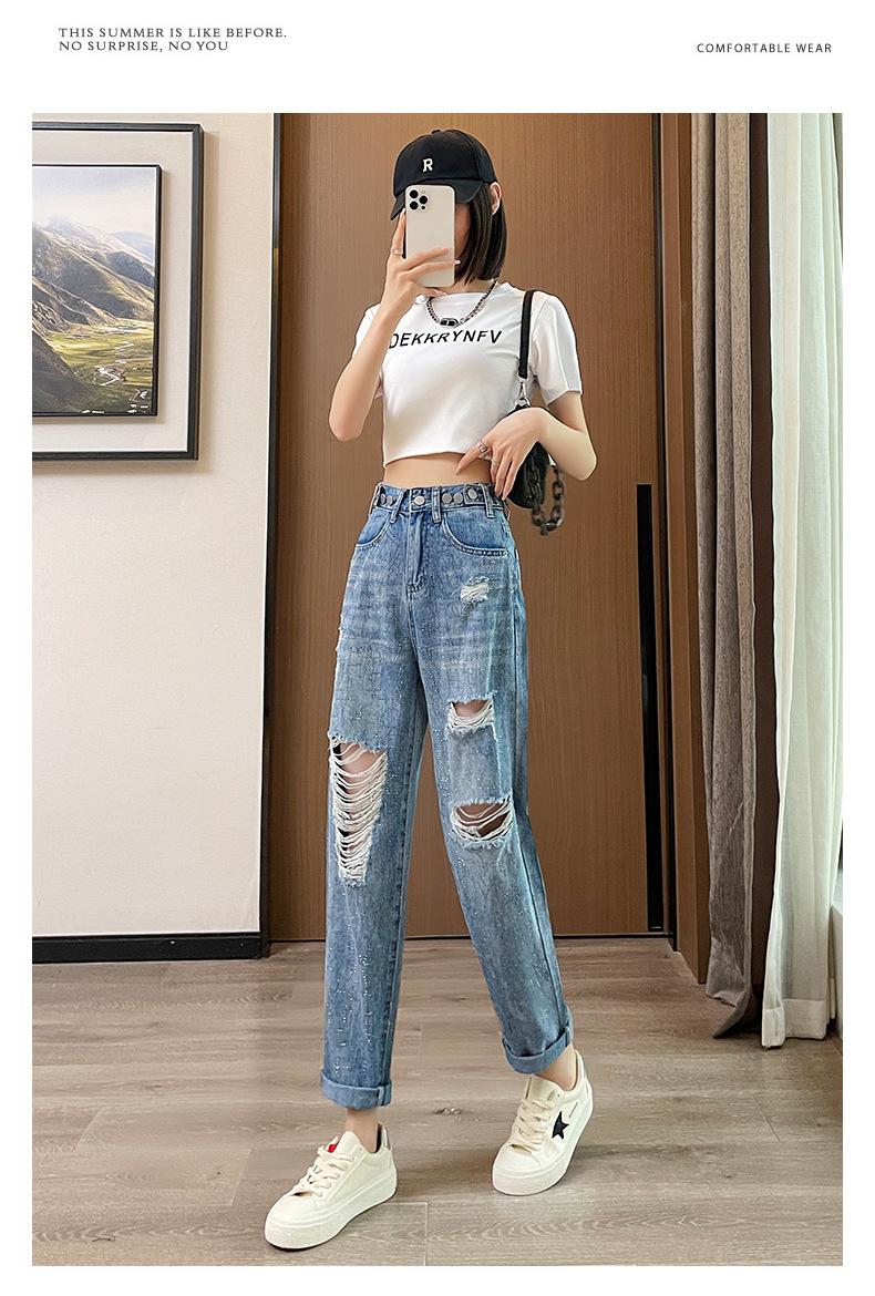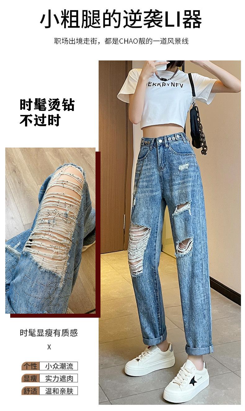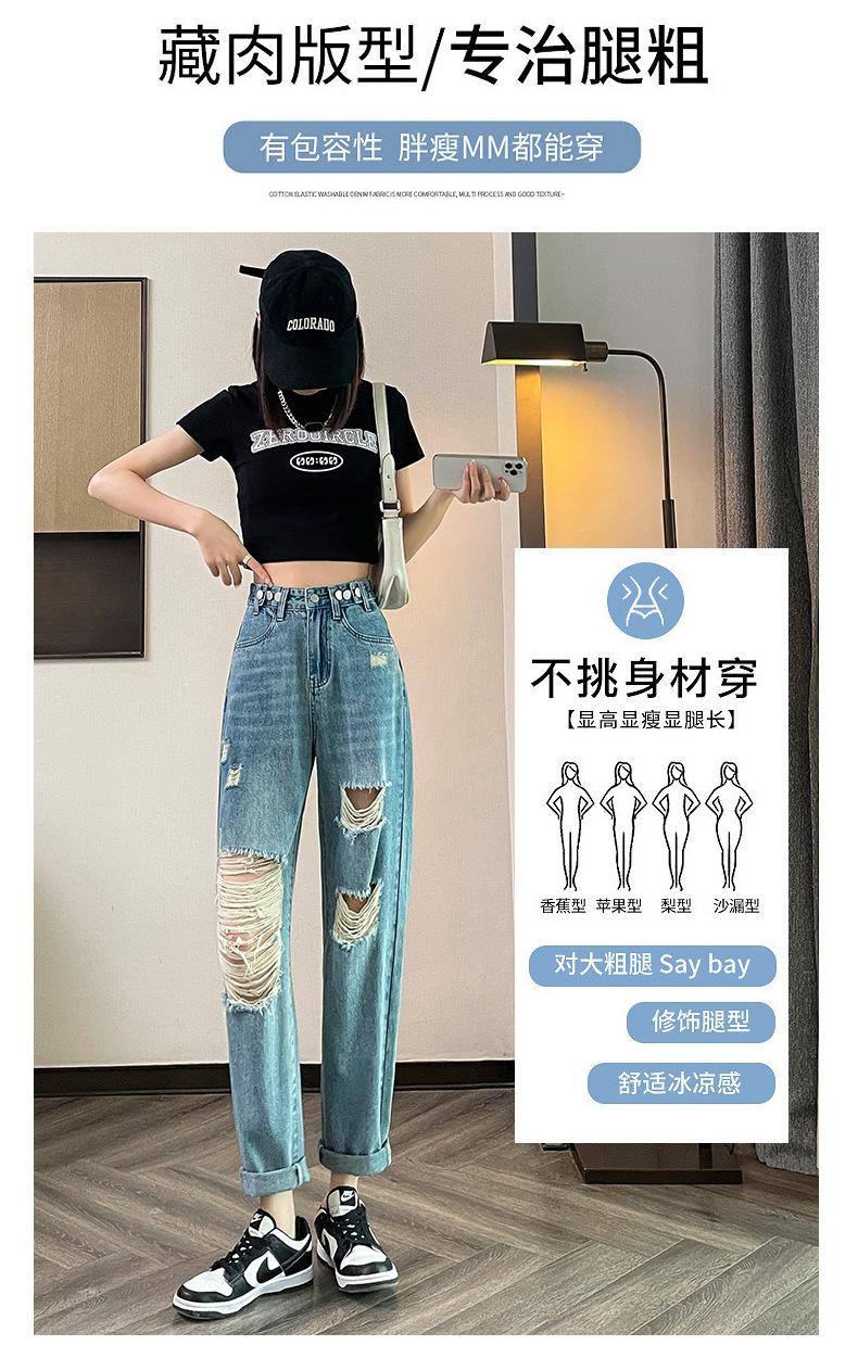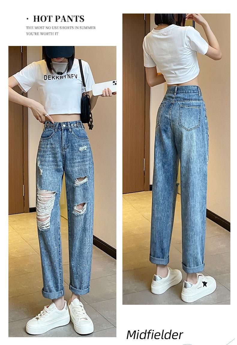 Pantalones vaqueros rasgados con perforación en caliente para mujer, verano 2023, nuevos, finos, adelgazantes, sueltos, de cintura alta, rectos, para mujer.