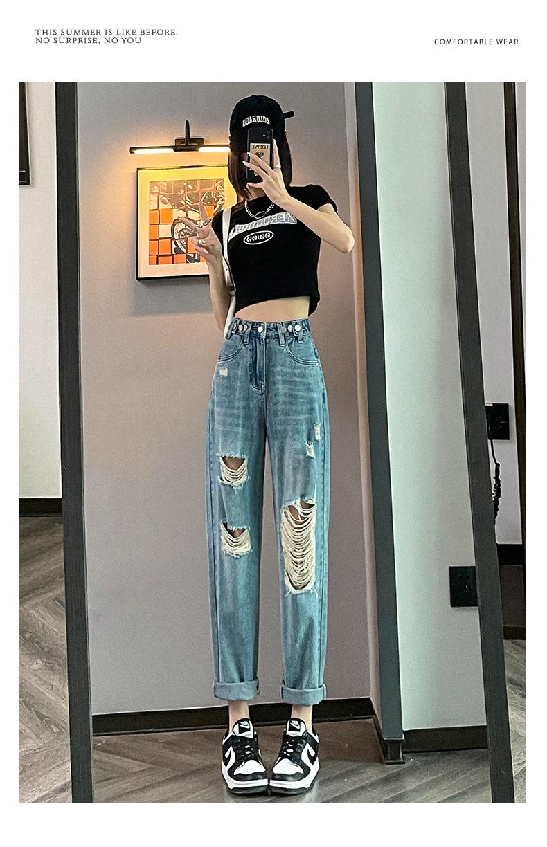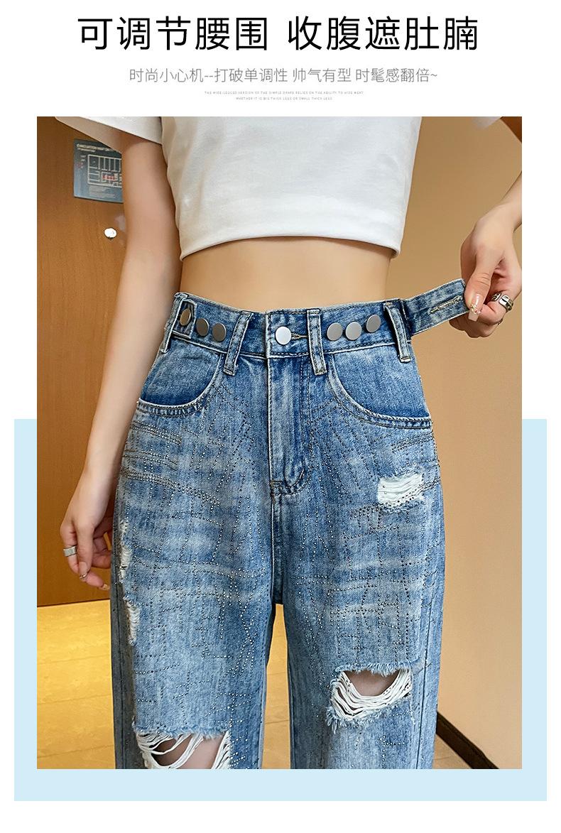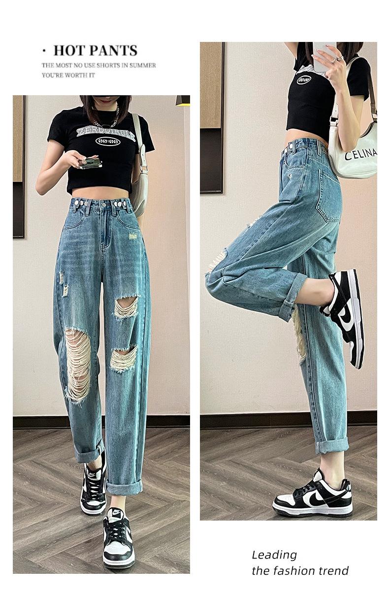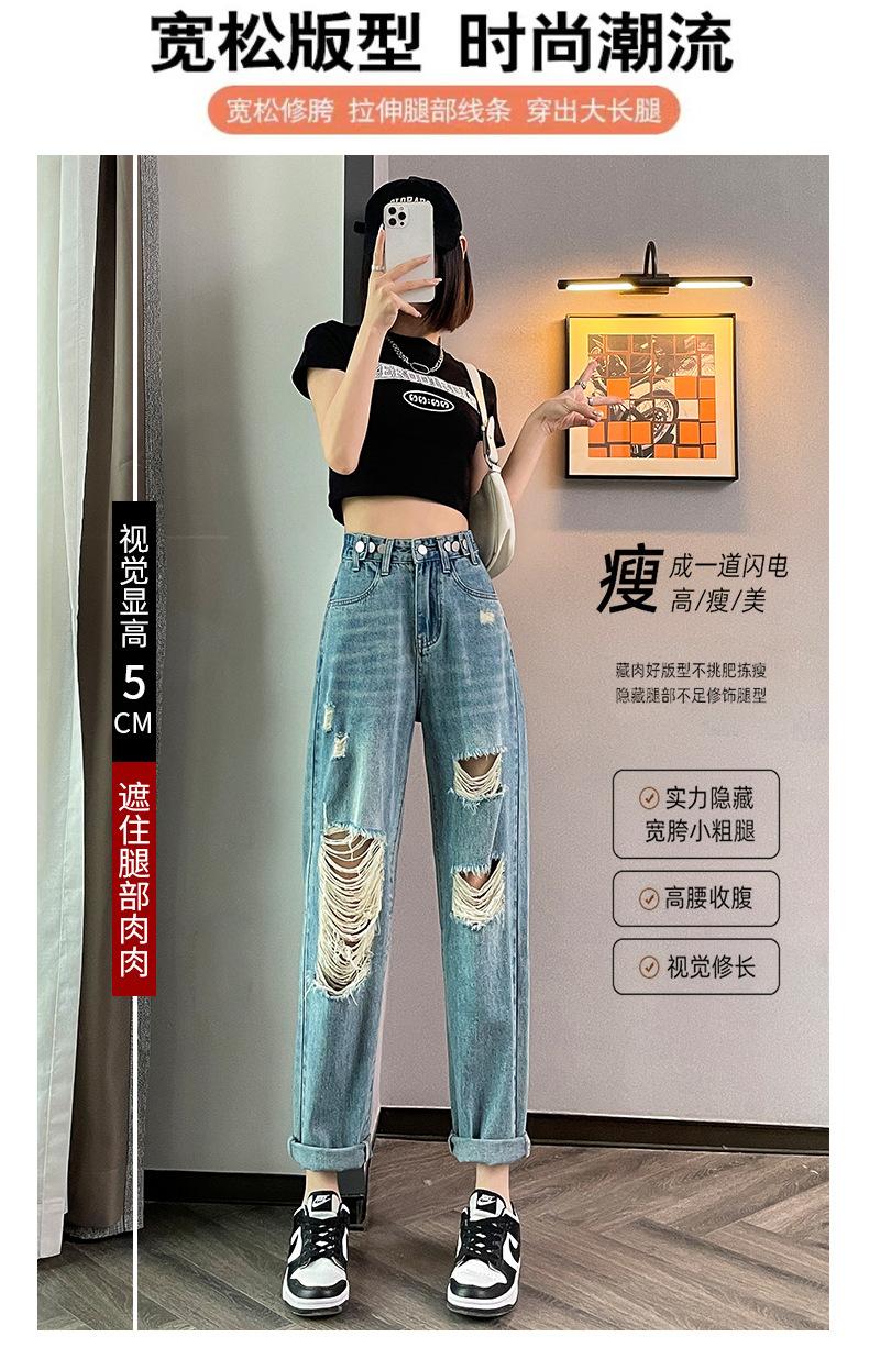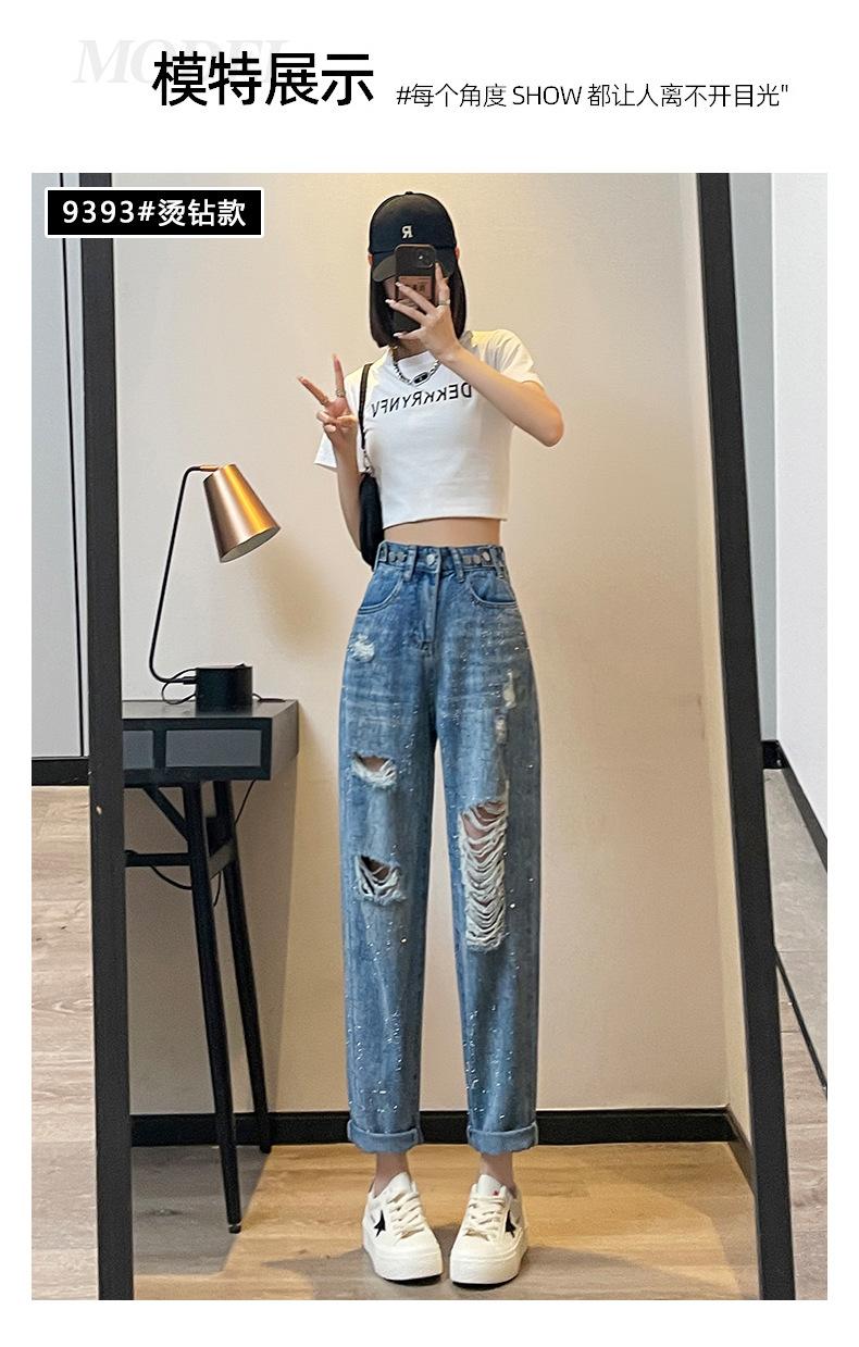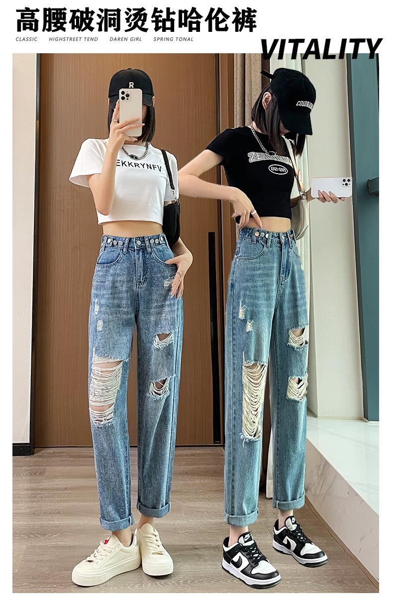 Pantalones vaqueros rasgados con perforación en caliente para mujer, verano 2023, nuevos, finos, adelgazantes, sueltos, de cintura alta, rectos, para mujer.