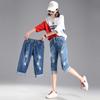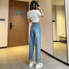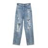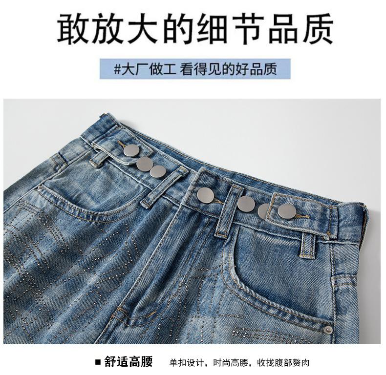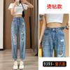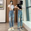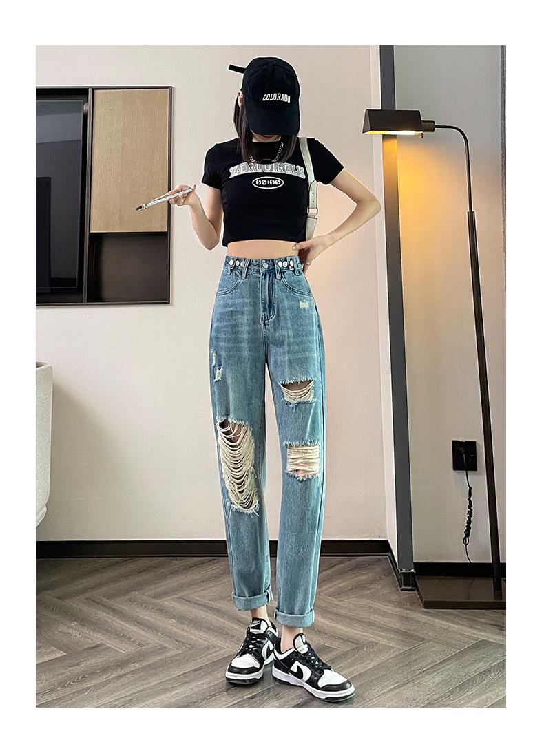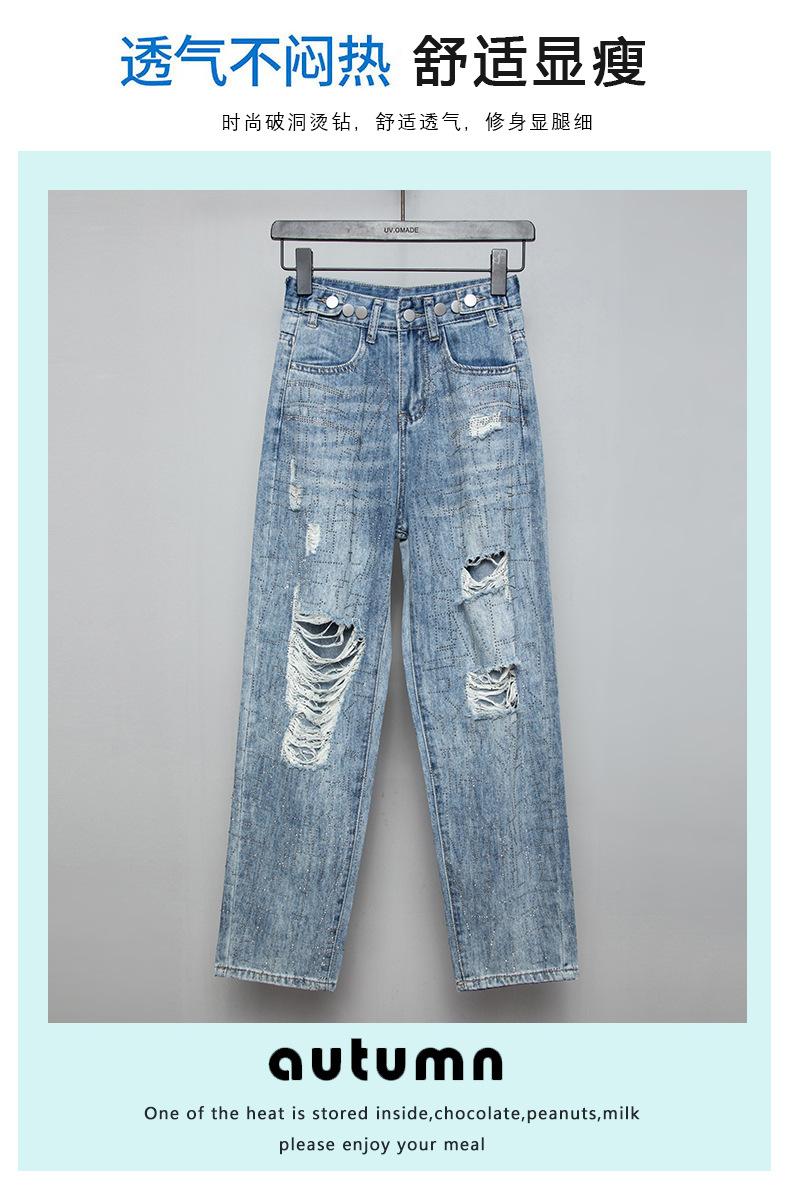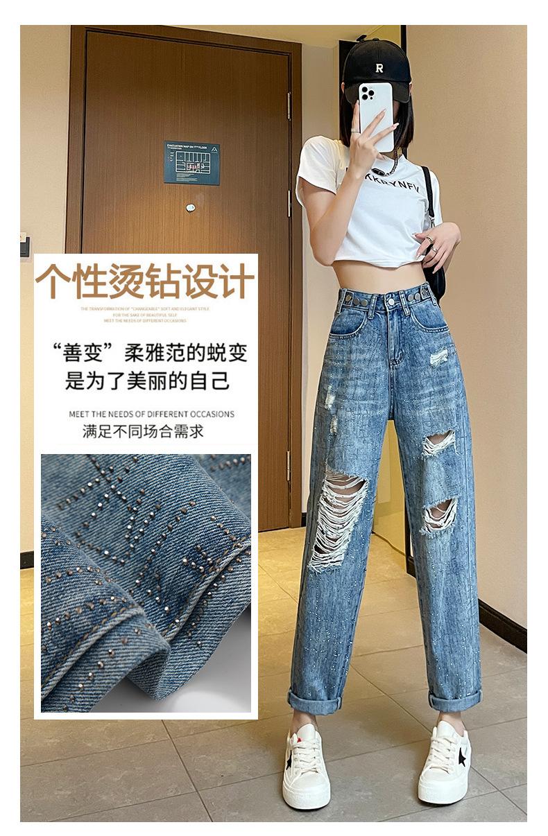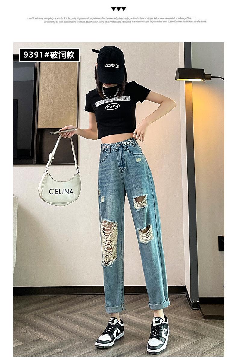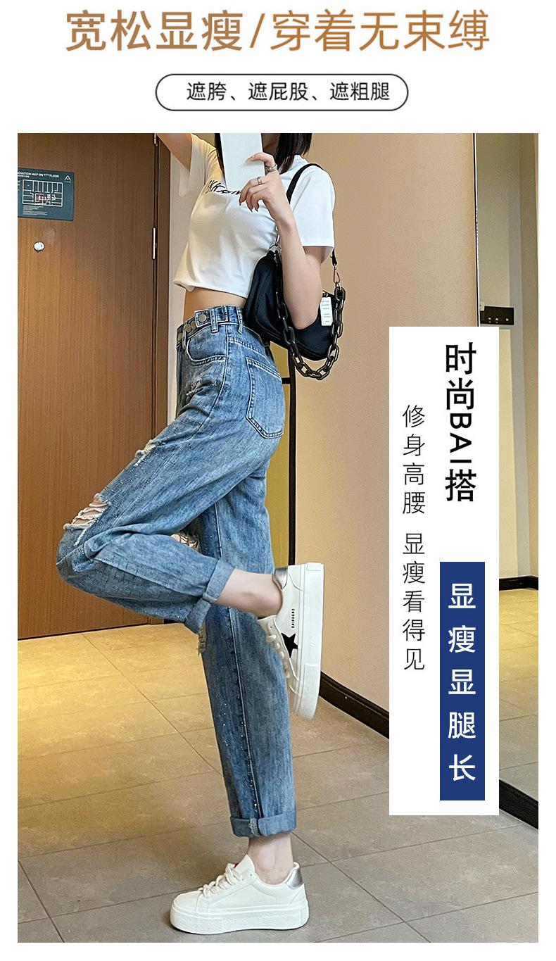 Pantalones vaqueros rasgados con perforación en caliente para mujer, verano 2023, nuevos, finos, adelgazantes, sueltos, de cintura alta, rectos, para mujer.