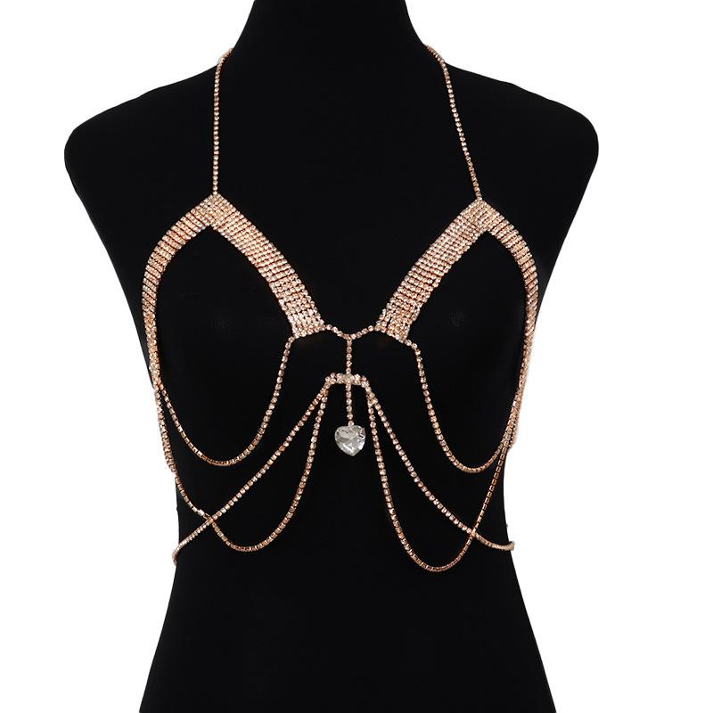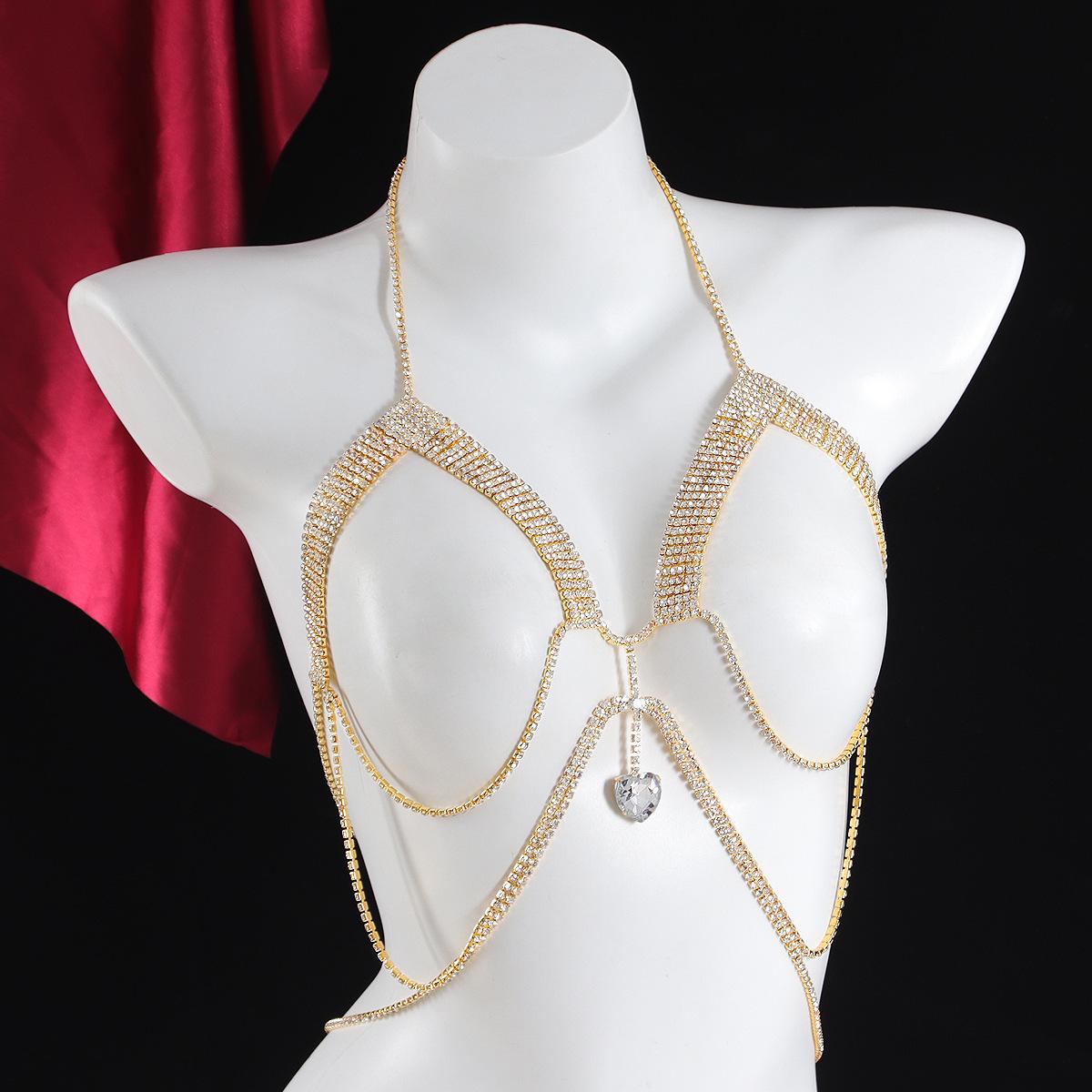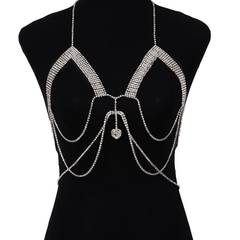 Cadena de sujetador con diamantes de imitación de moda transfronteriza entre Europa y Estados Unidos, cadena de cuerpo con borlas de diamantes sexy para discoteca, cadena de joyería para ropa
