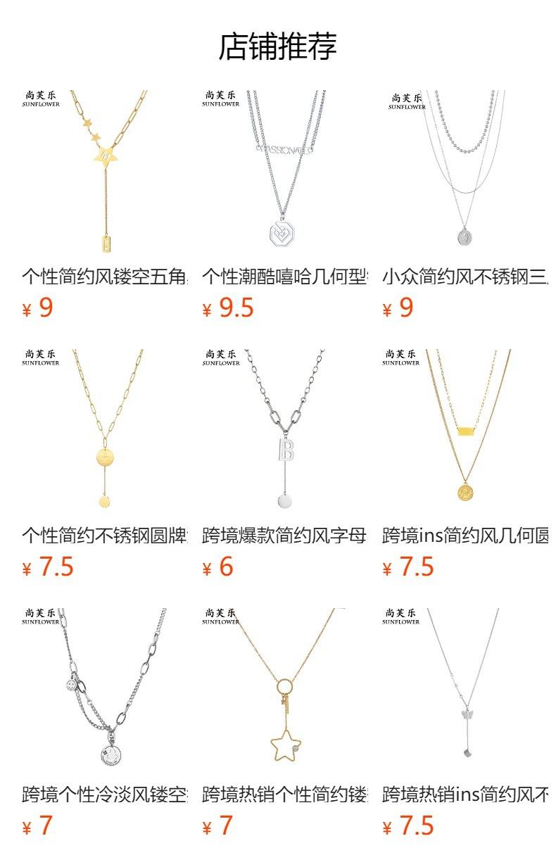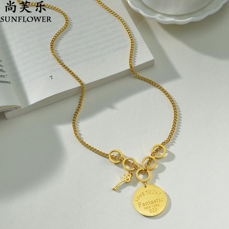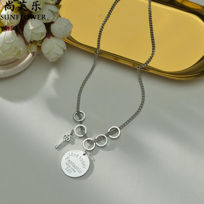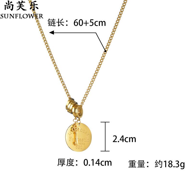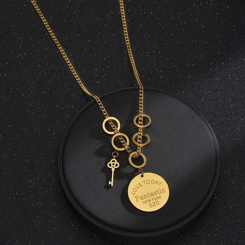 Collar con colgante de llave redonda y letra de acero inoxidable transfronterizo para mujer, cadena de clavícula sencilla y combinable.