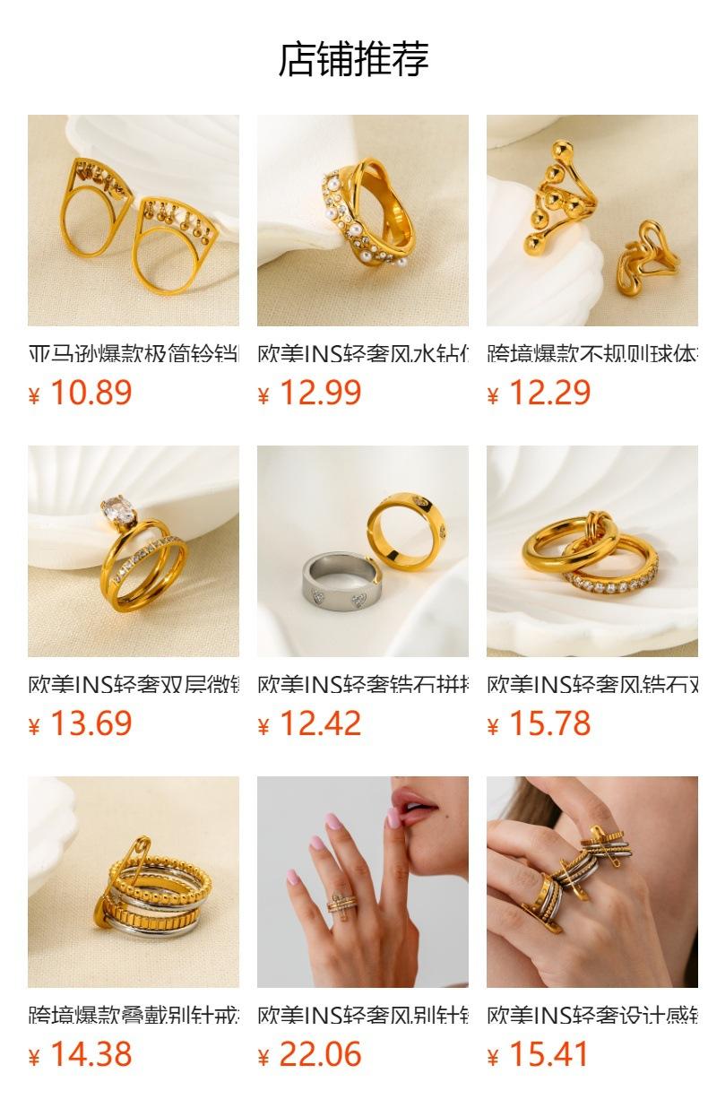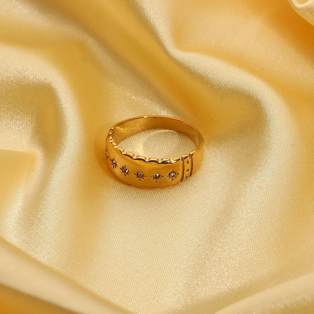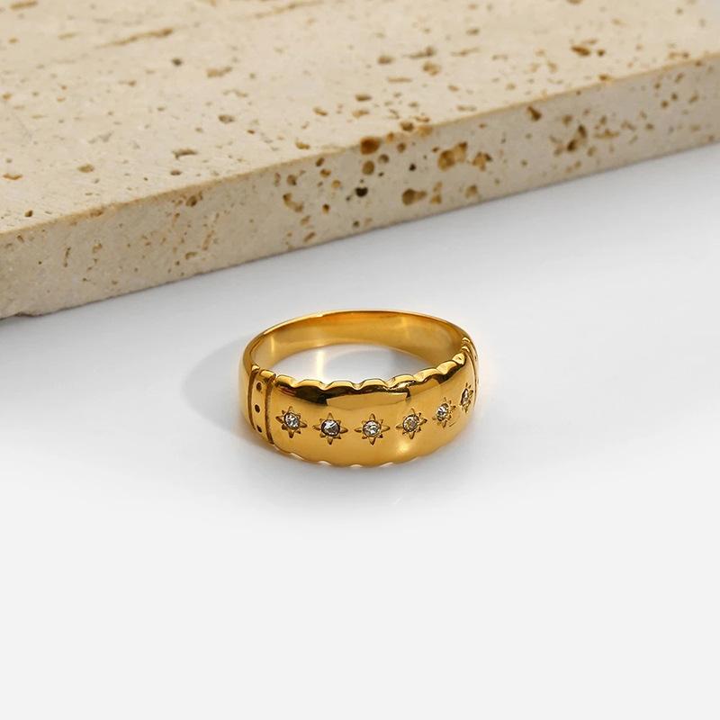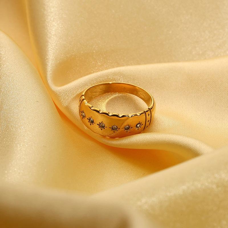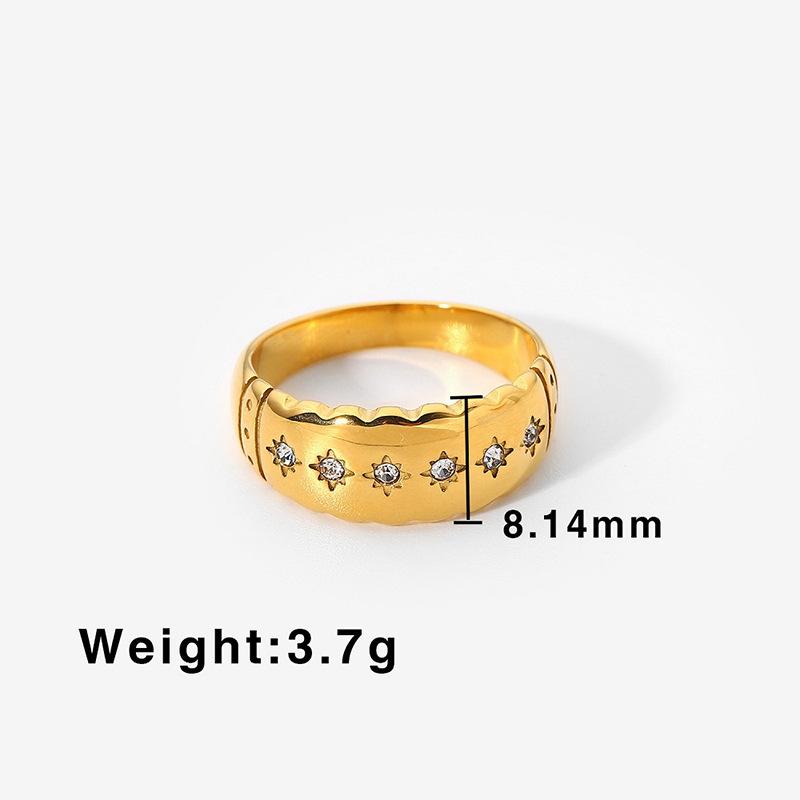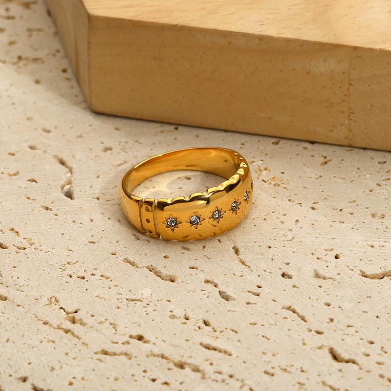 Anillo de Diamantes Estrella Estilo Ins Transfronterizo Europeo y Americano Oro de 18K Acero Inoxidable Versátil Moderno Impermeable No Se Desvanece Diamante Femenino