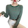 Ropa Coreana Camiseta de Manga Larga a Rayas para Mujer 2025 Nueva Algodón Interior Camiseta Base Estilo Delgado Primavera Temprana y Otoño