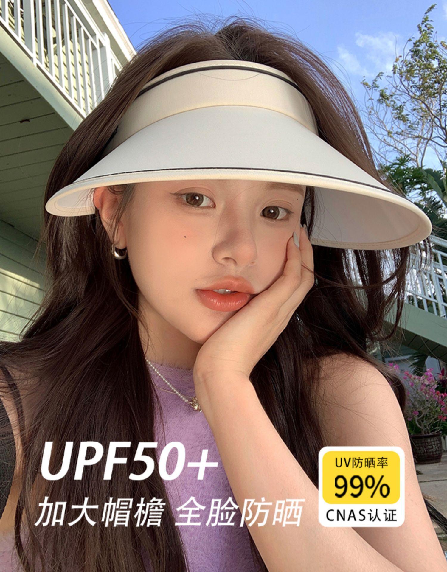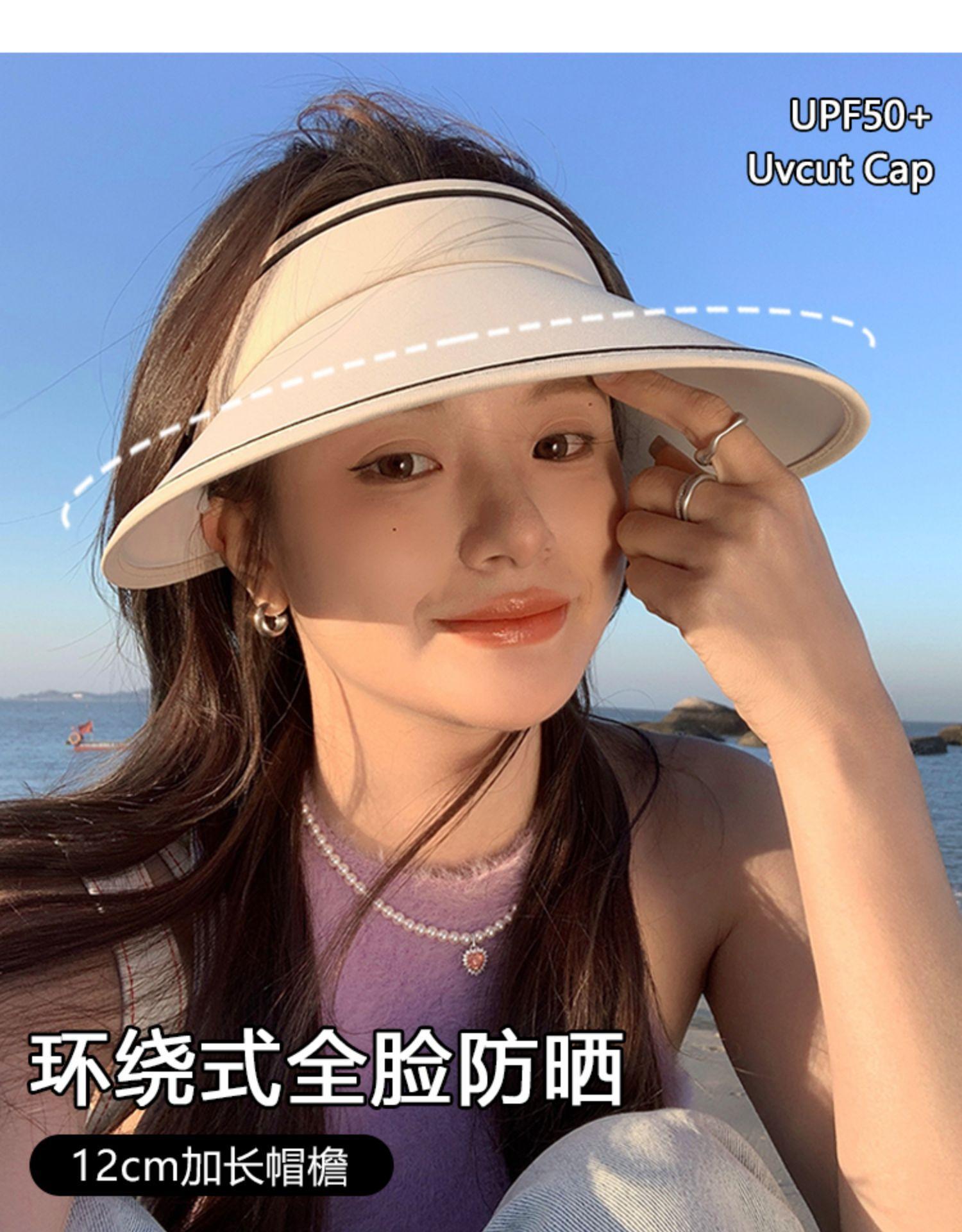 Sombrero de sol vacío con parte superior para mujer, de verano, con protección UV, para ciclismo, de ala grande, 2023