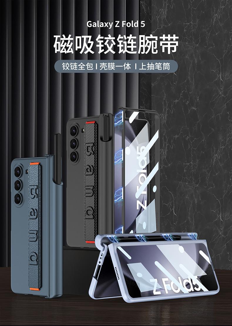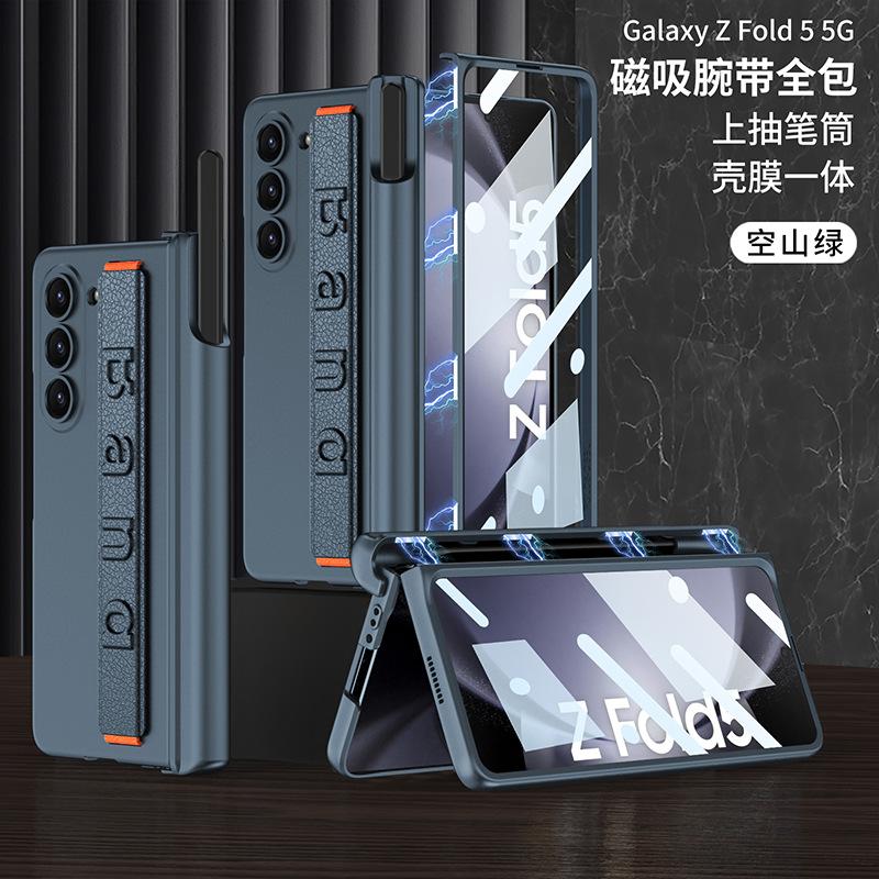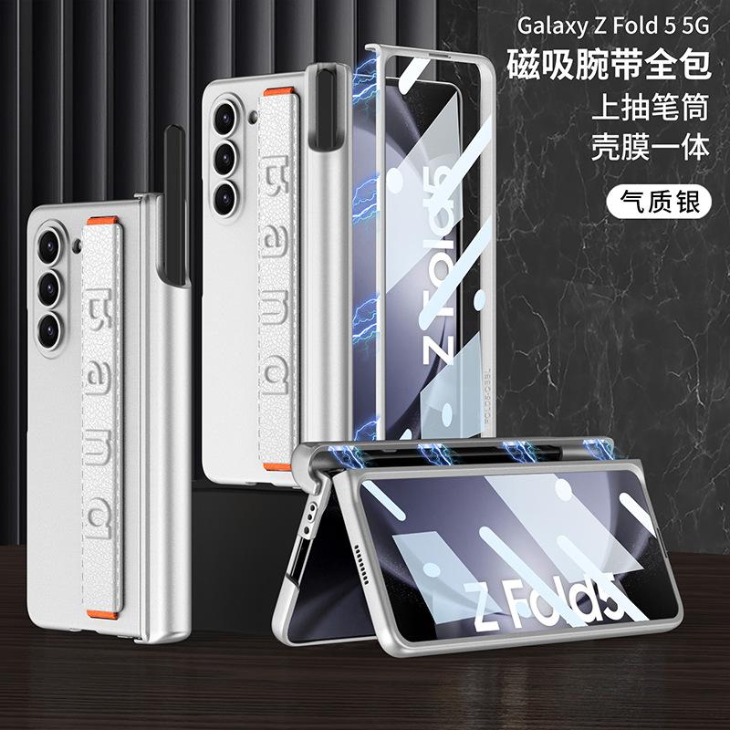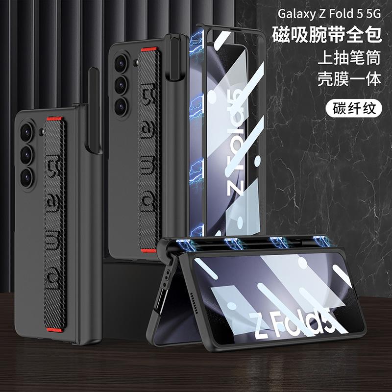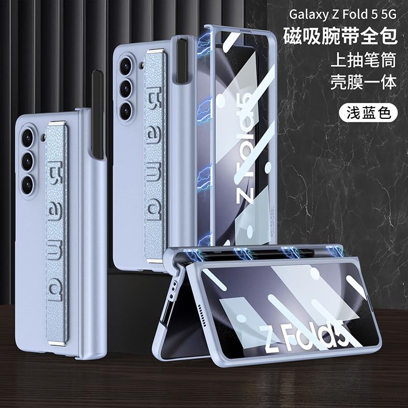 Para Samsung Zfold5 Funda Magnética Todo Incluido para Teléfono z Fold5 Soporte para Lápiz Cubierta Protectora Pulsera Película Estuche Integrado
