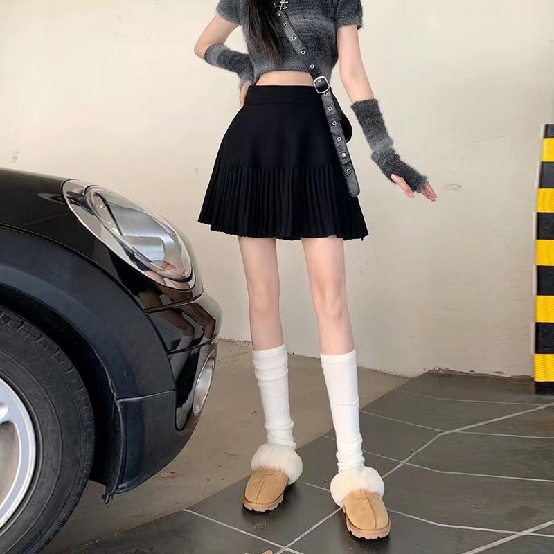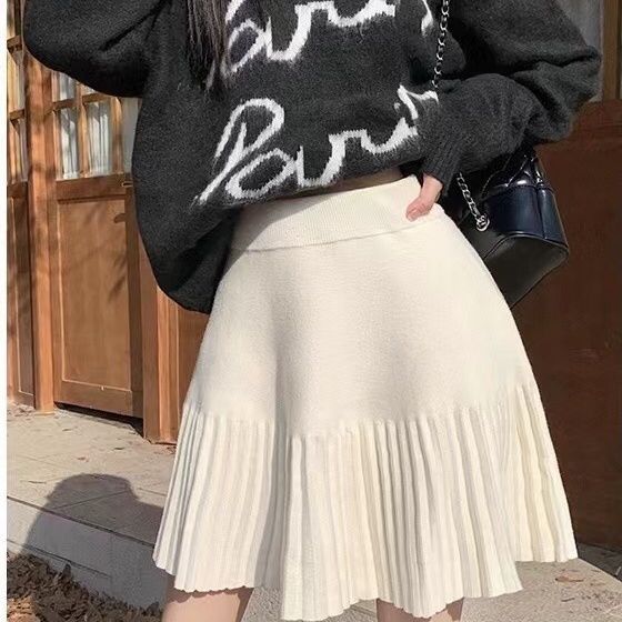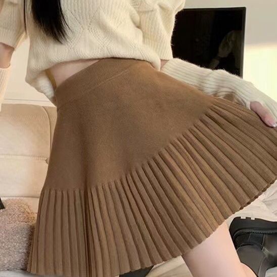 Falda plisada de punto con borde cruzado, falda de primavera y otoño, falda pequeña de alta gama para mujer, falda ajustada de cintura alta en forma de A