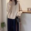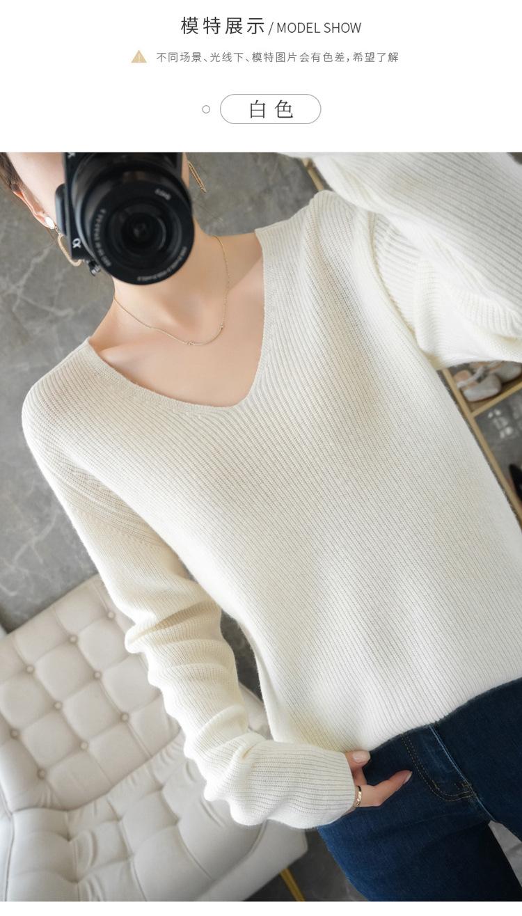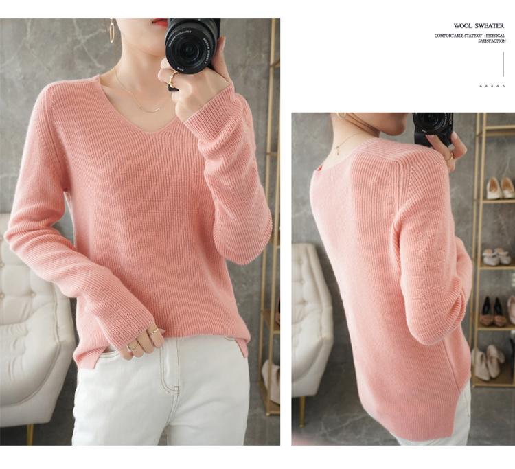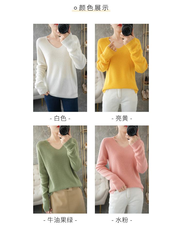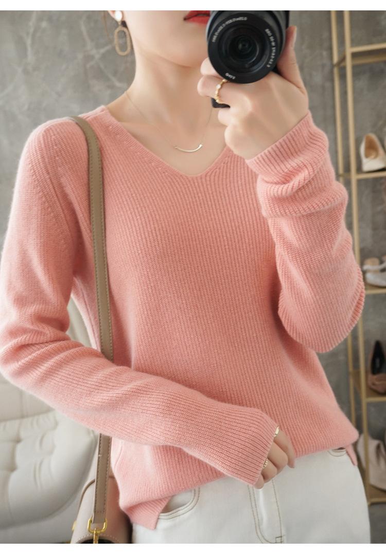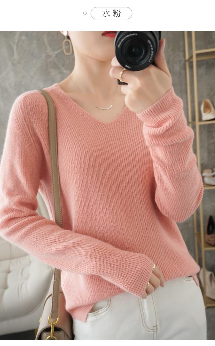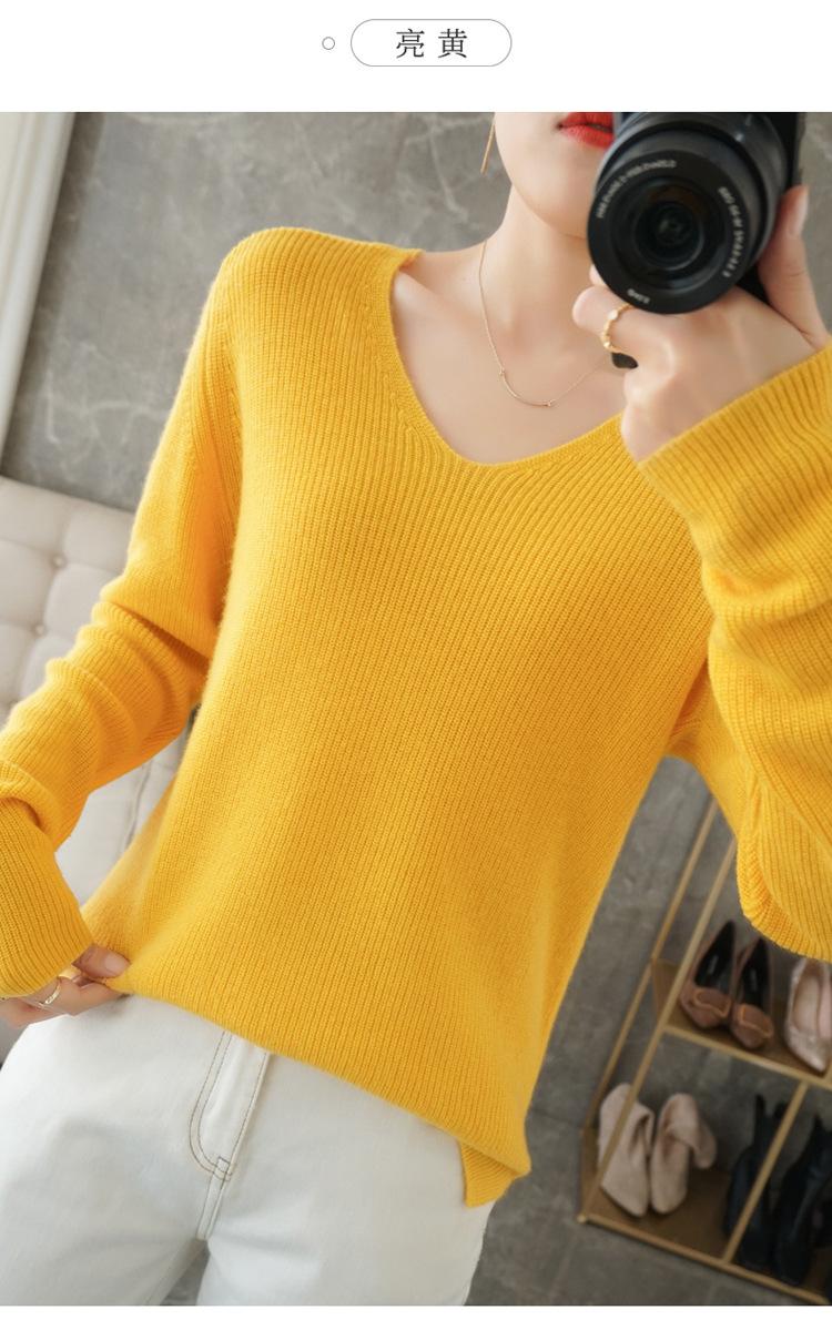 Suéter de lana con cuello en V para mujer, jersey de punto holgado y moderno, camisa adelgazante de color liso.