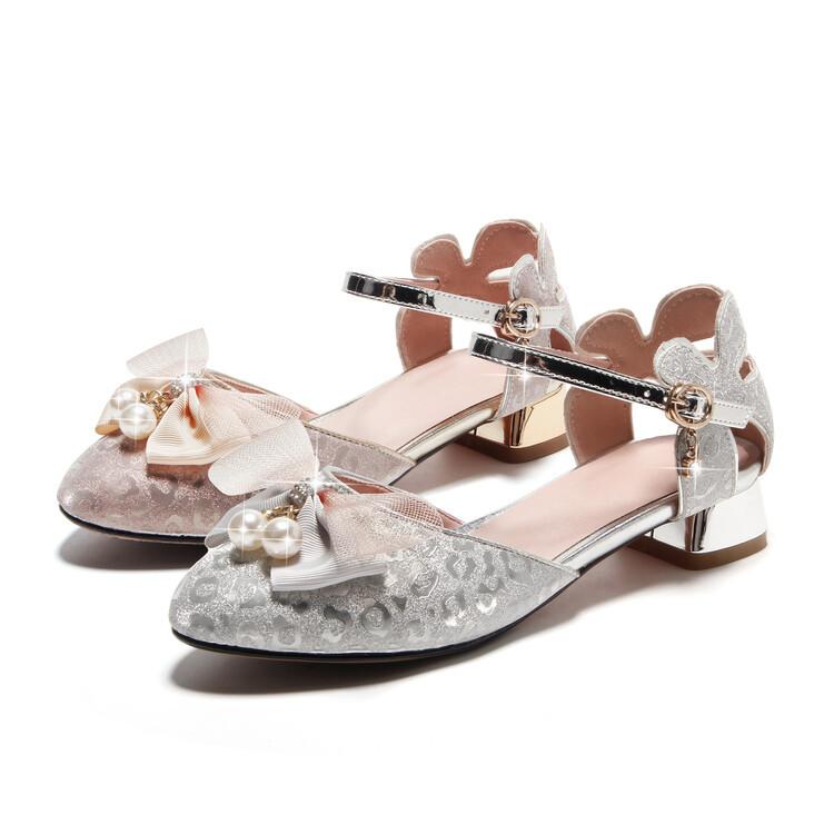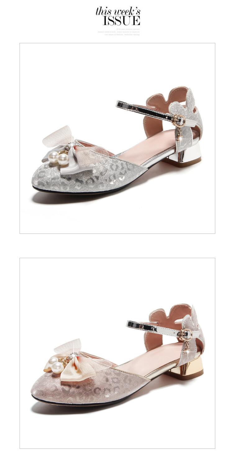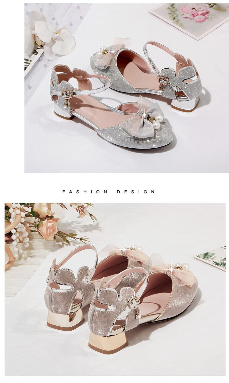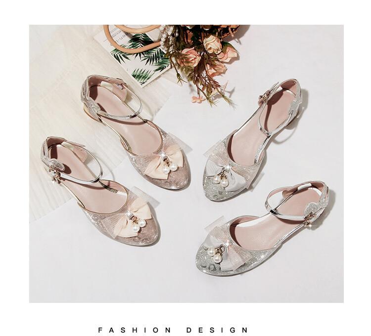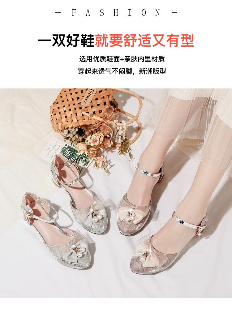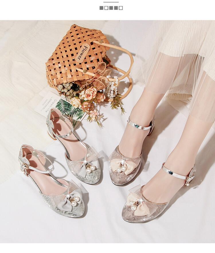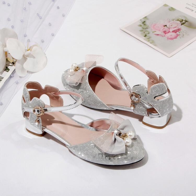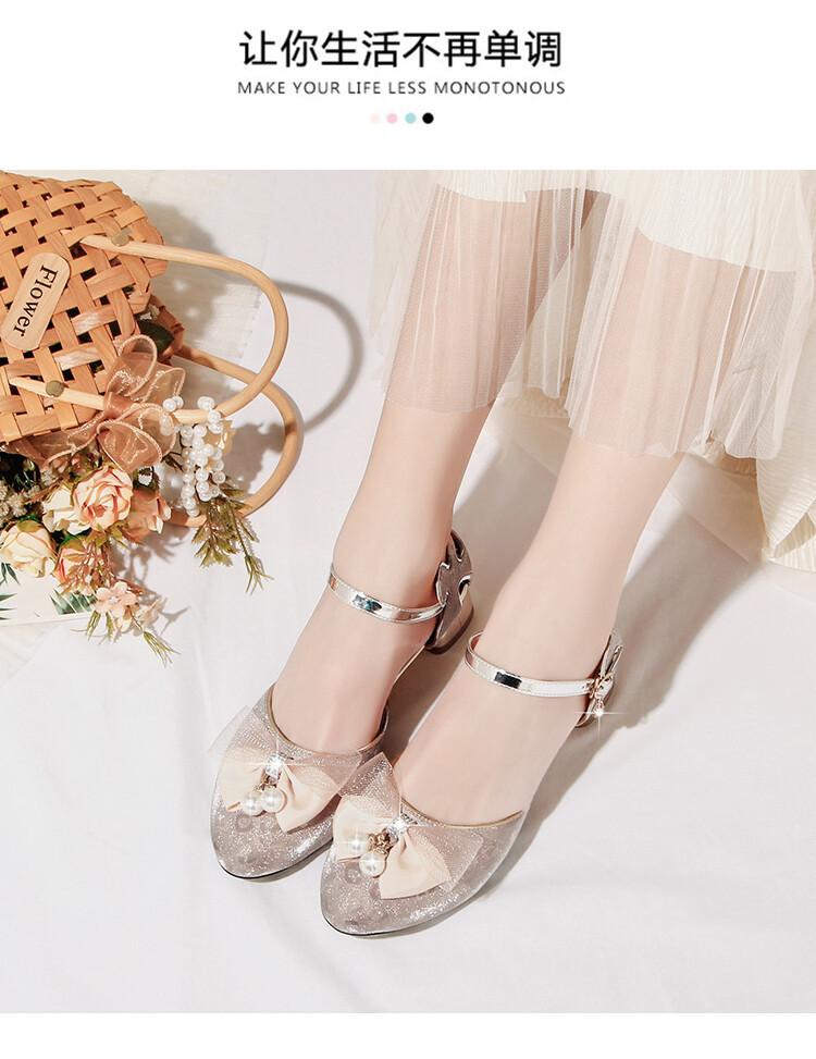 Sandalias nuevas para niñas, sandalias grandes para niños, zapatos de princesa con tacón alto y lazo, suela de goma de verano para estudiantes.