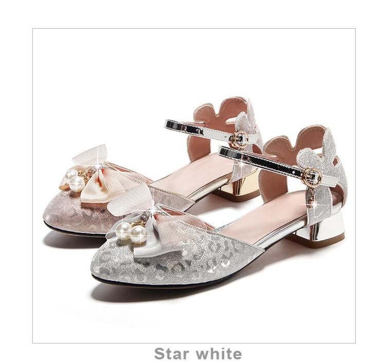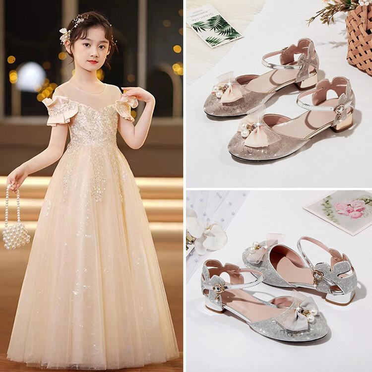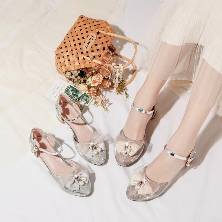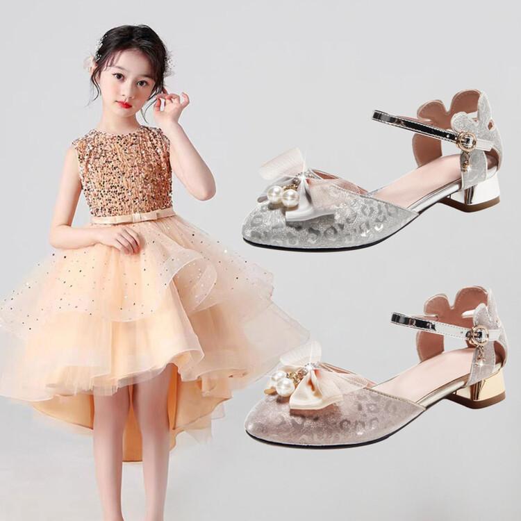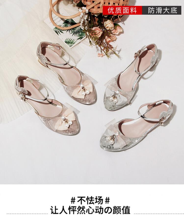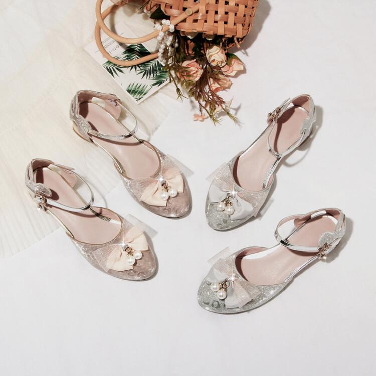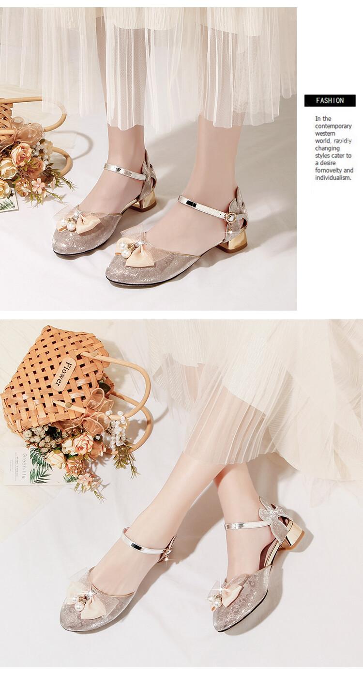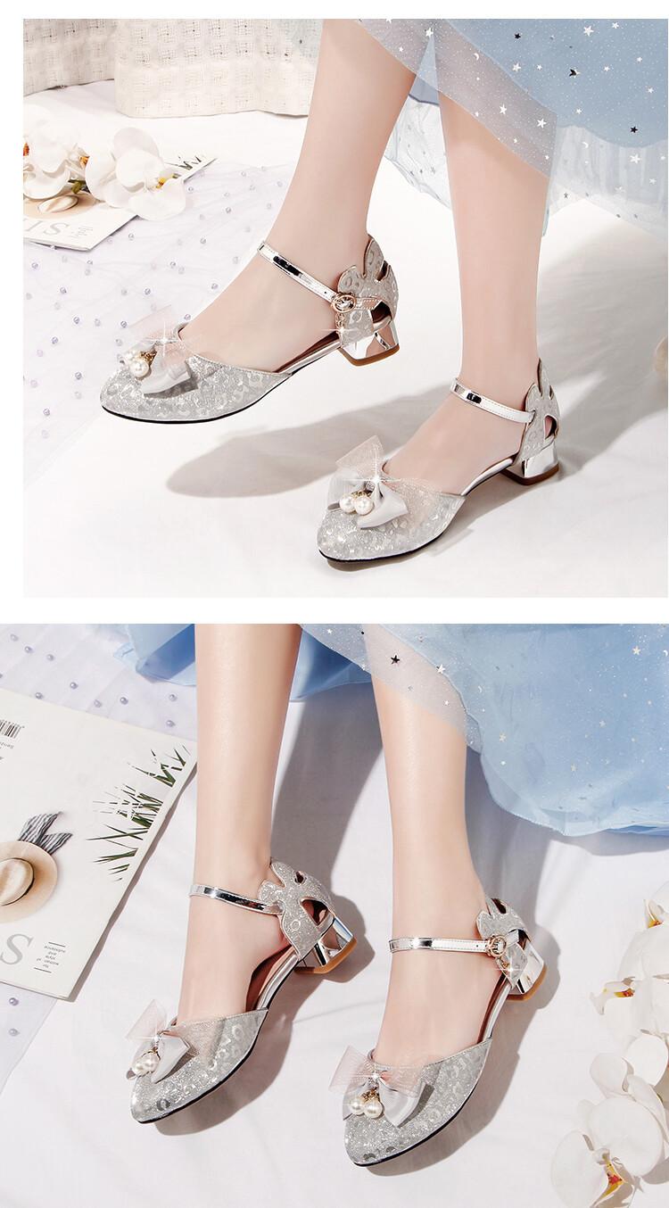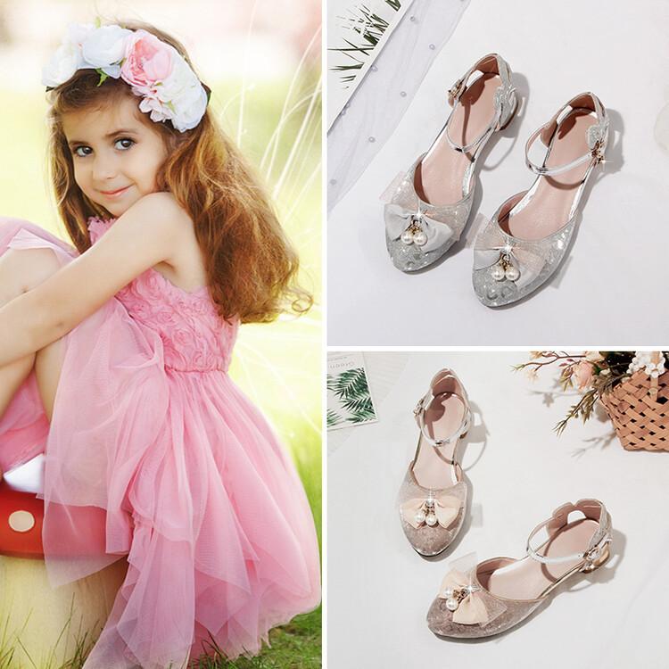 Sandalias nuevas para niñas, sandalias grandes para niños, zapatos de princesa con tacón alto y lazo, suela de goma de verano para estudiantes.