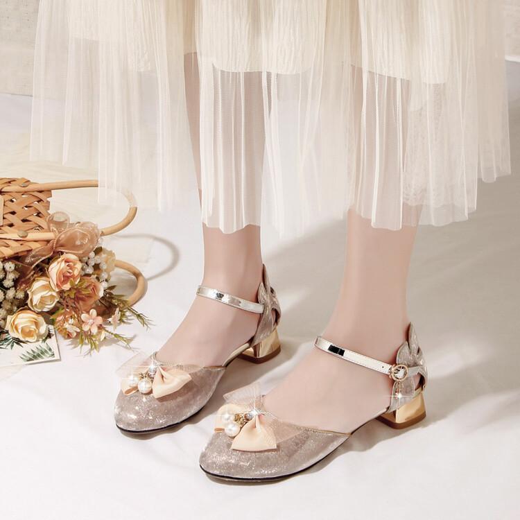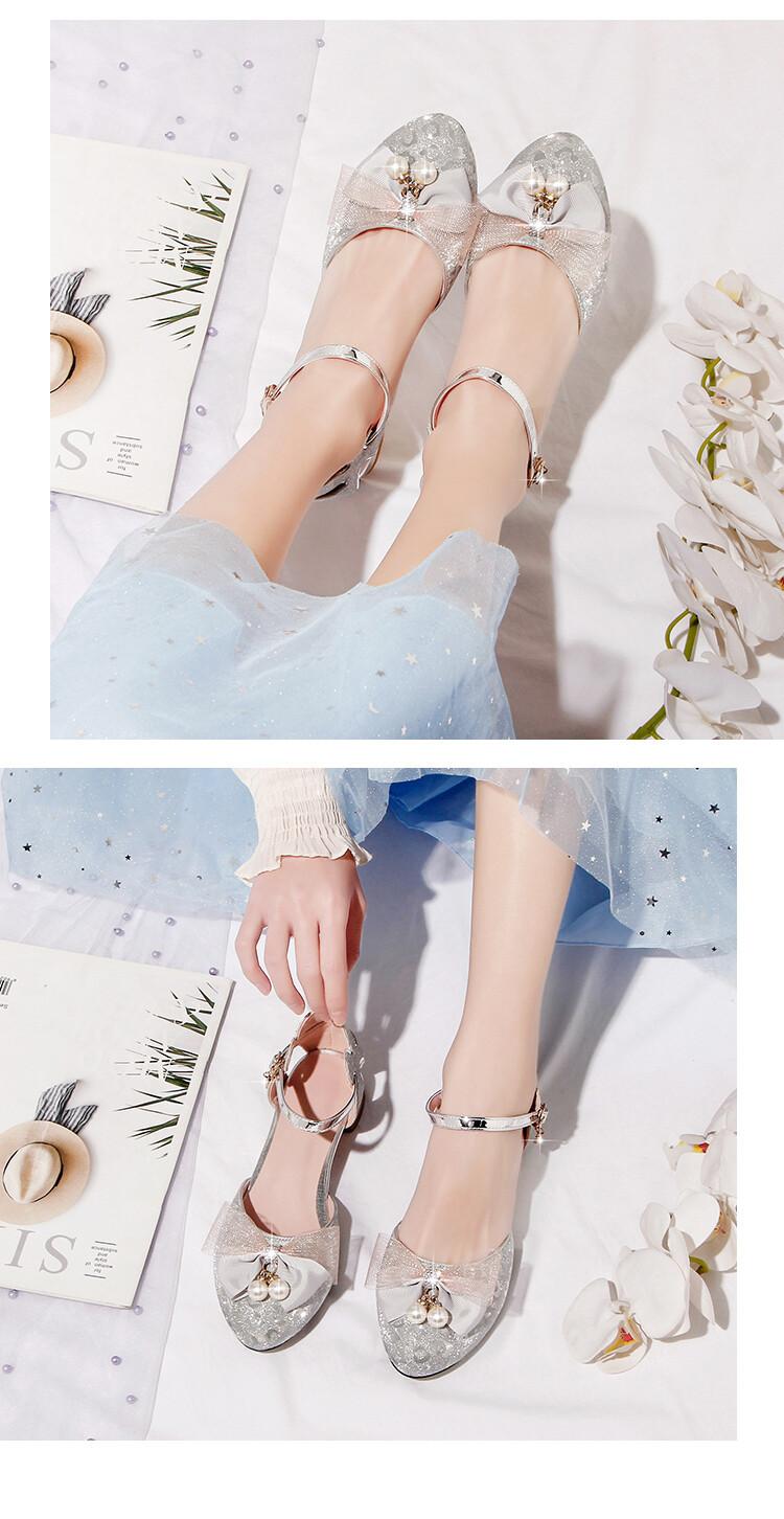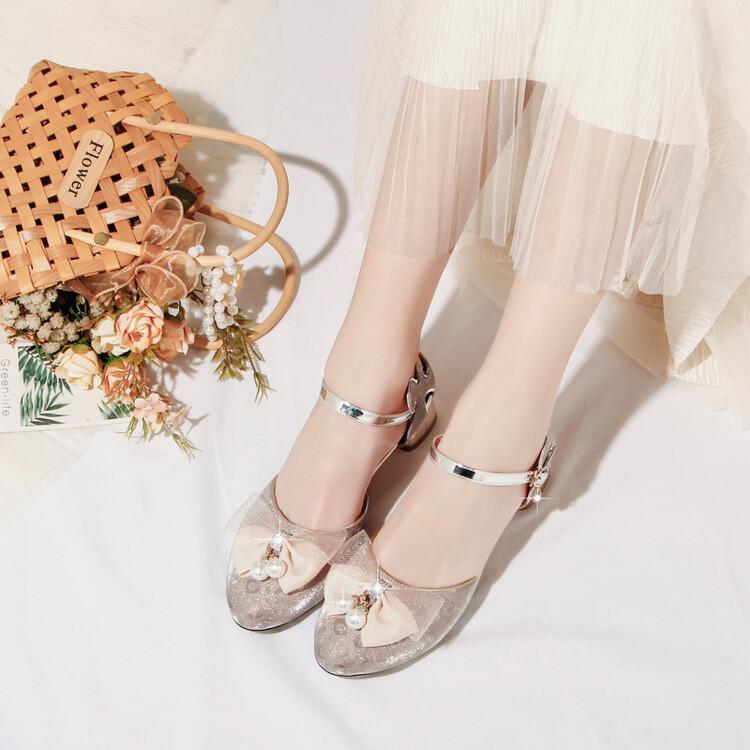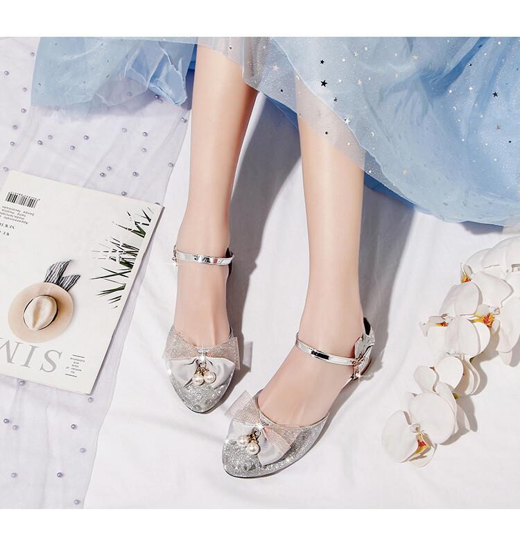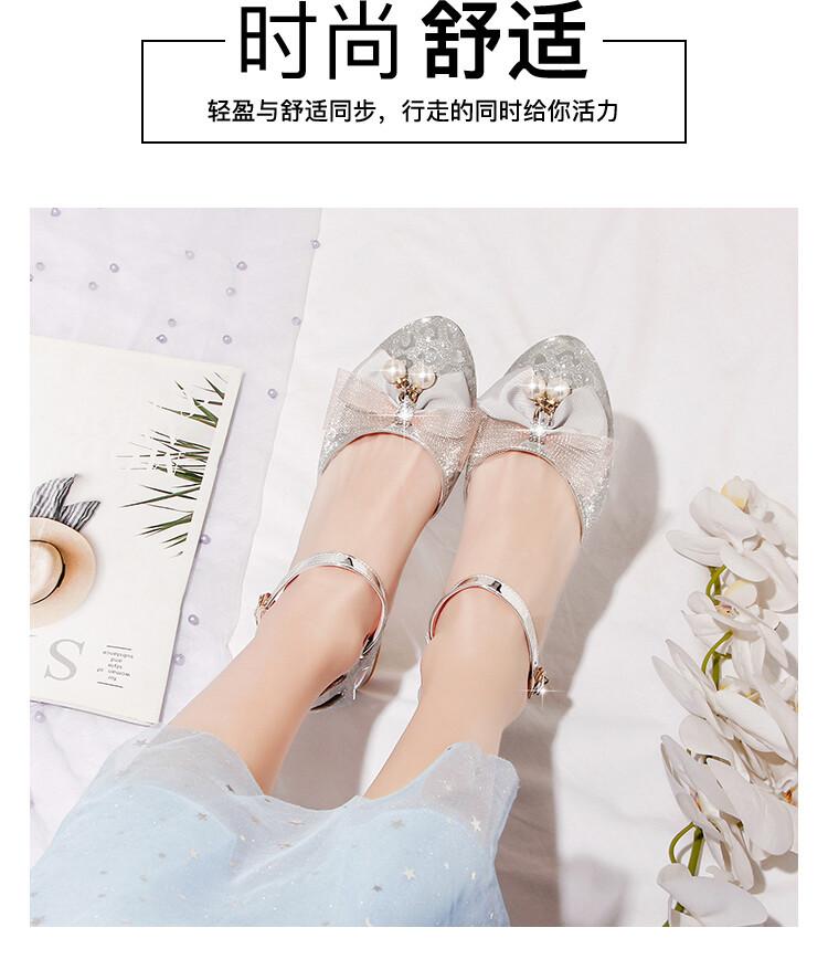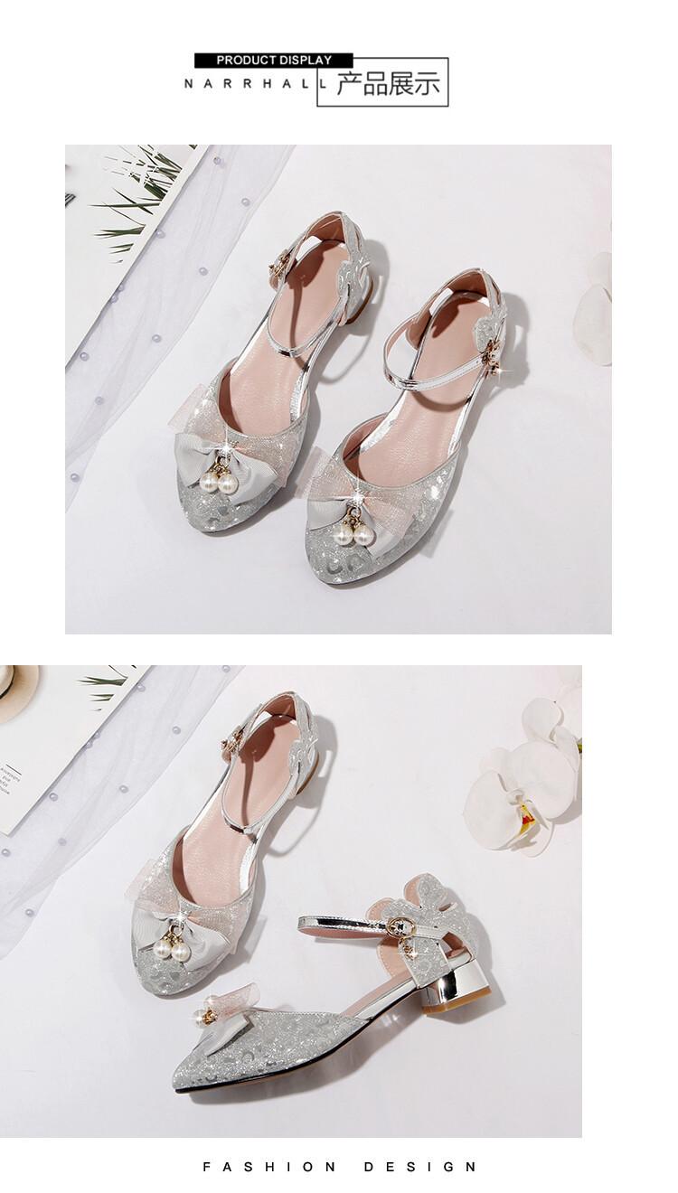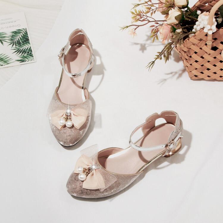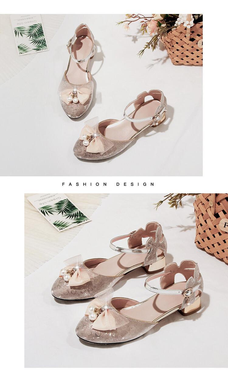 Sandalias nuevas para niñas, sandalias grandes para niños, zapatos de princesa con tacón alto y lazo, suela de goma de verano para estudiantes.