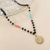 Collar Vintage Colgante Redondo Tótem Sol Cuentas de Cristal Negro Cadena de Acero Inoxidable Lujo Ligero Alta Gama Chapado en Oro