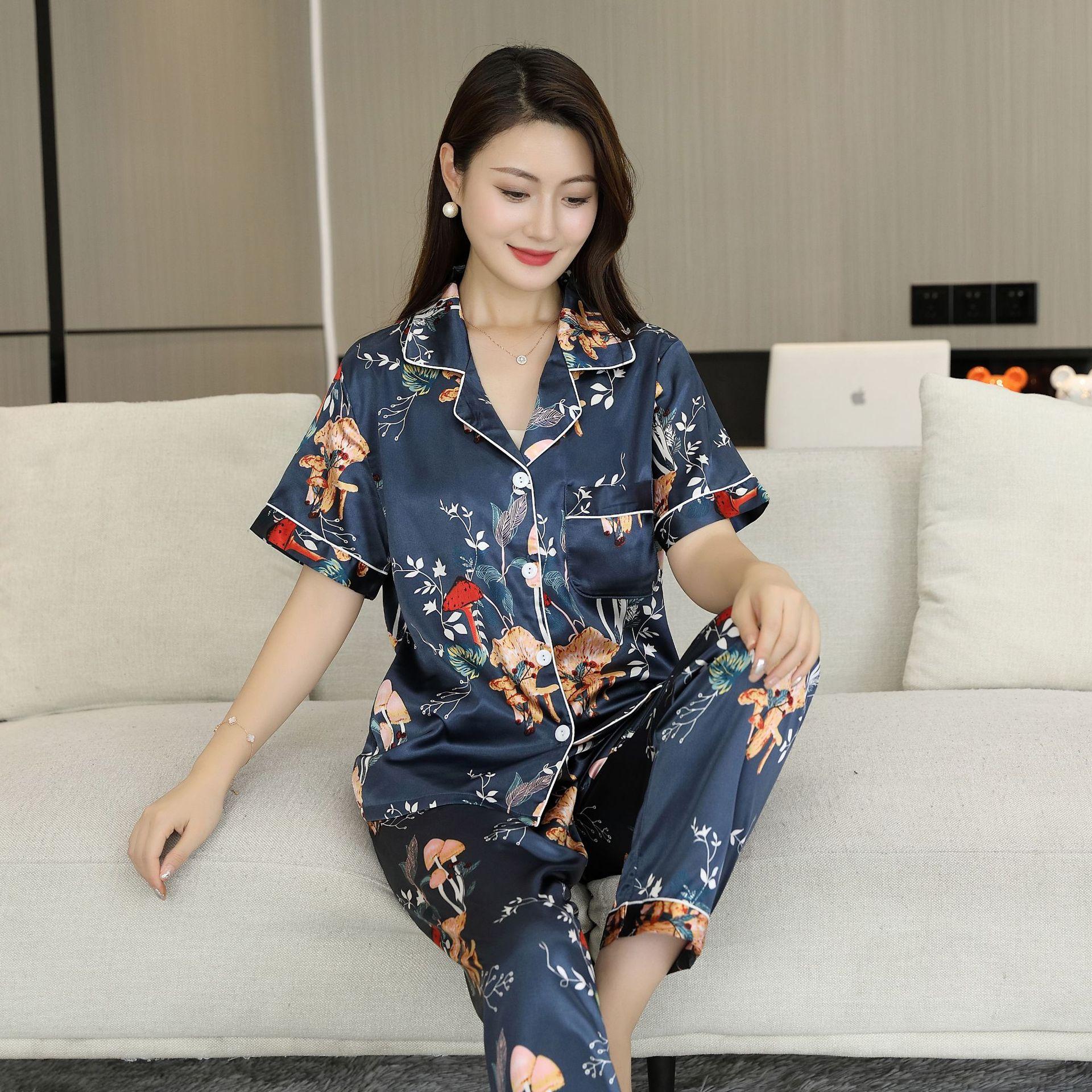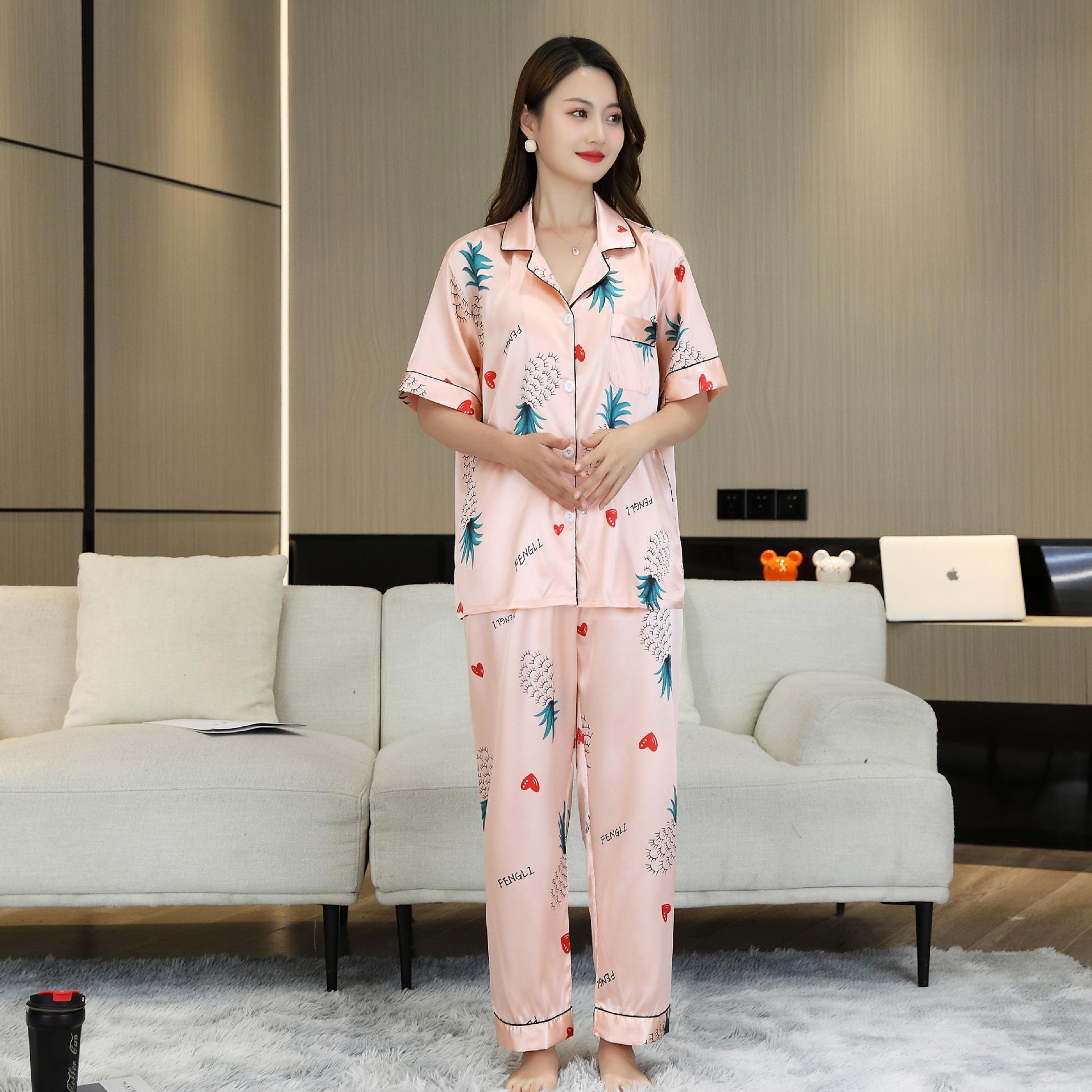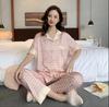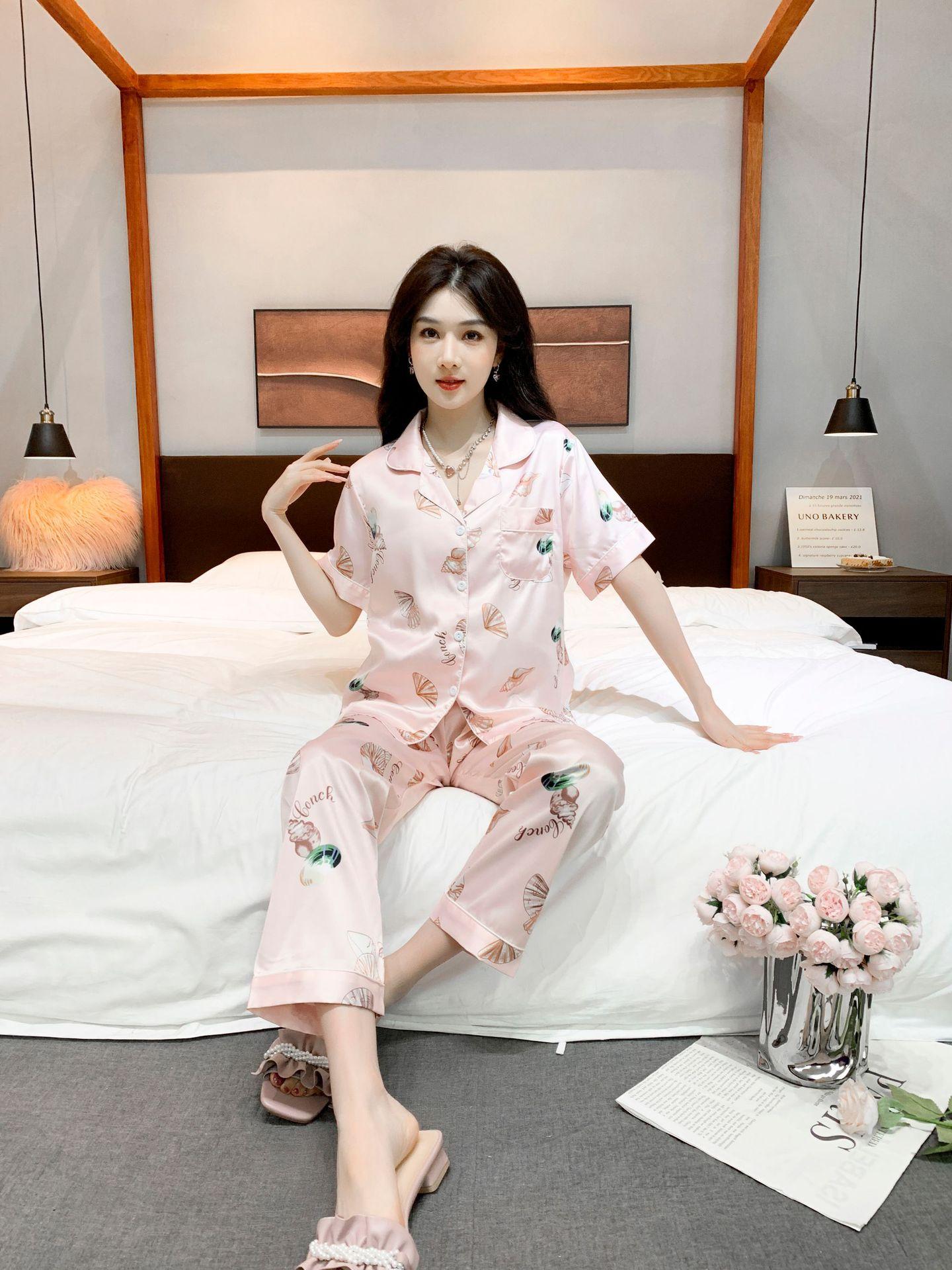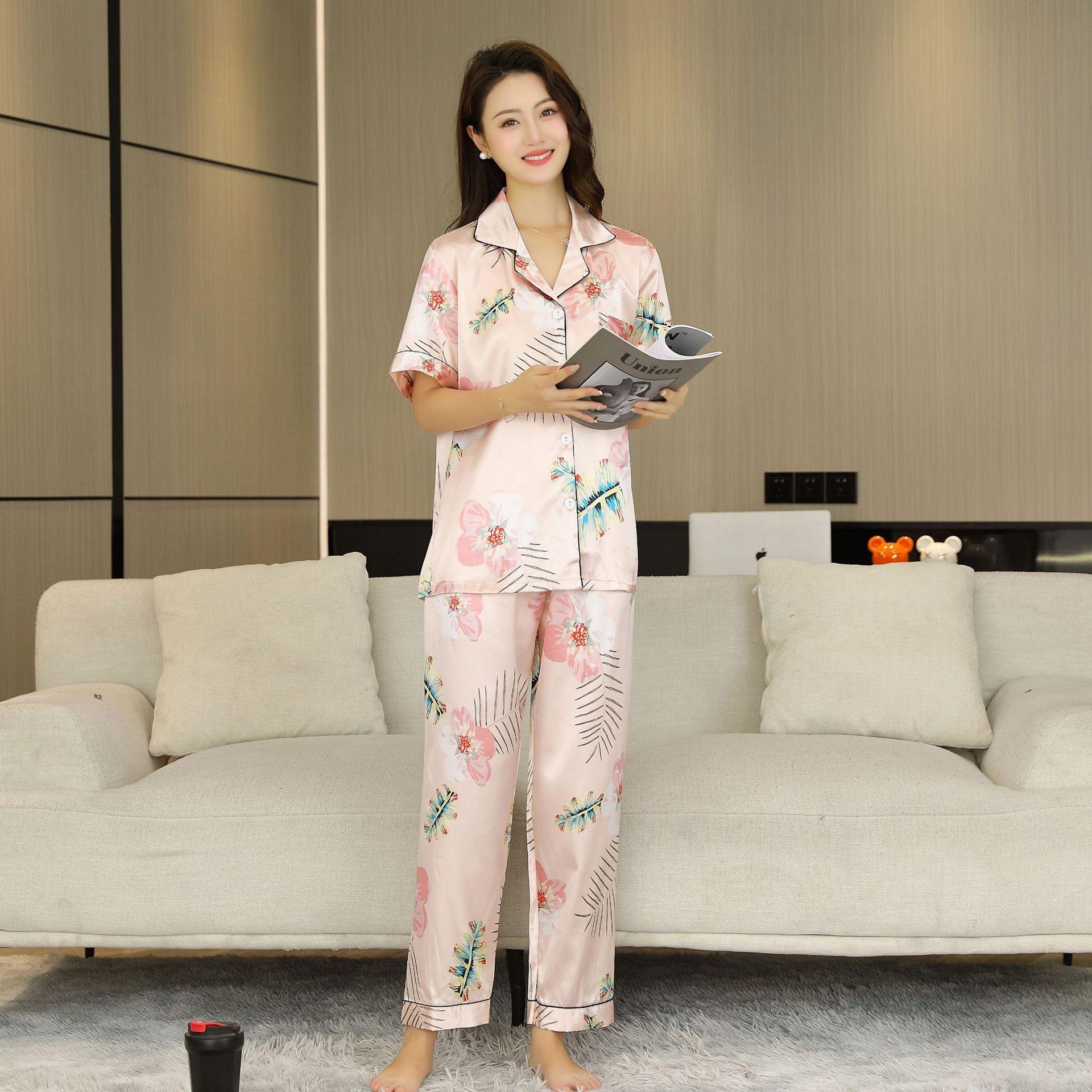 Pijama de Seda de Hielo para Mujer Verano Ropa para el Hogar de Alta Gama Lujo Ligero Manga Corta Pantalón Conjunto de Dos Piezas Pijama de Seda Imitación Estilo Delgado Se Puede Usar Afuera