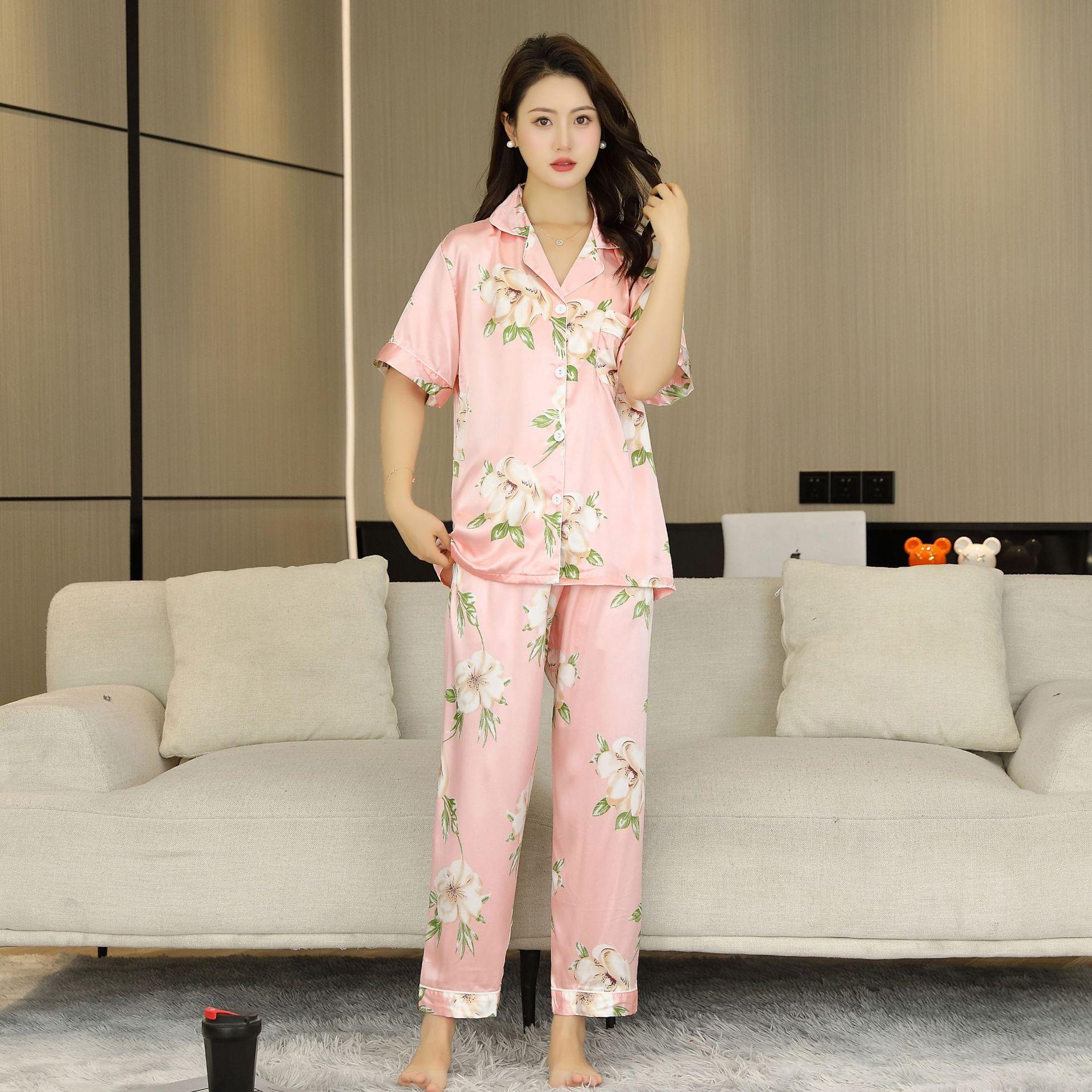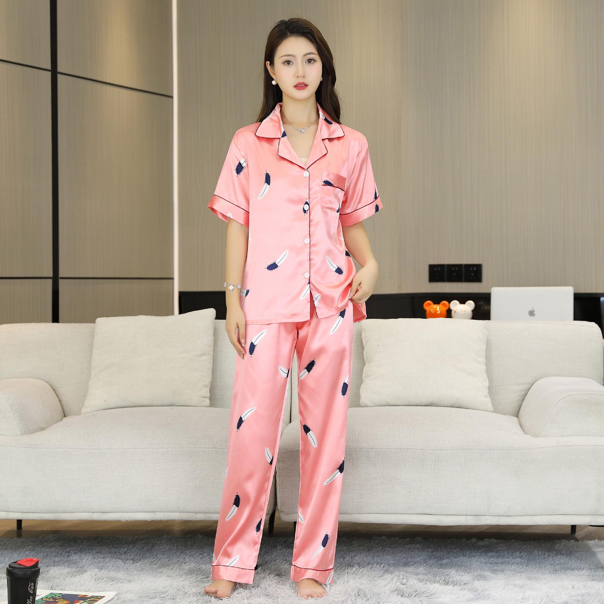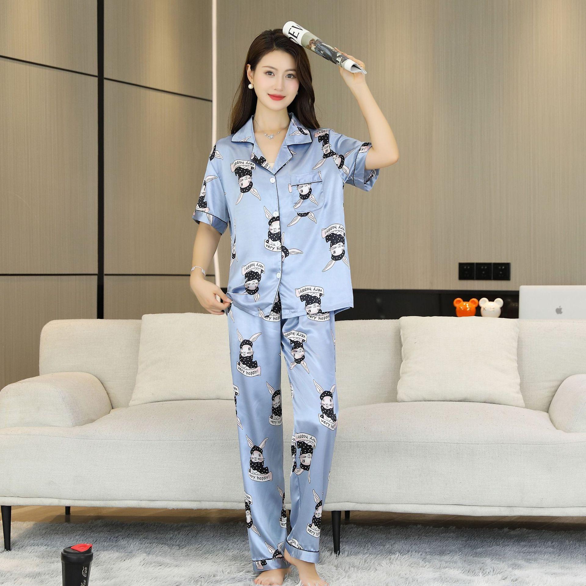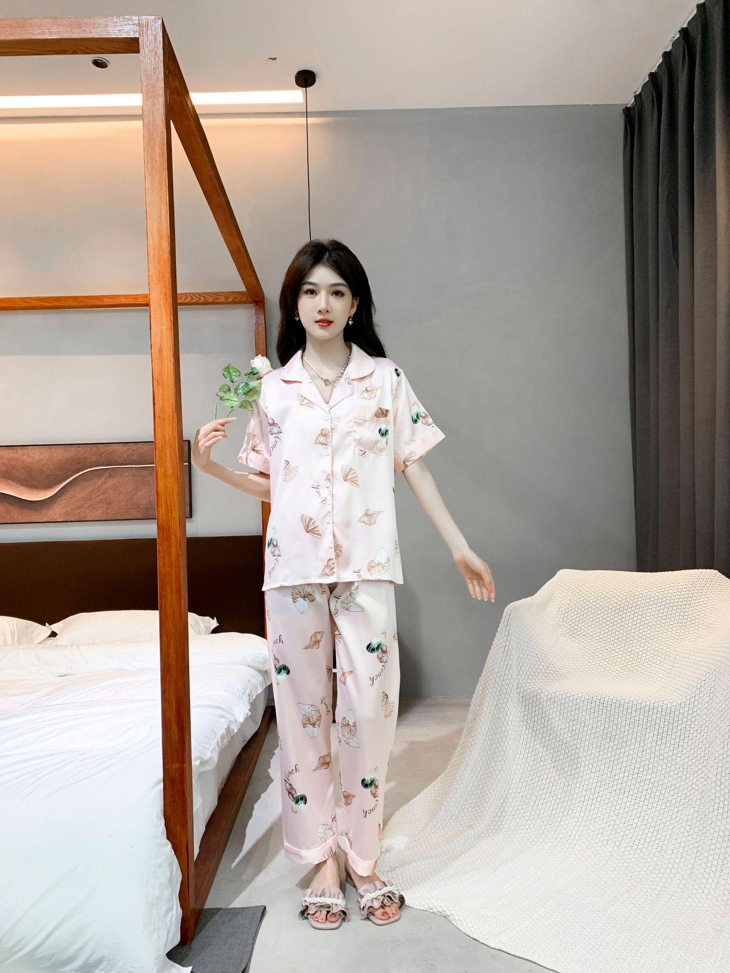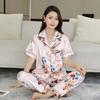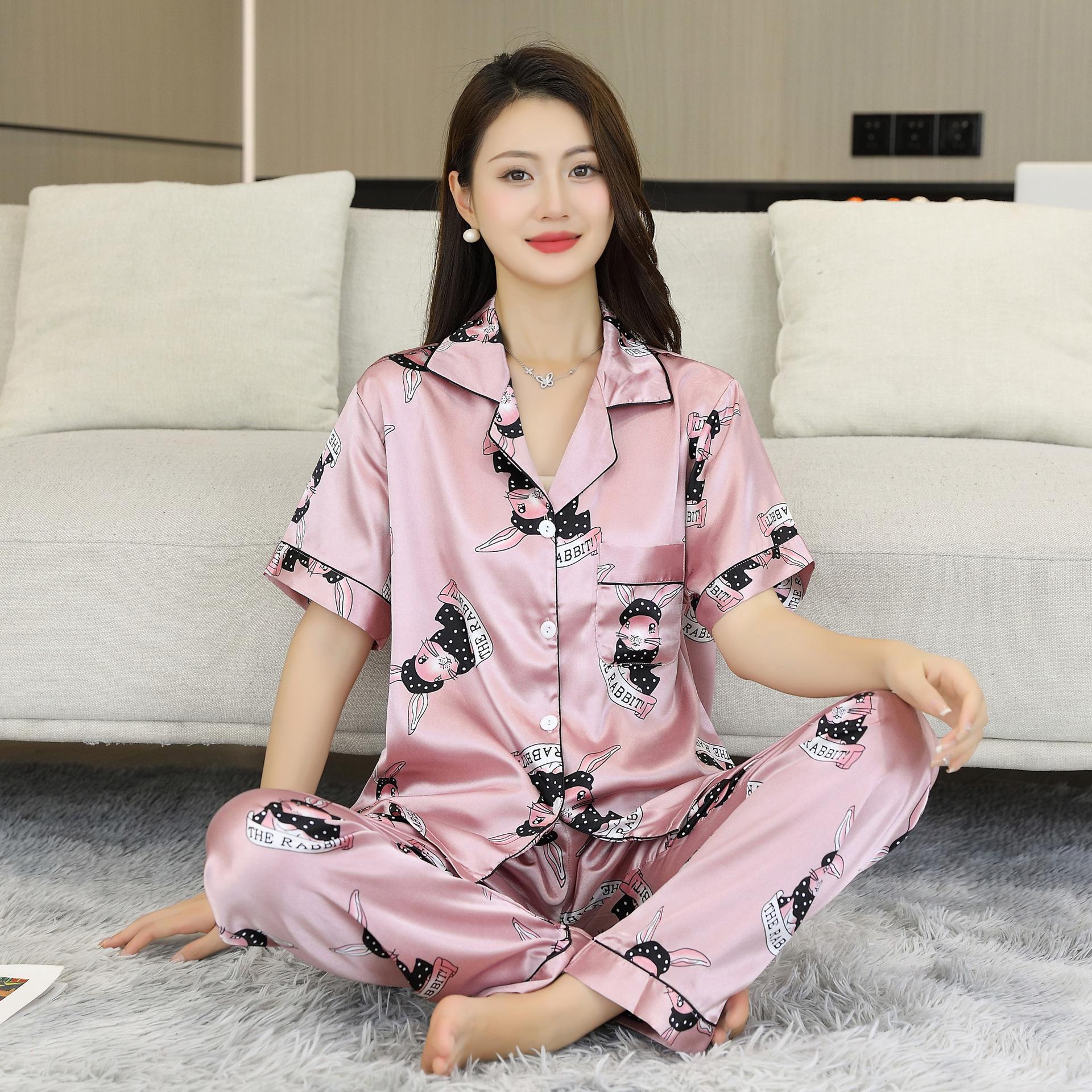 Pijama de Seda de Hielo para Mujer Verano Ropa para el Hogar de Alta Gama Lujo Ligero Manga Corta Pantalón Conjunto de Dos Piezas Pijama de Seda Imitación Estilo Delgado Se Puede Usar Afuera